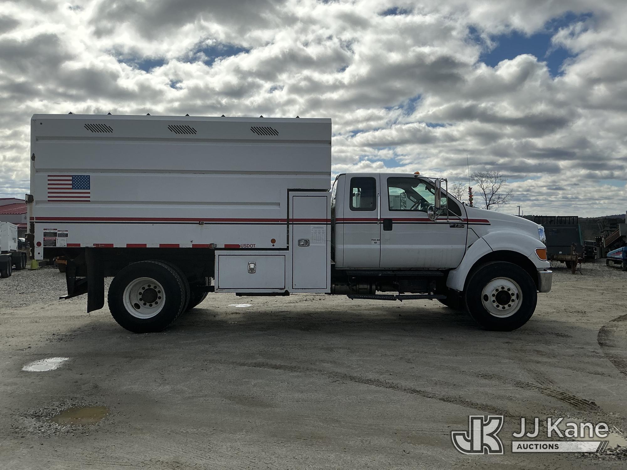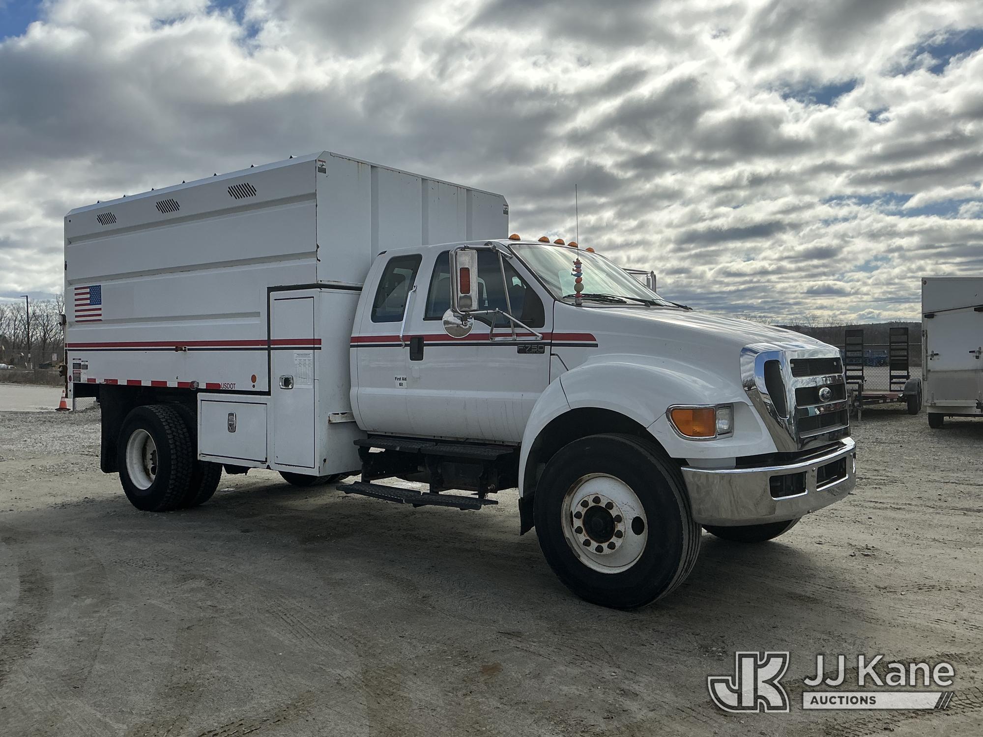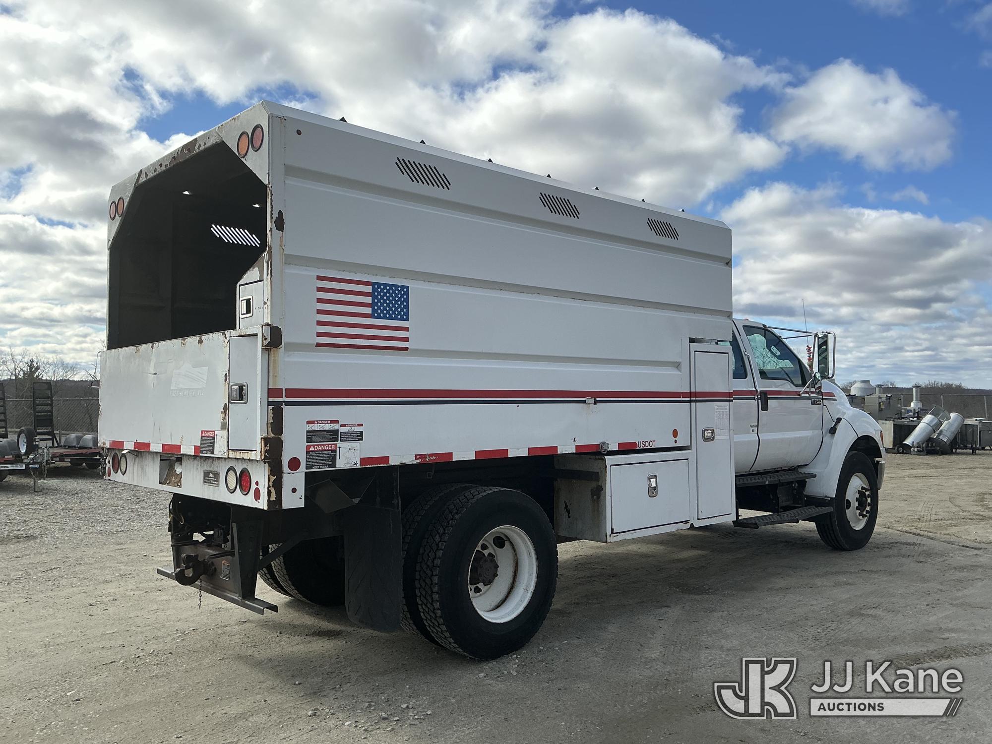 2015 Ford F-750 Extended-Cab Chipper Dump Truck, Cummins 6.7L 4X2, diesel, Auto, A/C, with 12 ft. body, (53,104 miles) (Runs & Moves) (PTO Engages, Dump Does Not Operate, Dump Condition Unknown, Battery/Charging System Issues) This is a Titled Item*