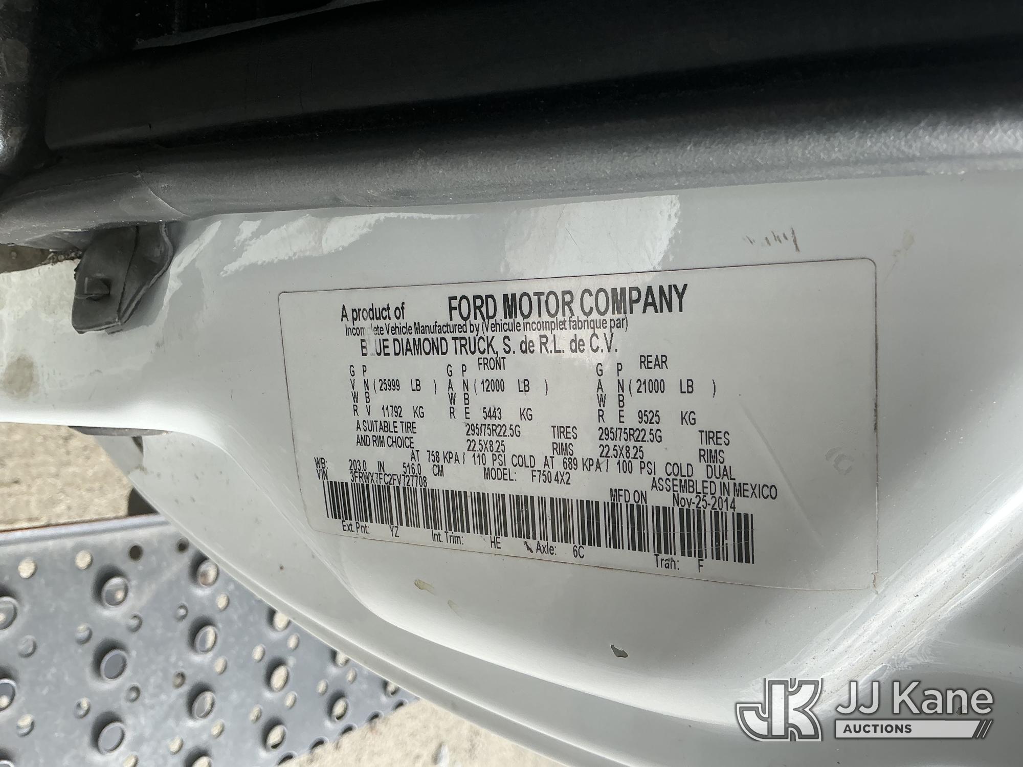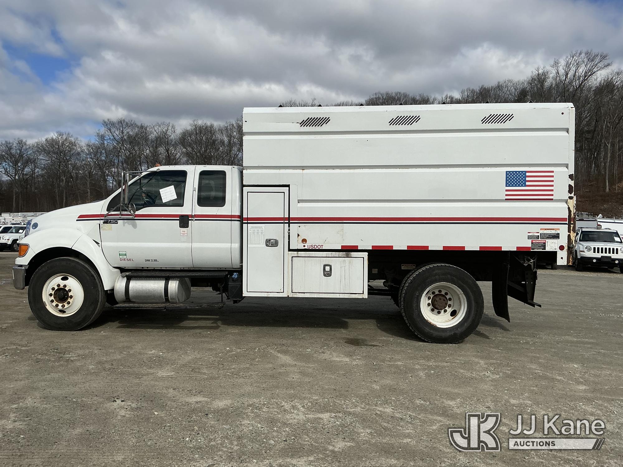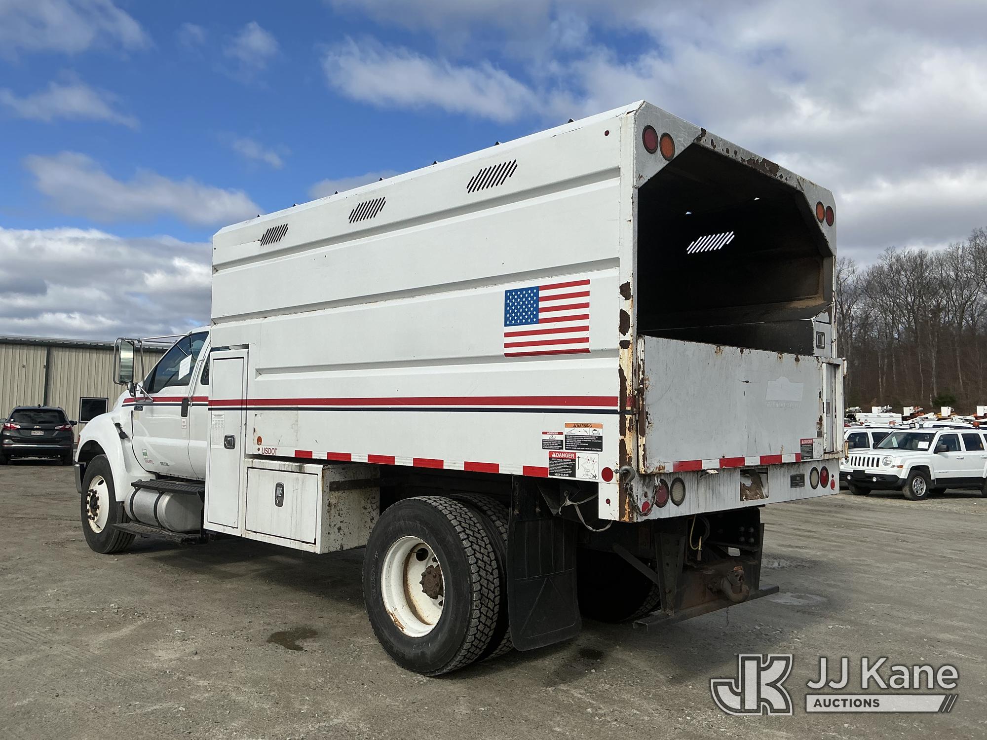 2015 Ford F-750 Extended-Cab Chipper Dump Truck, Cummins 6.7L 4X2, diesel, Auto, A/C, with 12 ft. body, (53,104 miles) (Runs & Moves) (PTO Engages, Dump Does Not Operate, Dump Condition Unknown, Battery/Charging System Issues) This is a Titled Item*