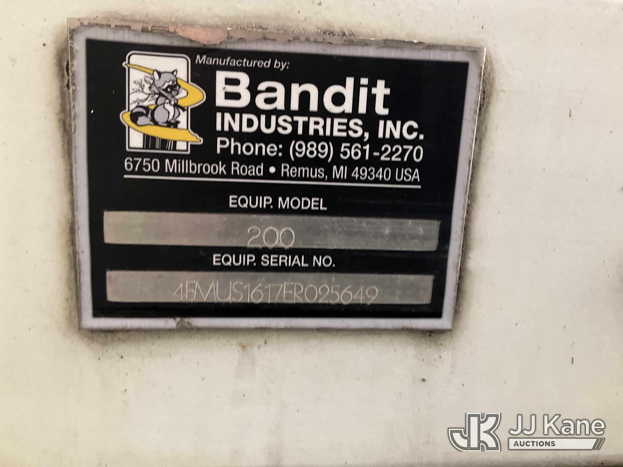 2014 Bandit Industries 200XP Portable Chipper (12in Disc), s/n 4FMUS1617ER025649, 4-cyl, diesel, trailer mtd (No Title) (Runs, Operational Condition Unknown, Flat Tire, No Plug) (Removal is by Appointment Only, Buyer MUST make a appointment prior to picking up, Buyer/Transporter Must have PAID IN FULL RELEASE. No onsite assistance available, Please Come prepared.) (Reads 1,202 hours)*