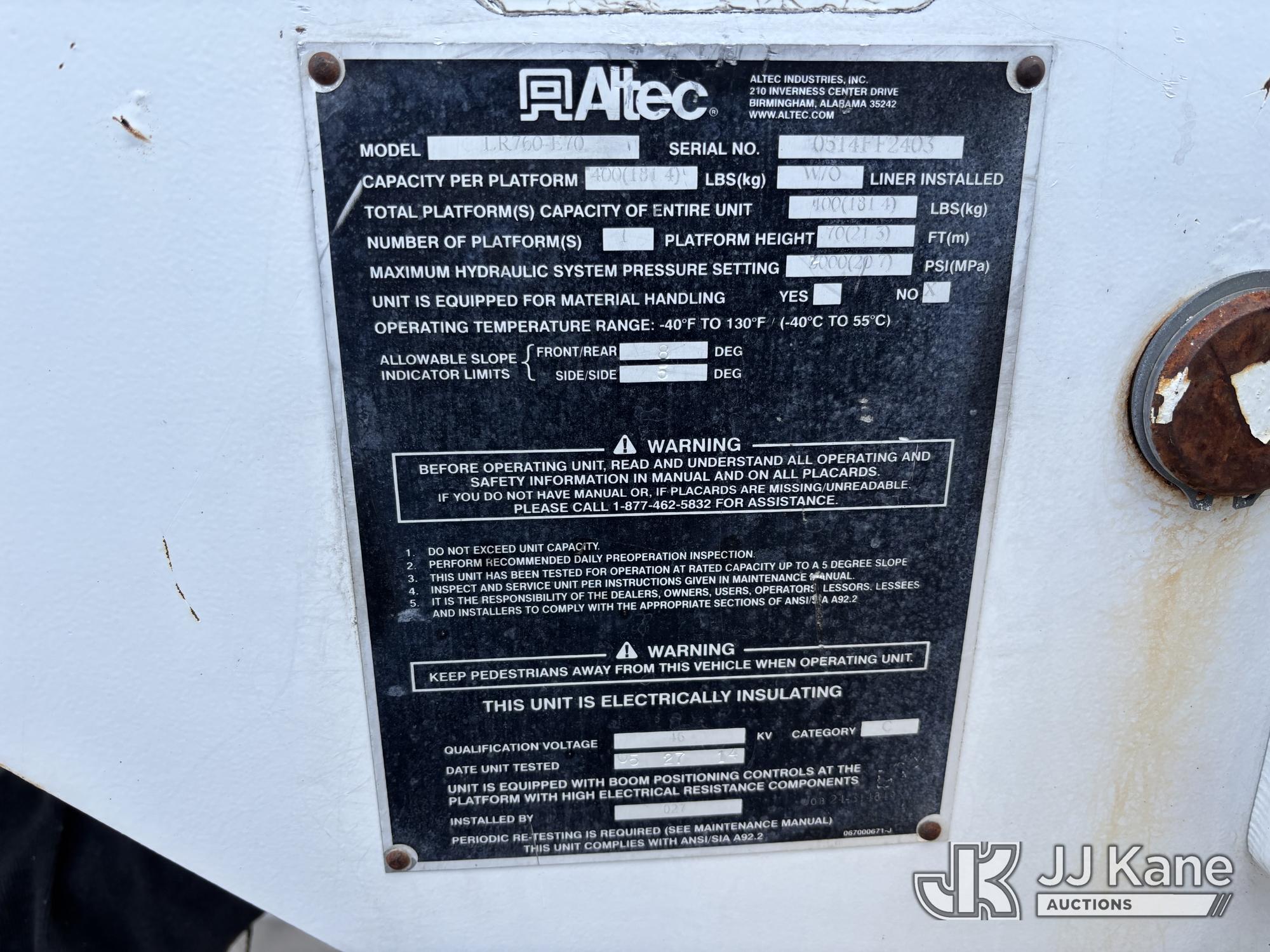 Altec LR760-E70, 75 ft, Over-Center Elevator Bucket Truck s/n 0514FF2403, with Single-Man Bucket & 2 Outriggers, mounted behind cab on 2015 Freightliner M2 106 Chipper Dump Truck, Cummins 6.7L Diesel, 4X2, 6-spd, with 11ft Body, (107,596 miles) (Runs, Moves & Upper Operates) This is a Titled Item*