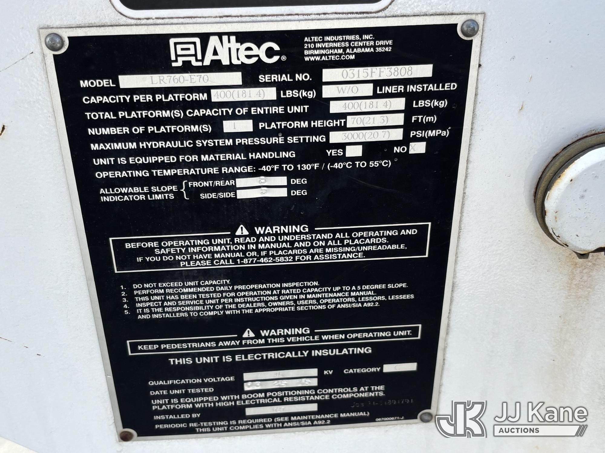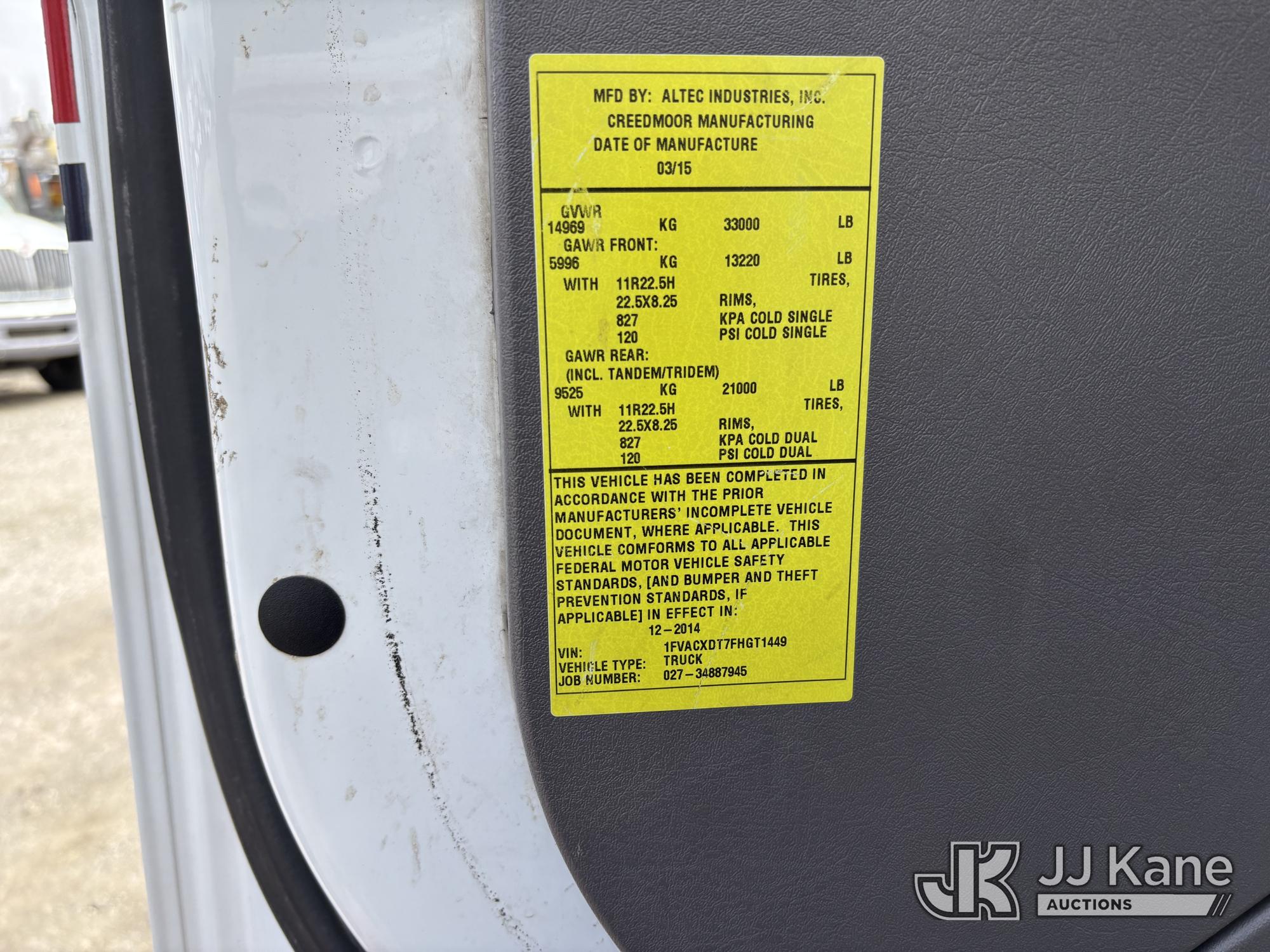 Altec LR760-E70, 75 ft, Over-Center Elevator Bucket Truck s/n 0315FF3808, with Single-Man Bucket & 2 Outriggers, mounted behind cab on 2015 Freightliner M2 106 Chipper Dump Truck, Cummins 6.7L Diesel, Auto, A/C, (59,379 miles) (Runs, Moves & Upper Operates) This is a Titled Item*