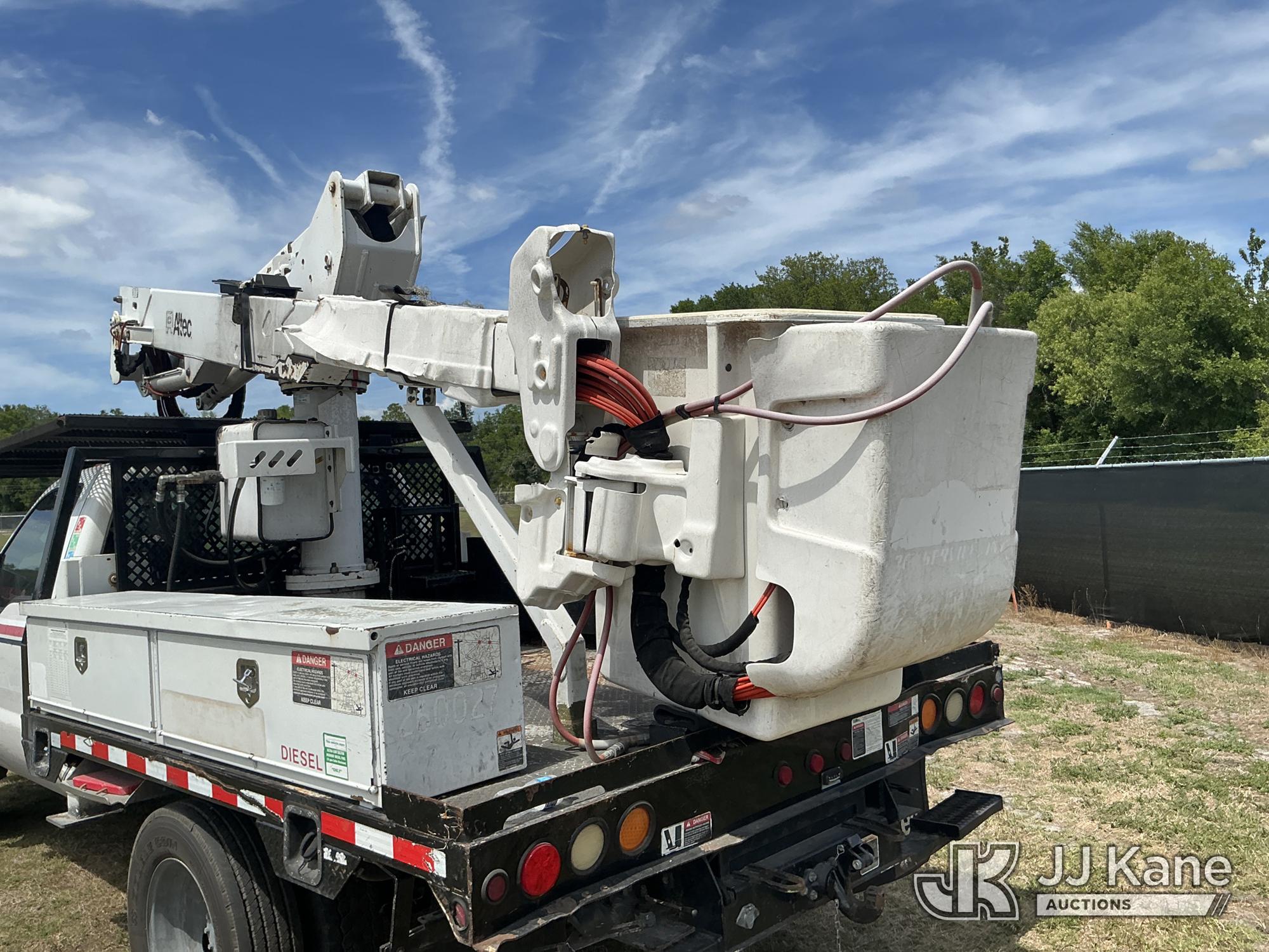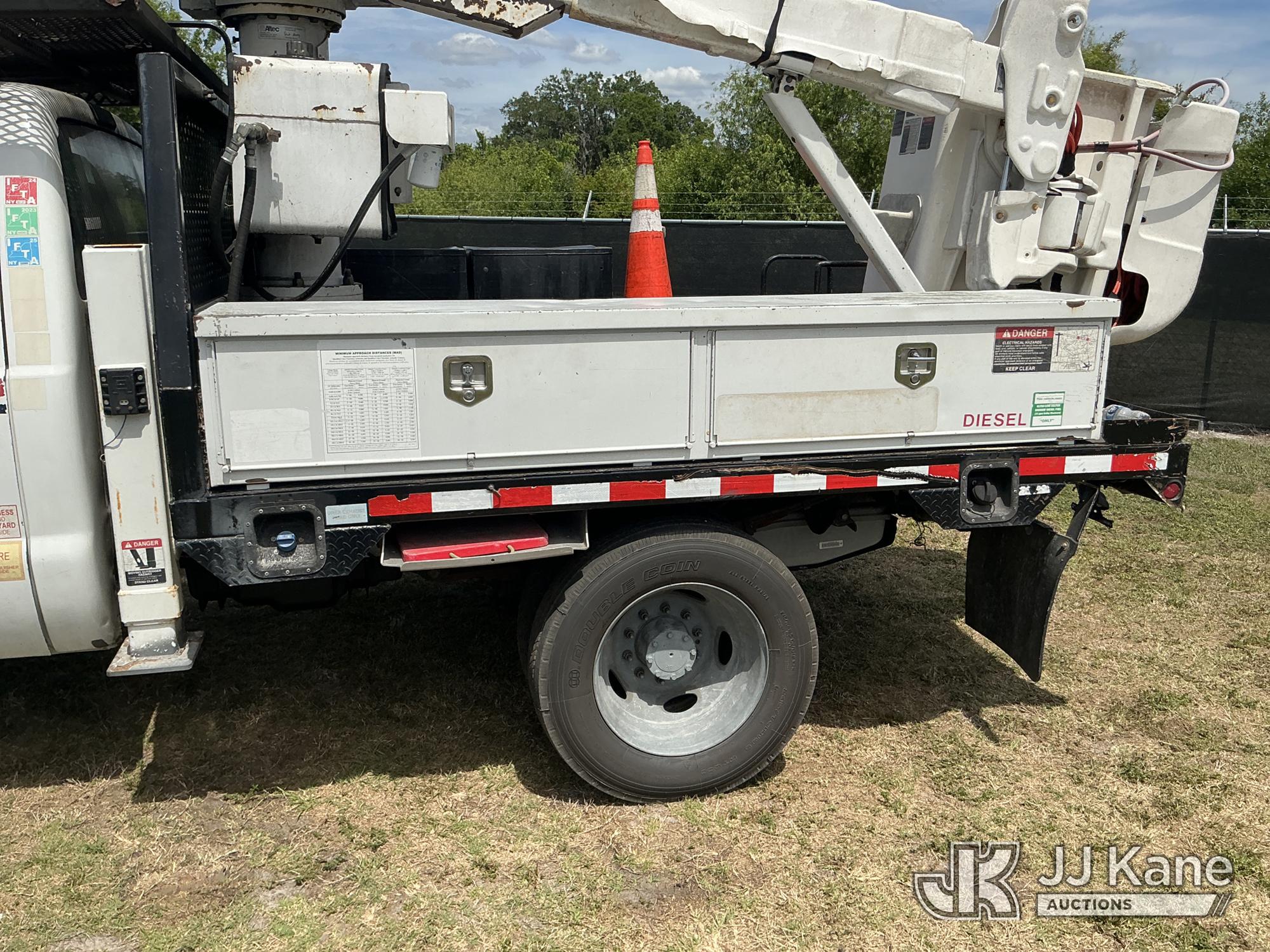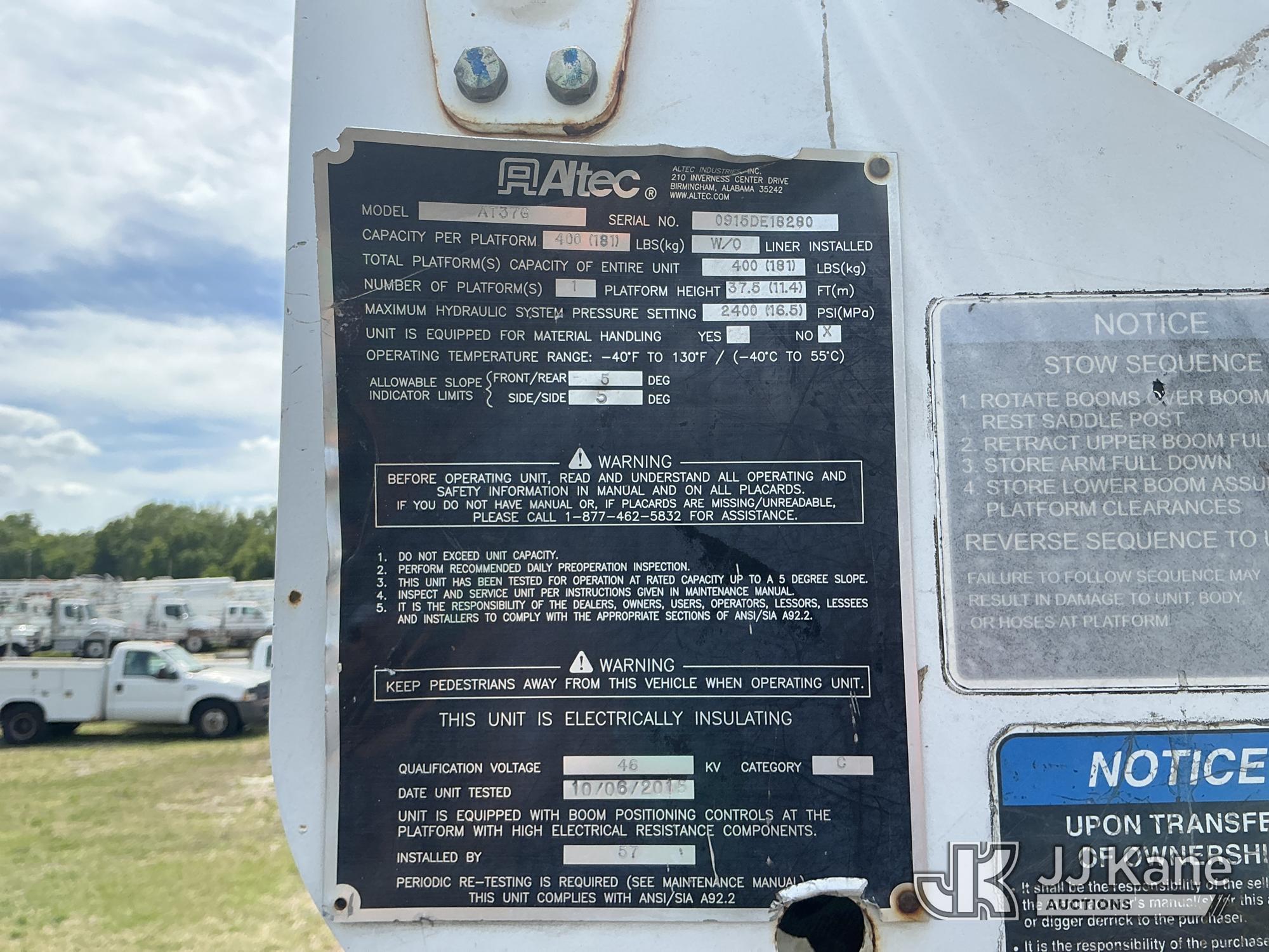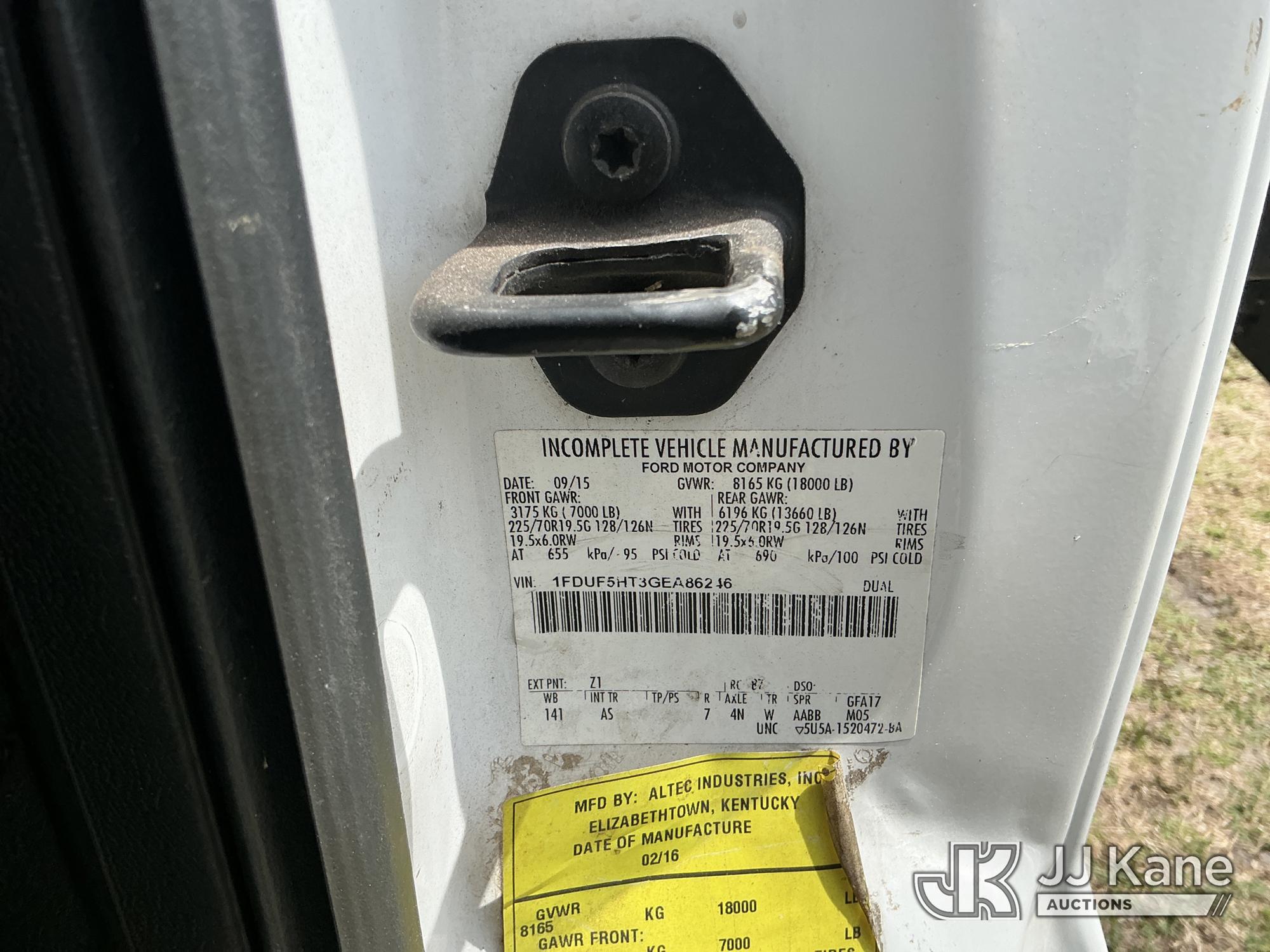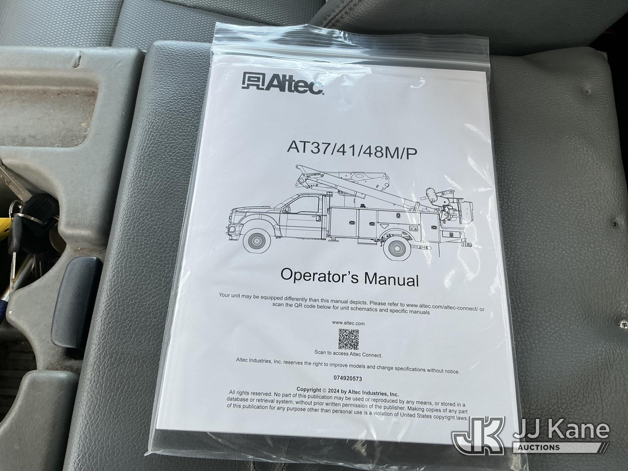 Altec AT37G, 42 ft, Articulating & Telescopic Bucket Truck s/n 0915DE18280, with single-man bucket, mounted behind cab on 2016 Ford F550 4x4 Flatbed/Service Truck, 6.7L diesel, Auto, A/C, (89,456 miles) (Runs, Moves, Operating Condition Unknown)(Jump To Start, Check Engine Light On) (The manufacturer has notified JJ Kane that this equipment is subject to an open recall. CSN 855 Fuel Line and Brake Line Inspection The equipment should not be operated until this is addressed. Buyer is responsible for reviewing the recall notice and contacting the manufacturer to schedule the recommended corrective actions. Associated costs may be covered by the manufacturer in some cases.) This is a Titled Item*