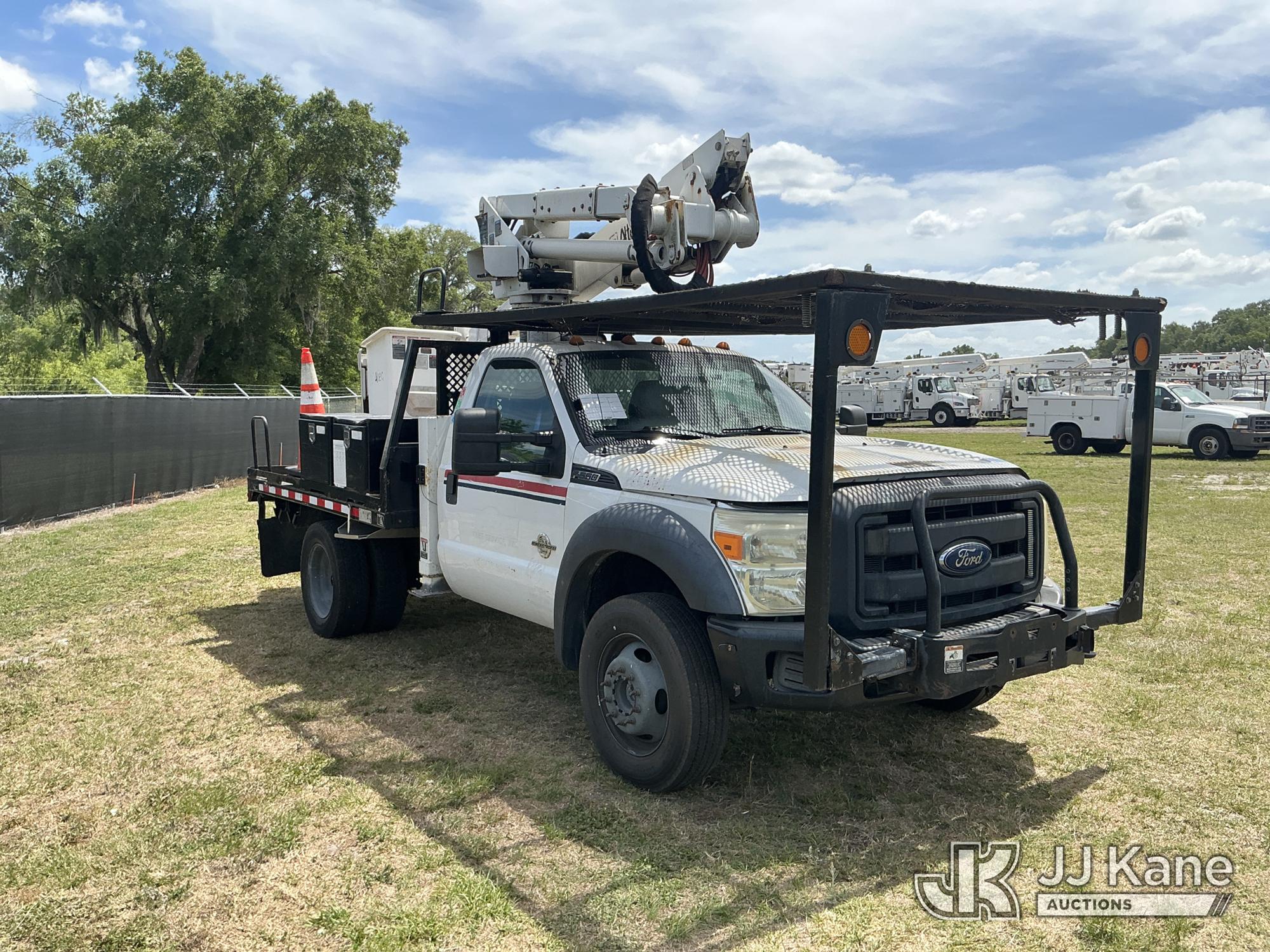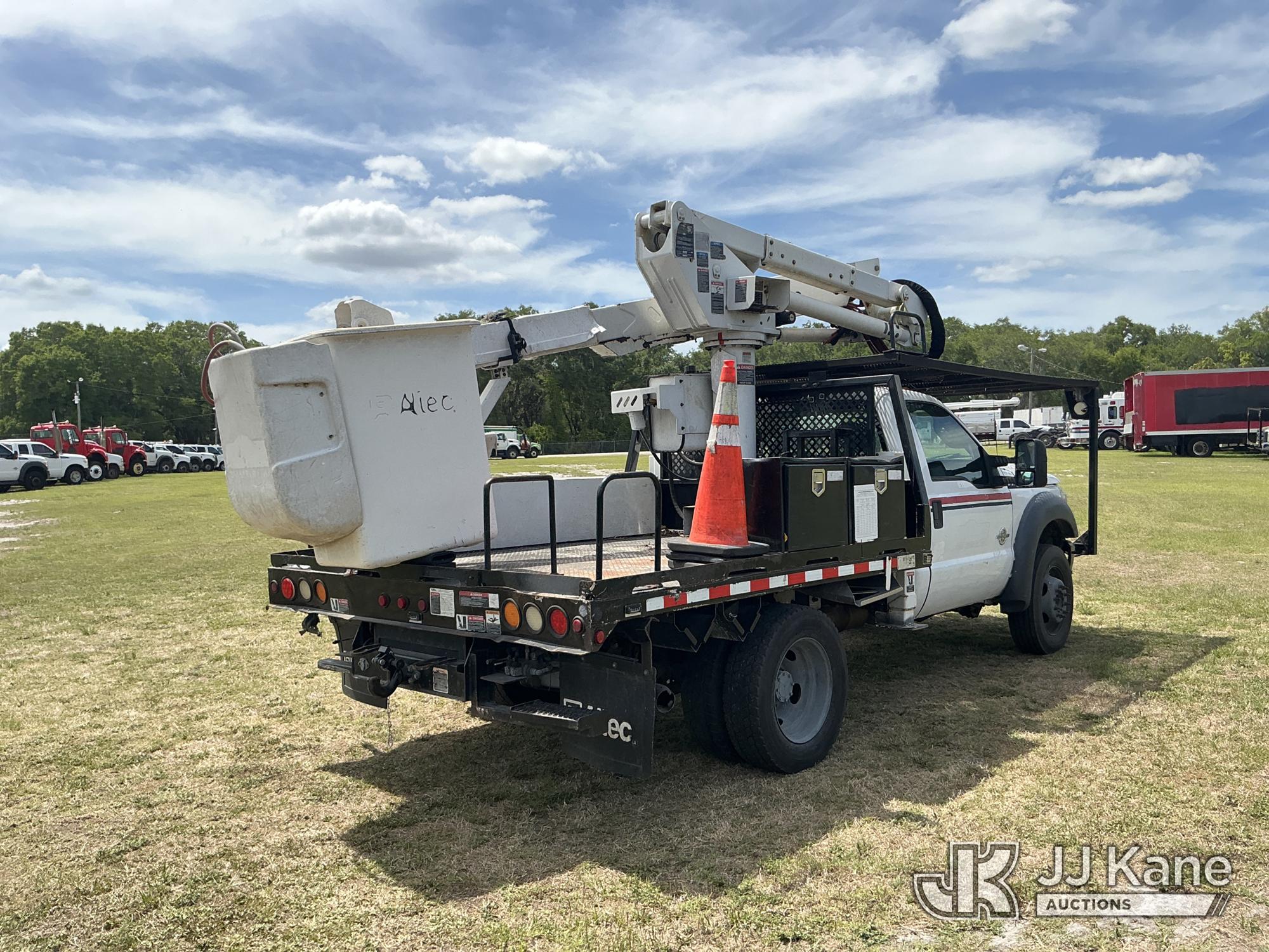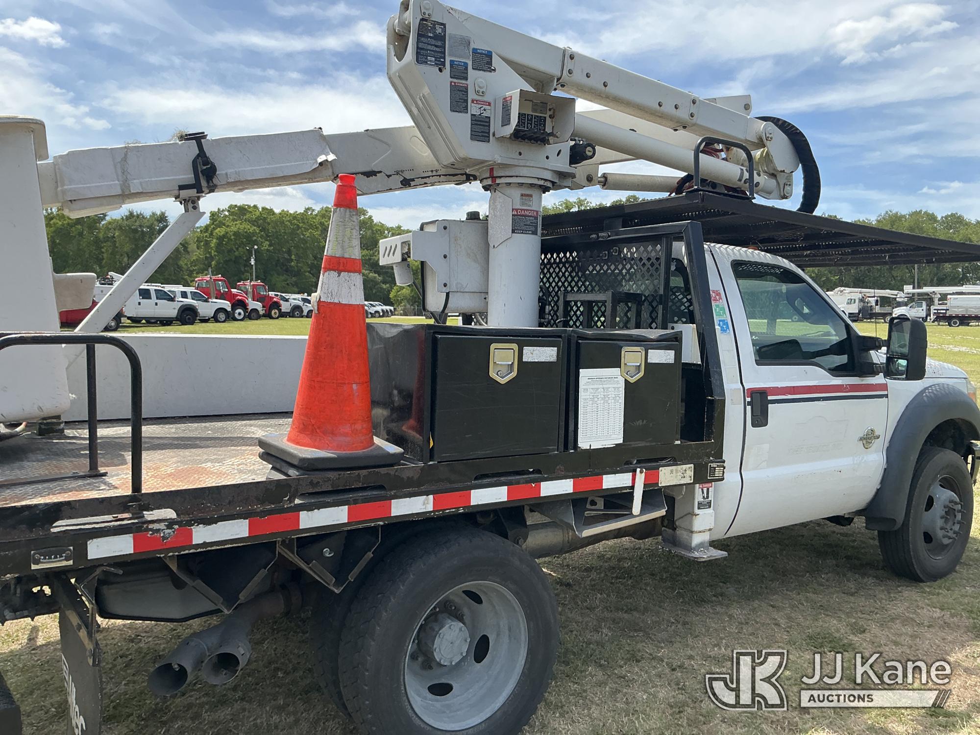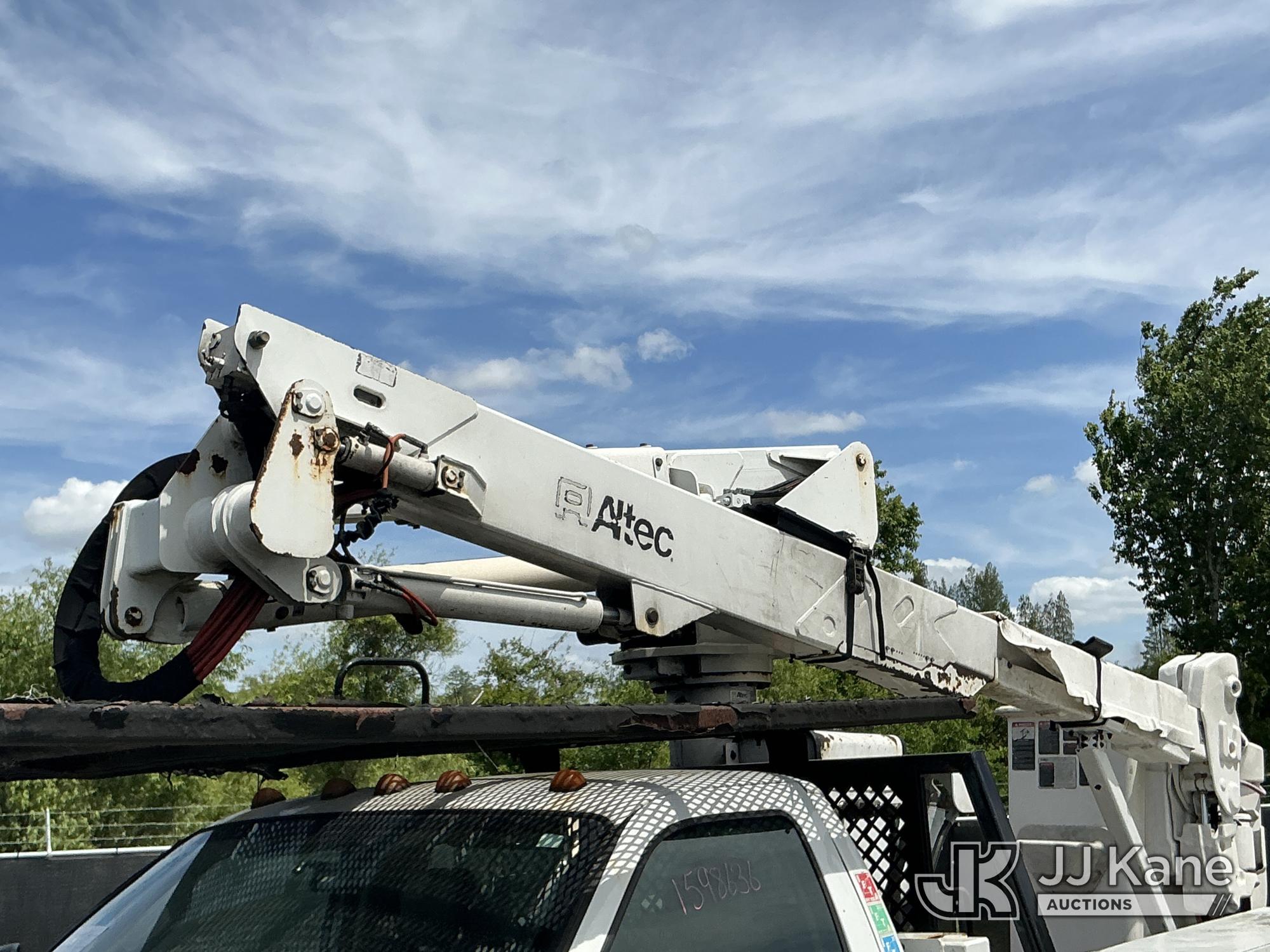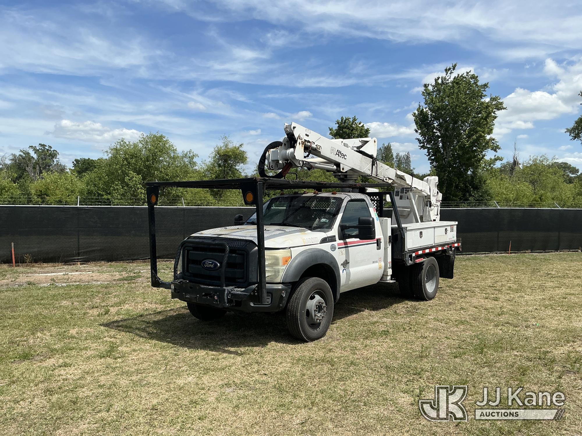 Altec AT37G, 42 ft, Articulating & Telescopic Bucket Truck s/n 0915DE18280, with single-man bucket, mounted behind cab on 2016 Ford F550 4x4 Flatbed/Service Truck, 6.7L diesel, Auto, A/C, (89,456 miles) (Runs, Moves, Operating Condition Unknown)(Jump To Start, Check Engine Light On) (The manufacturer has notified JJ Kane that this equipment is subject to an open recall. CSN 855 Fuel Line and Brake Line Inspection The equipment should not be operated until this is addressed. Buyer is responsible for reviewing the recall notice and contacting the manufacturer to schedule the recommended corrective actions. Associated costs may be covered by the manufacturer in some cases.) This is a Titled Item*