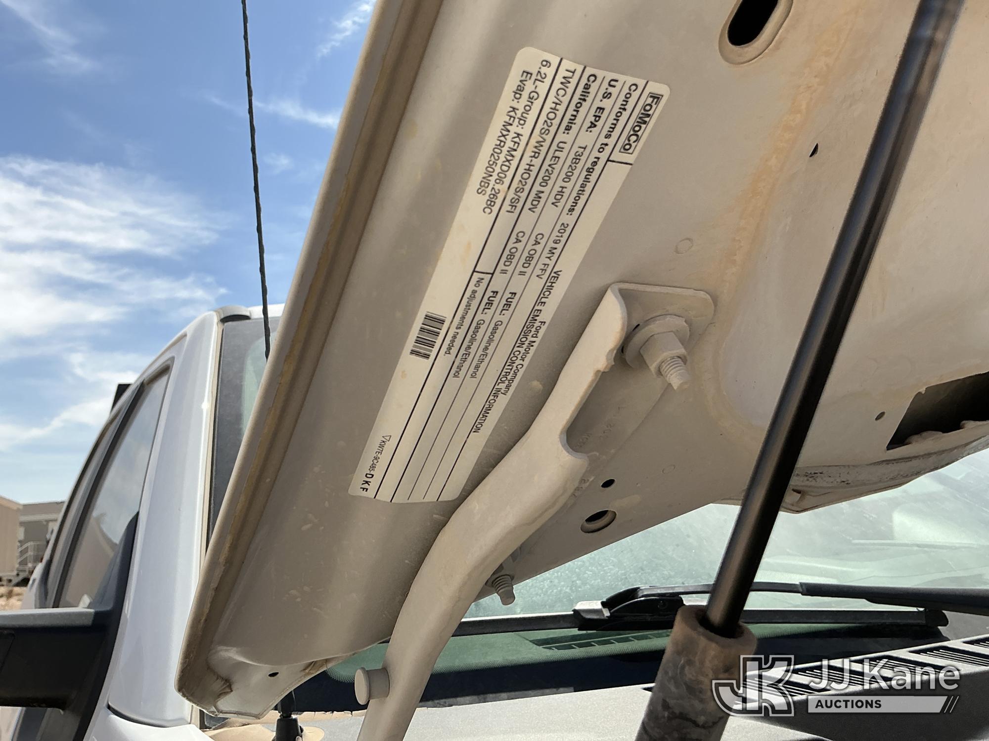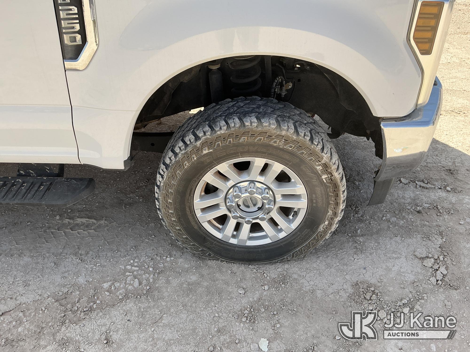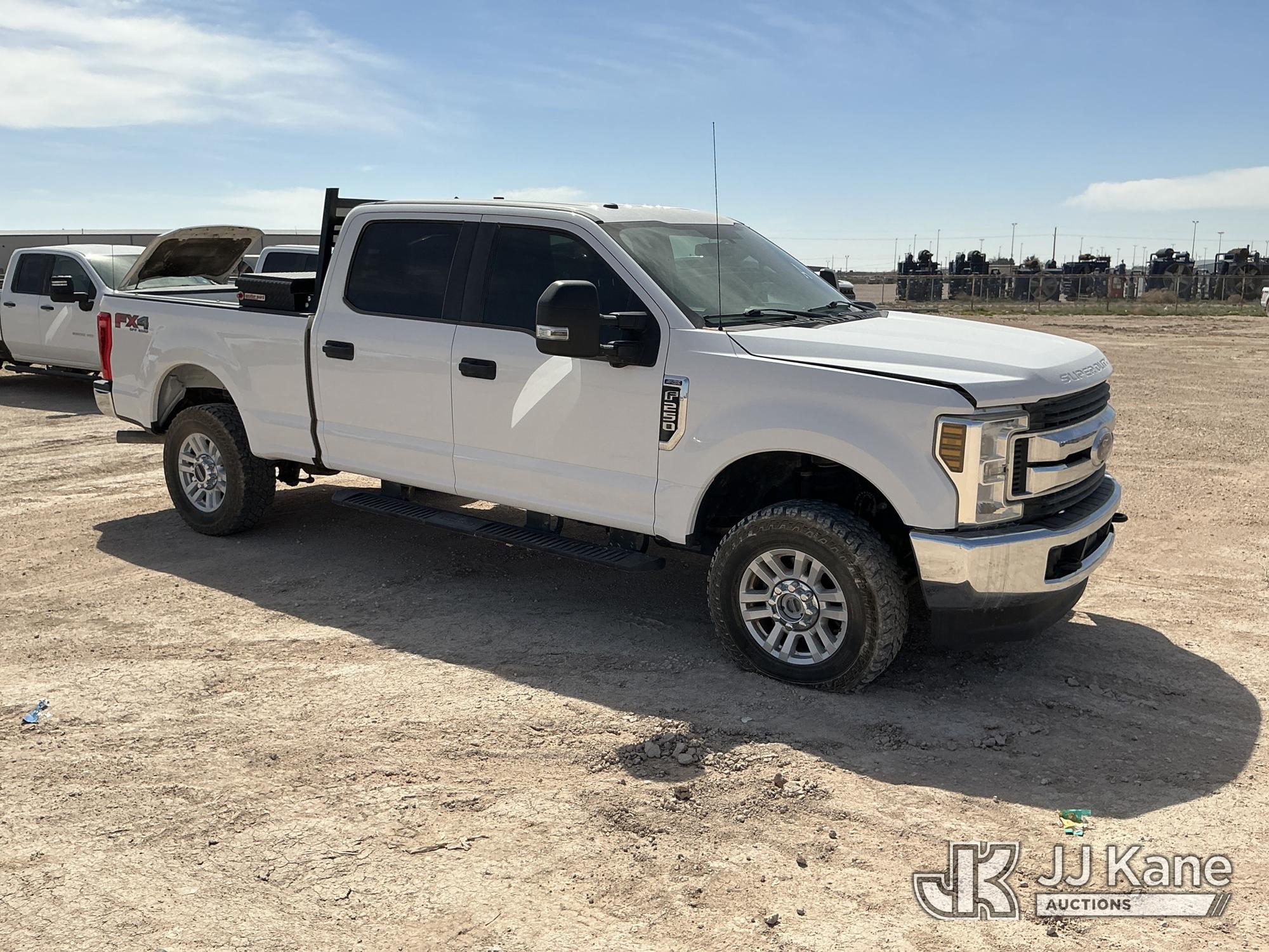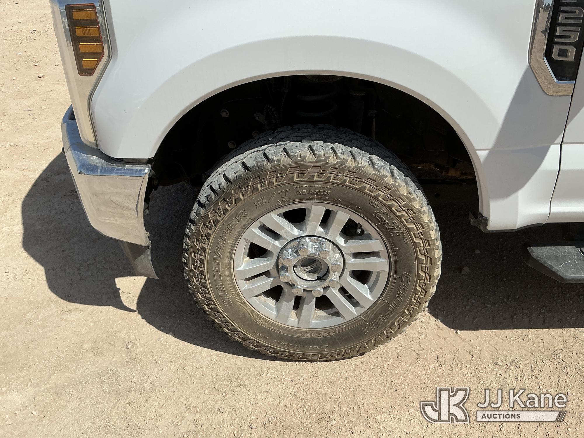 2019 Ford F250 4x4 Crew-Cab Pickup Truck, 6.2L V8 OHV 16V gas, 6-Speed Automatic, A/C, (102,295 miles) (Runs & Moves) (Check Engine Light On, Engine Noise, Windshield Cracked, Paint/Body Damage, Front Right Tire Flat) (Reads 6,065 hours) This is a Titled Item*