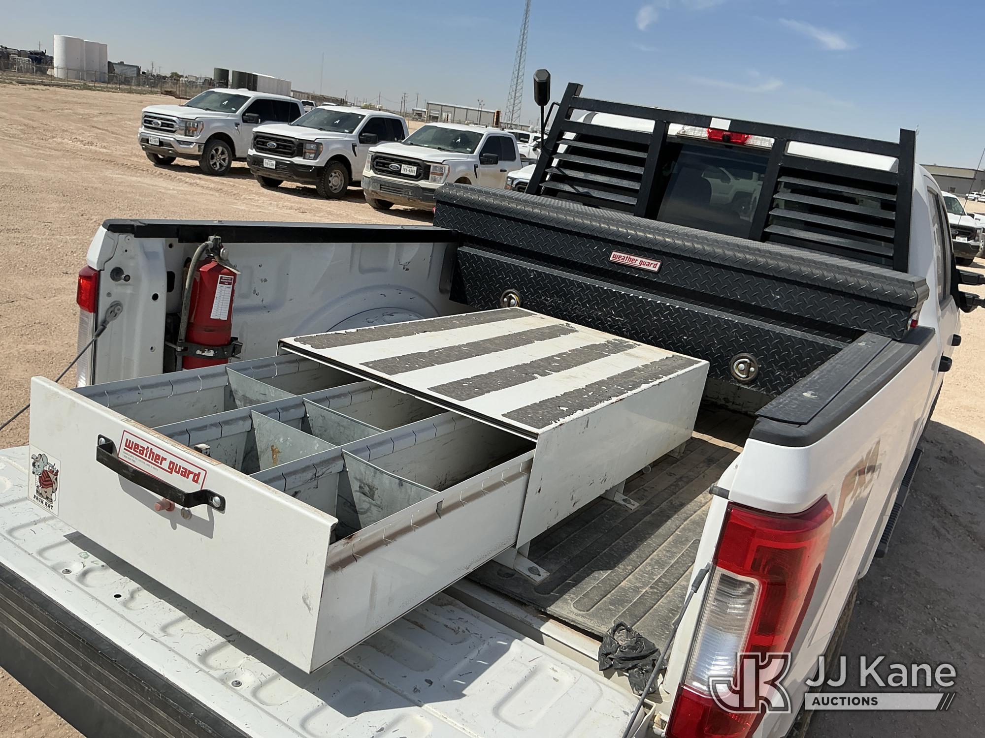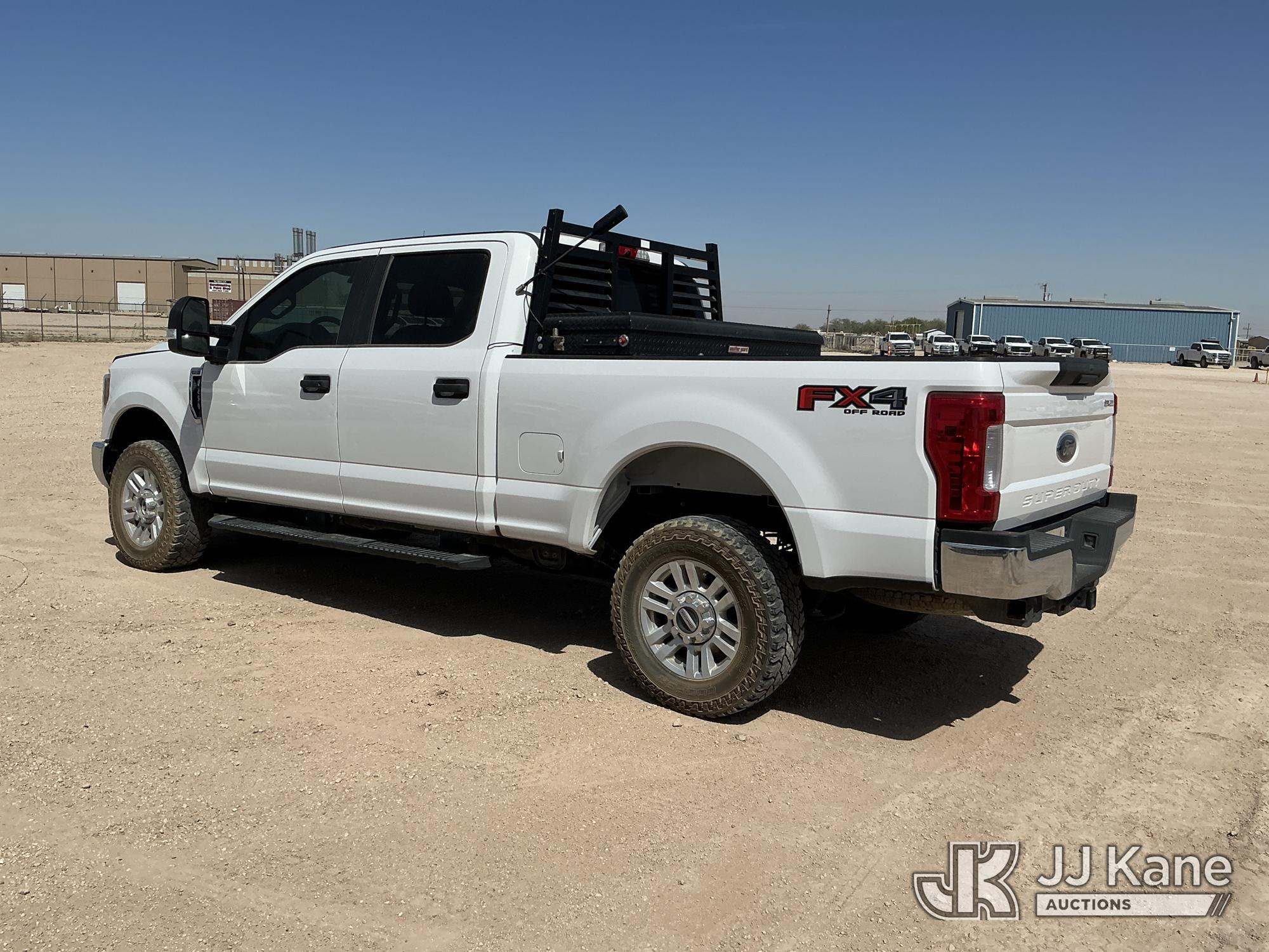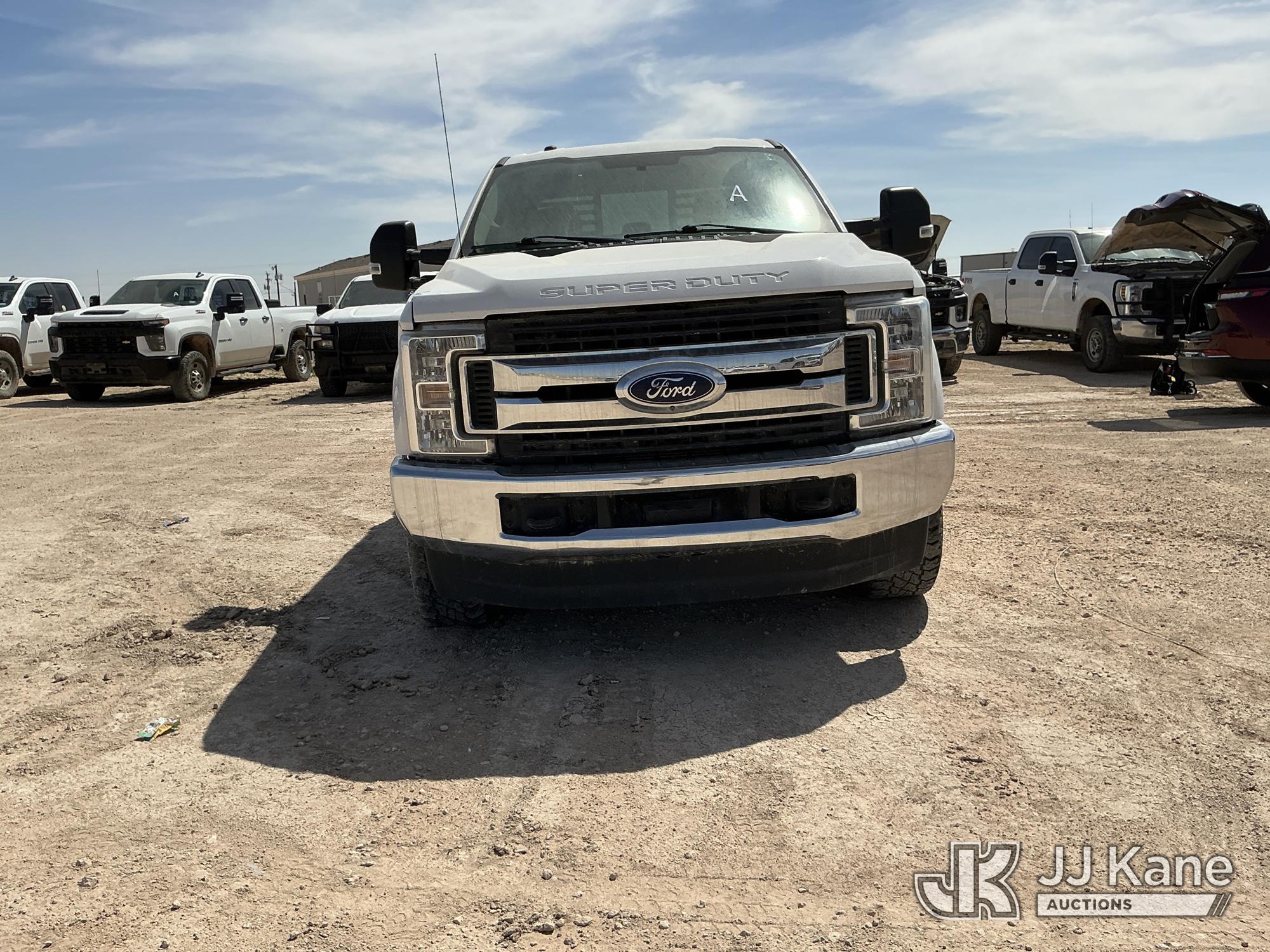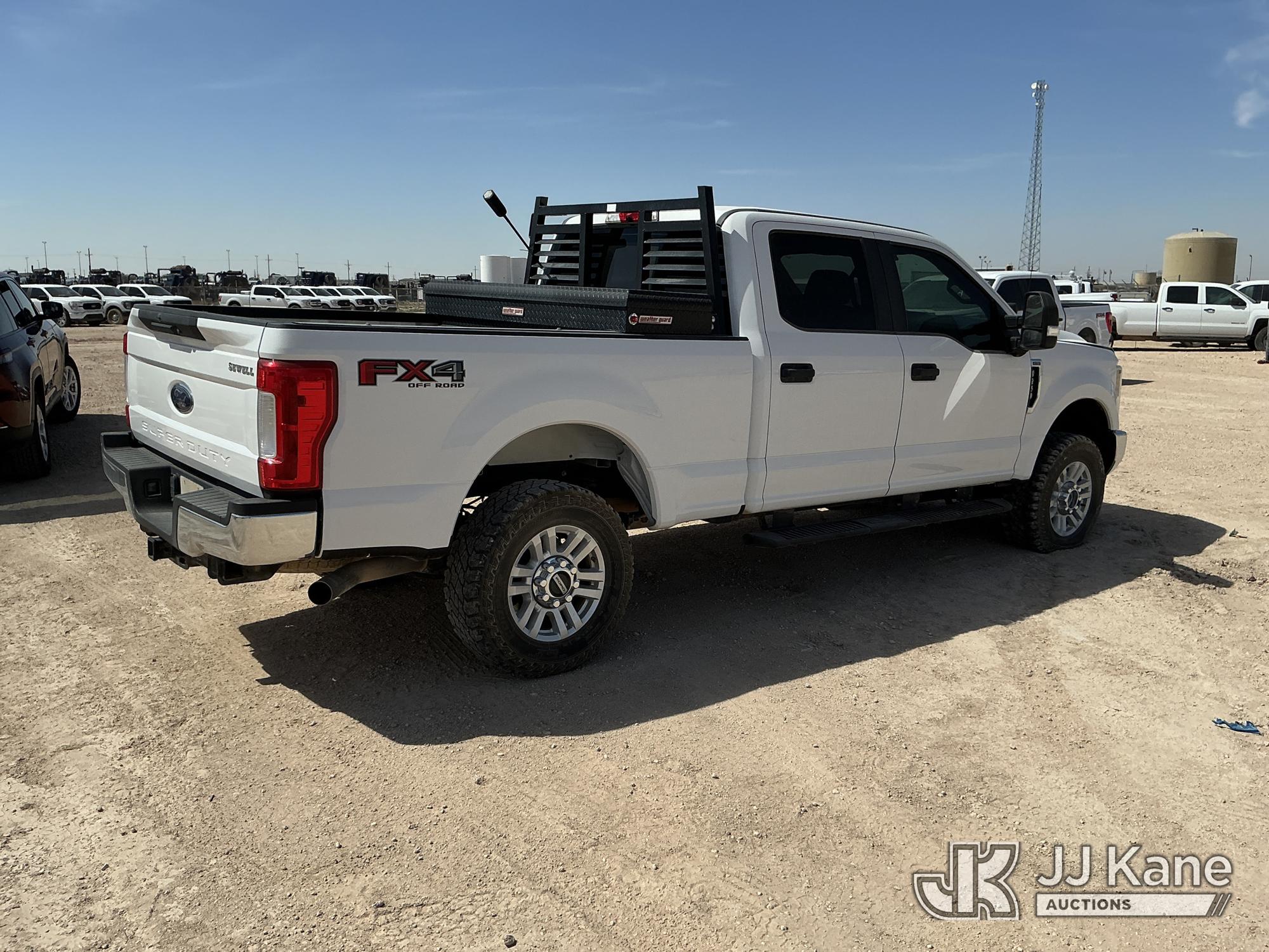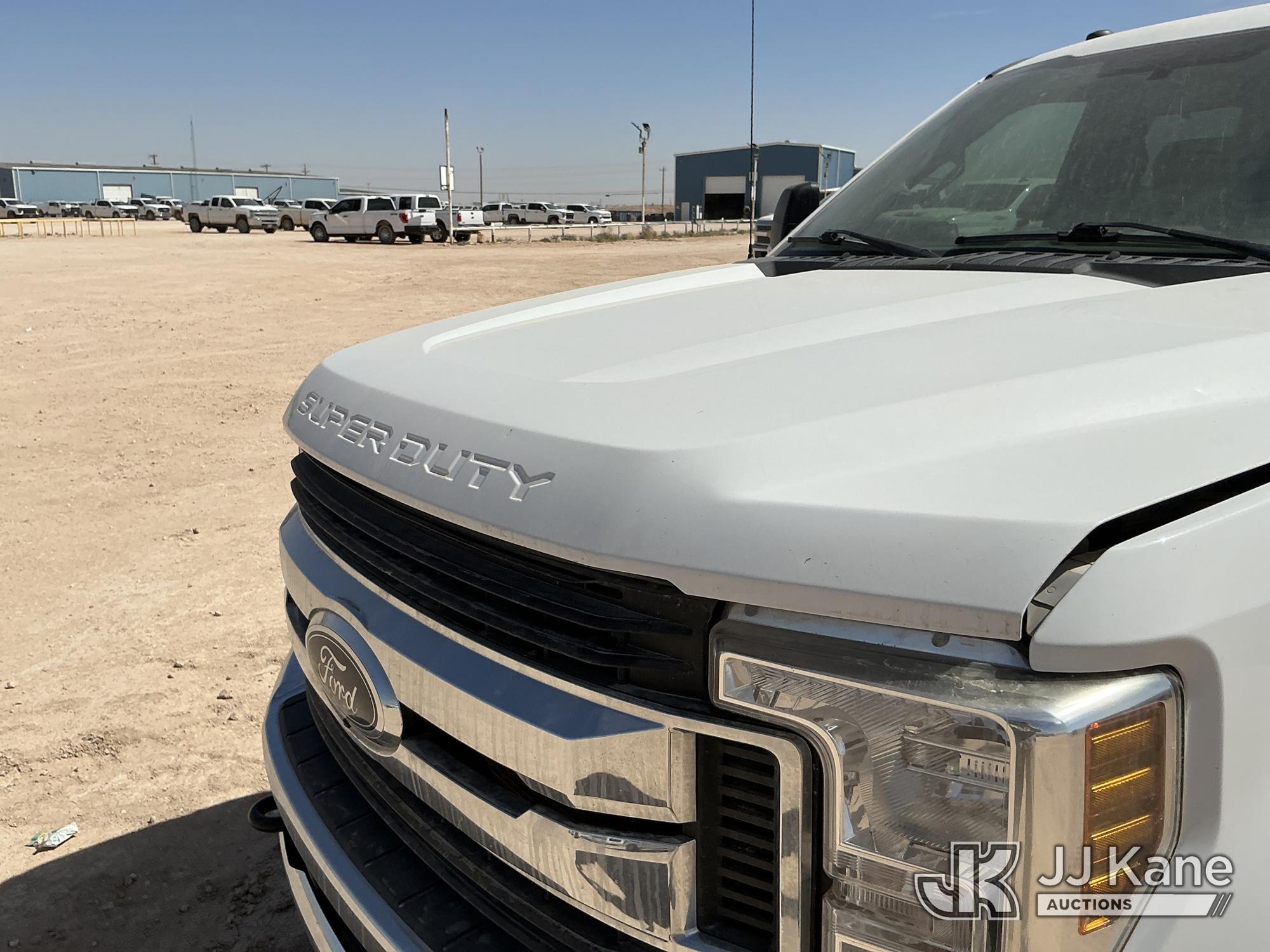 2019 Ford F250 4x4 Crew-Cab Pickup Truck, 6.2L V8 OHV 16V gas, 6-Speed Automatic, A/C, (102,295 miles) (Runs & Moves) (Check Engine Light On, Engine Noise, Windshield Cracked, Paint/Body Damage, Front Right Tire Flat) (Reads 6,065 hours) This is a Titled Item*