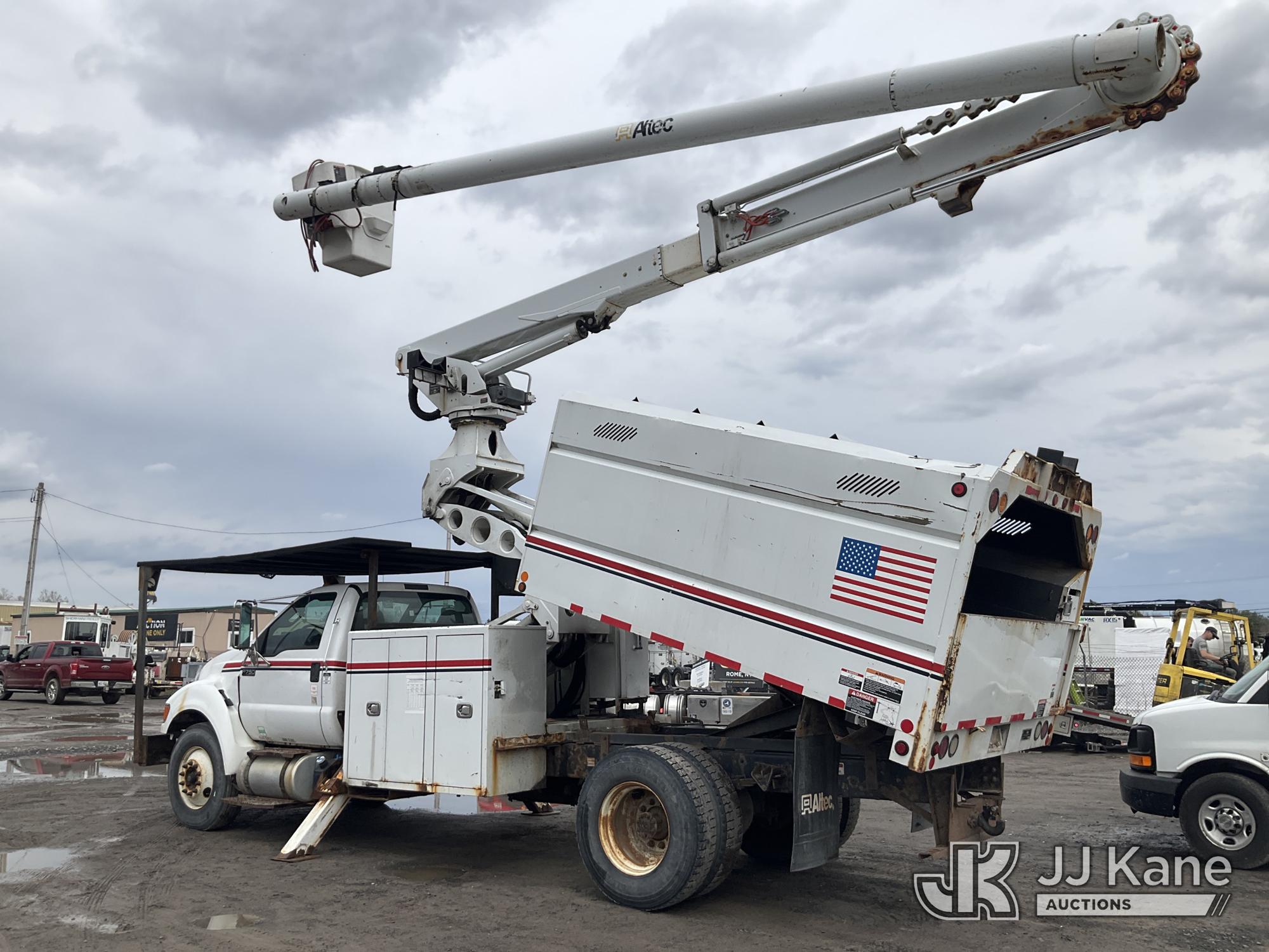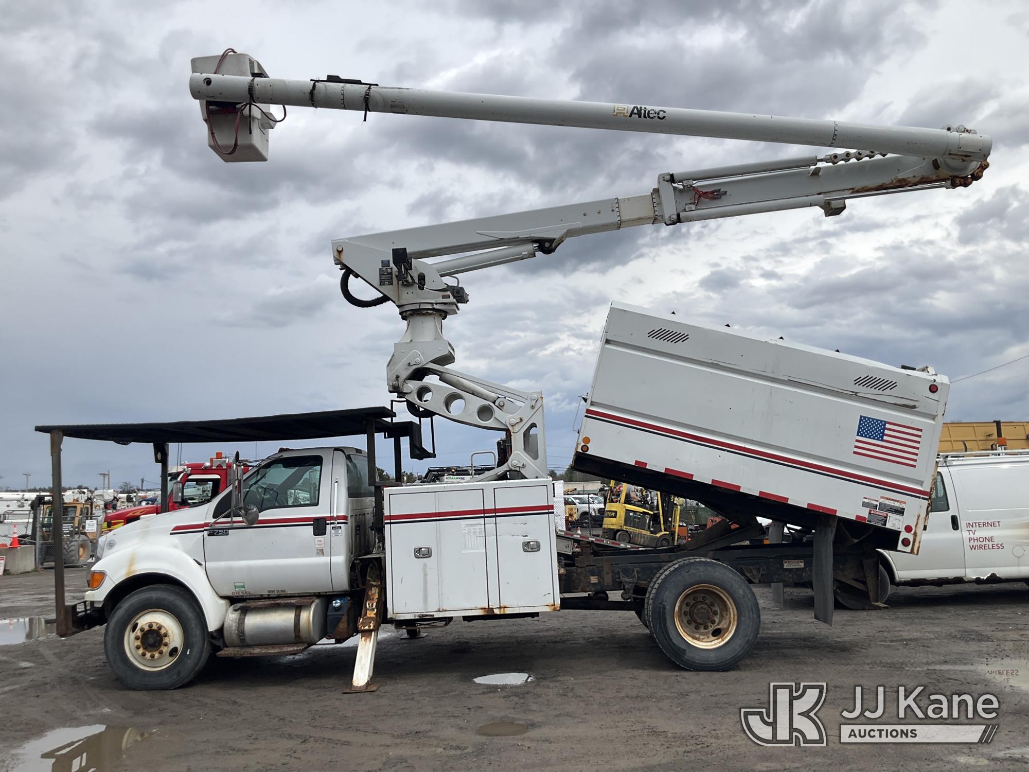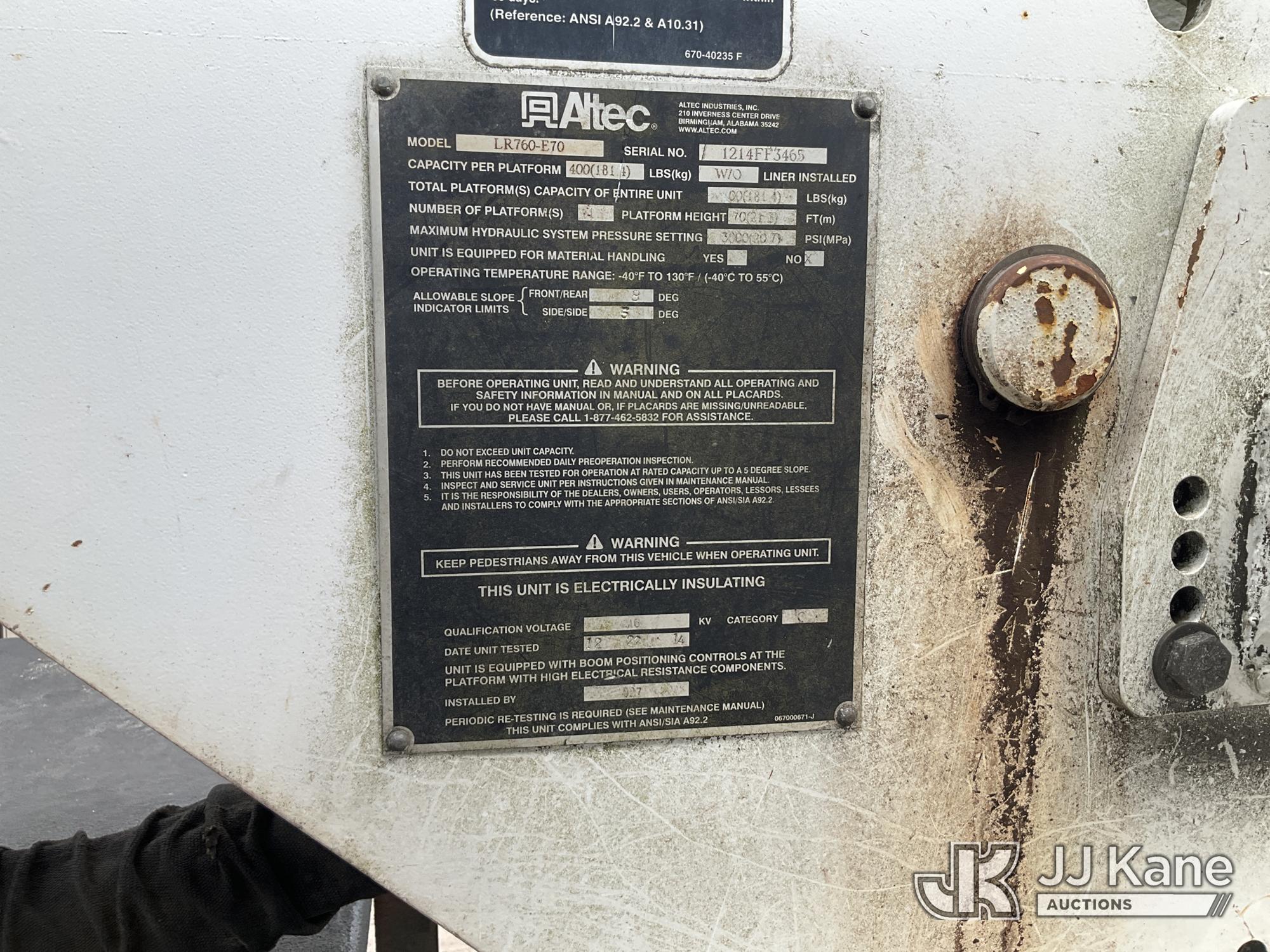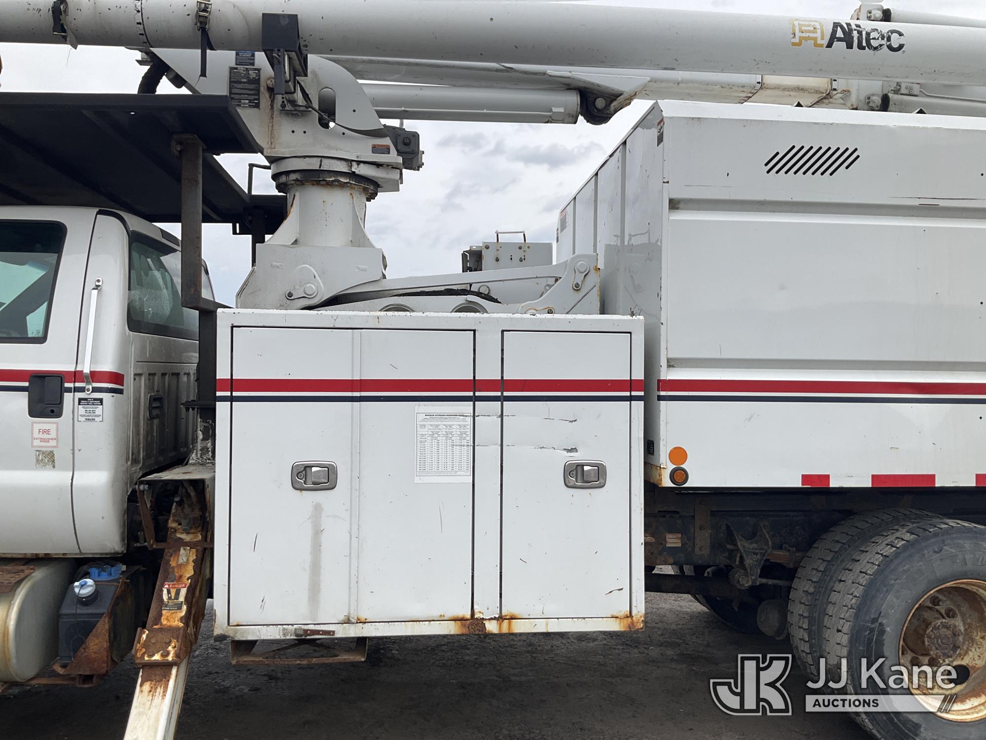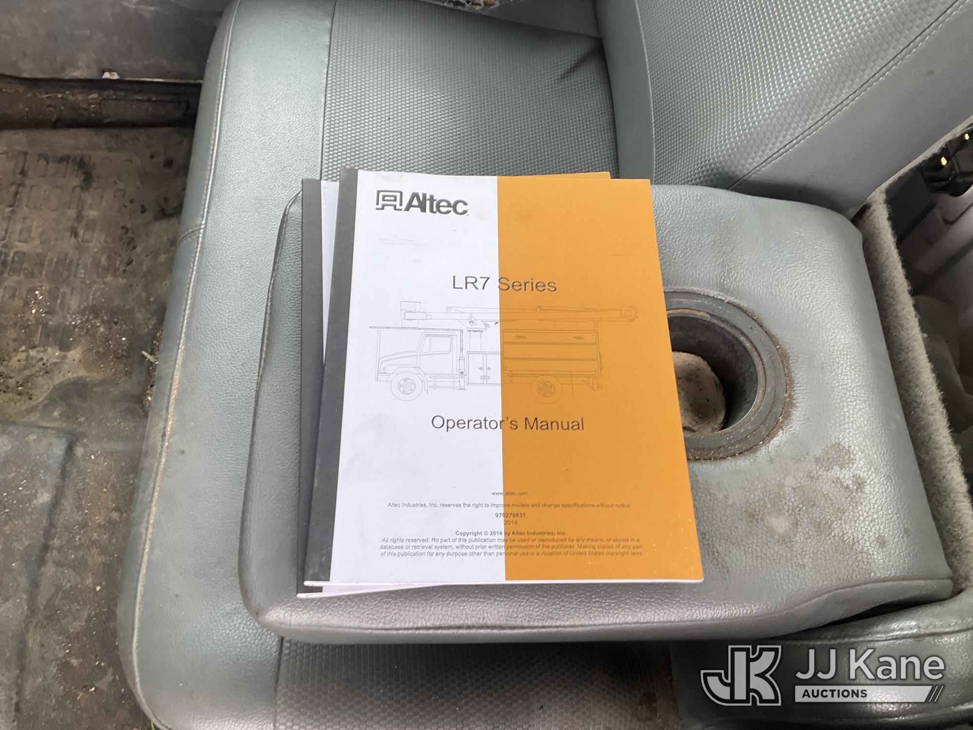 Altec LR760-E70, 75 ft, Over-Center Elevator Bucket Truck s/n 1214FF3465, with Single Man Bucket & 2 Outriggers, mounted behind cab on 2015 Ford F750 Chipper Dump Truck, Cummins 6.7L diesel, Auto, with 11 ft body, (71,493 miles) (Runs, Moves &. upper Operates, Check Engine Light On ) This is a Titled Item*