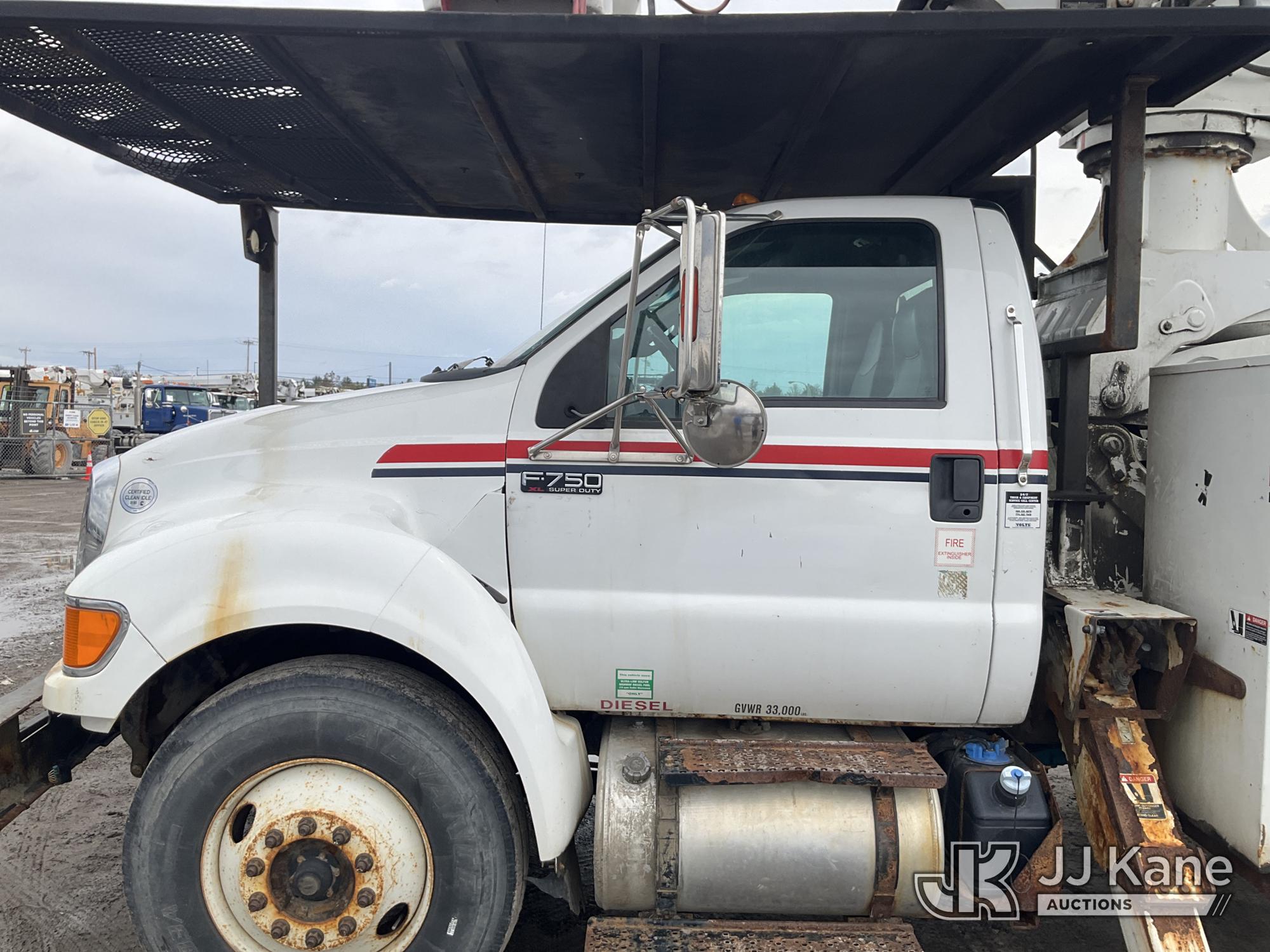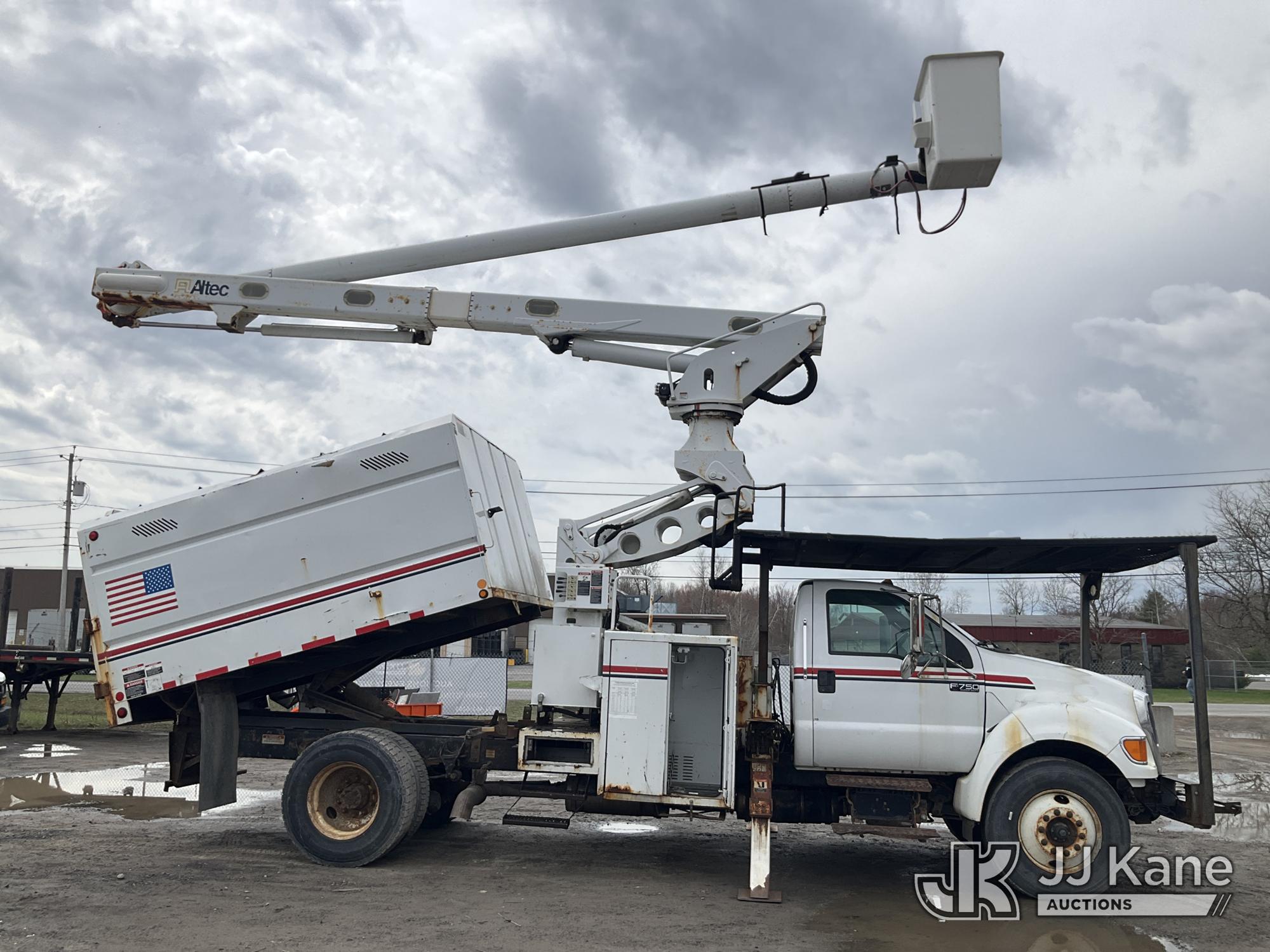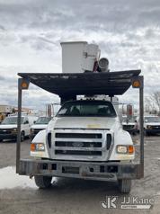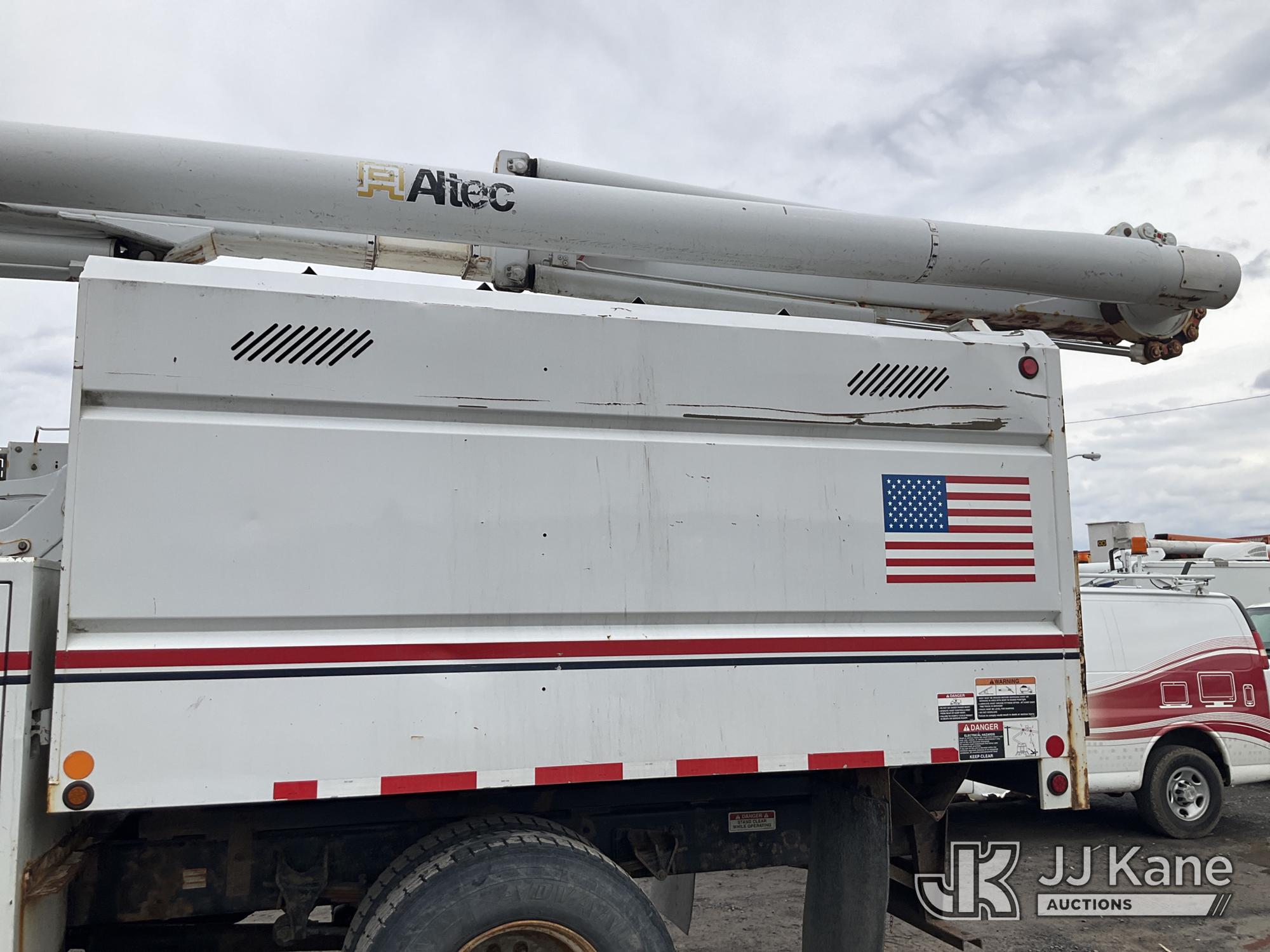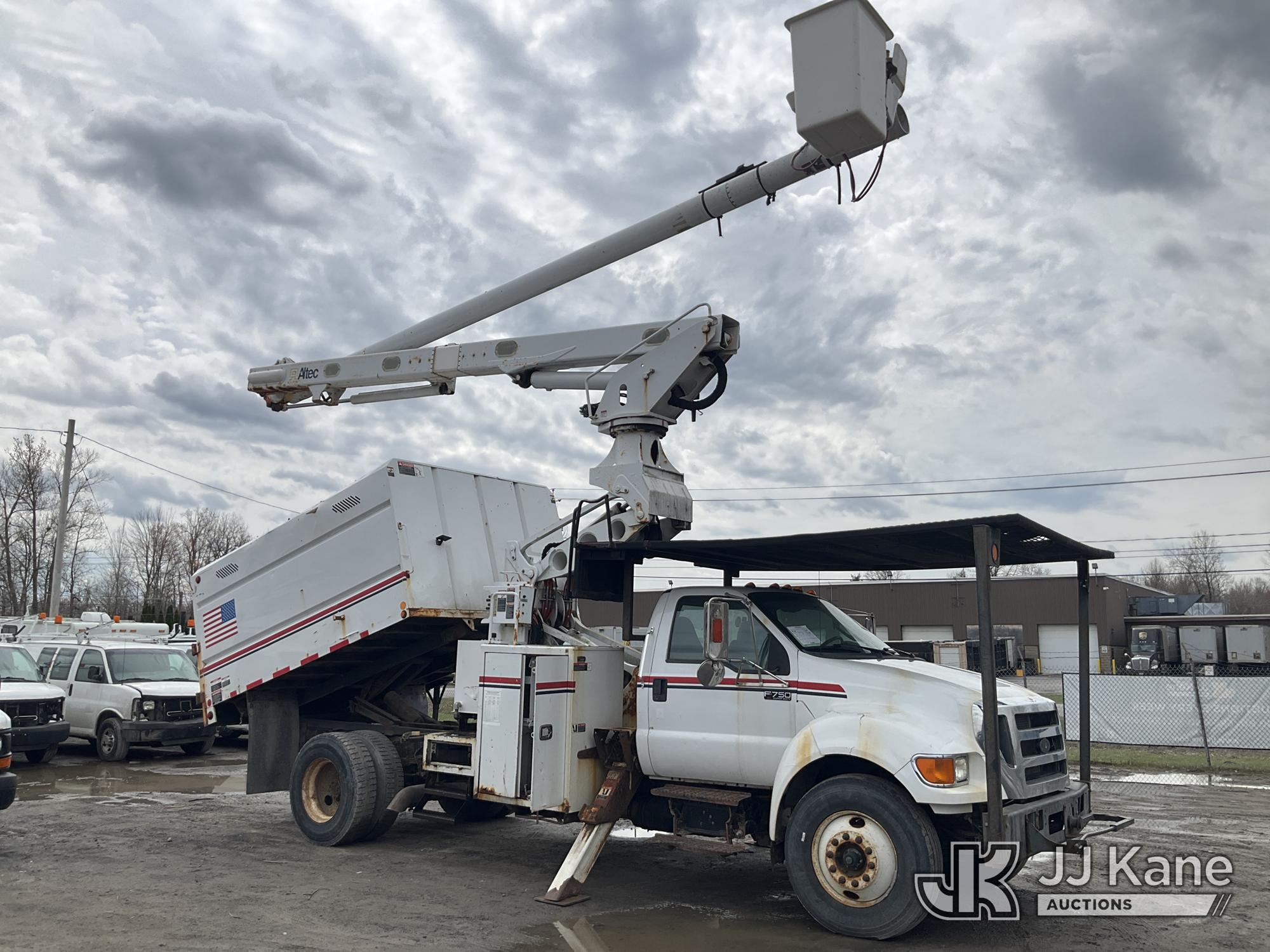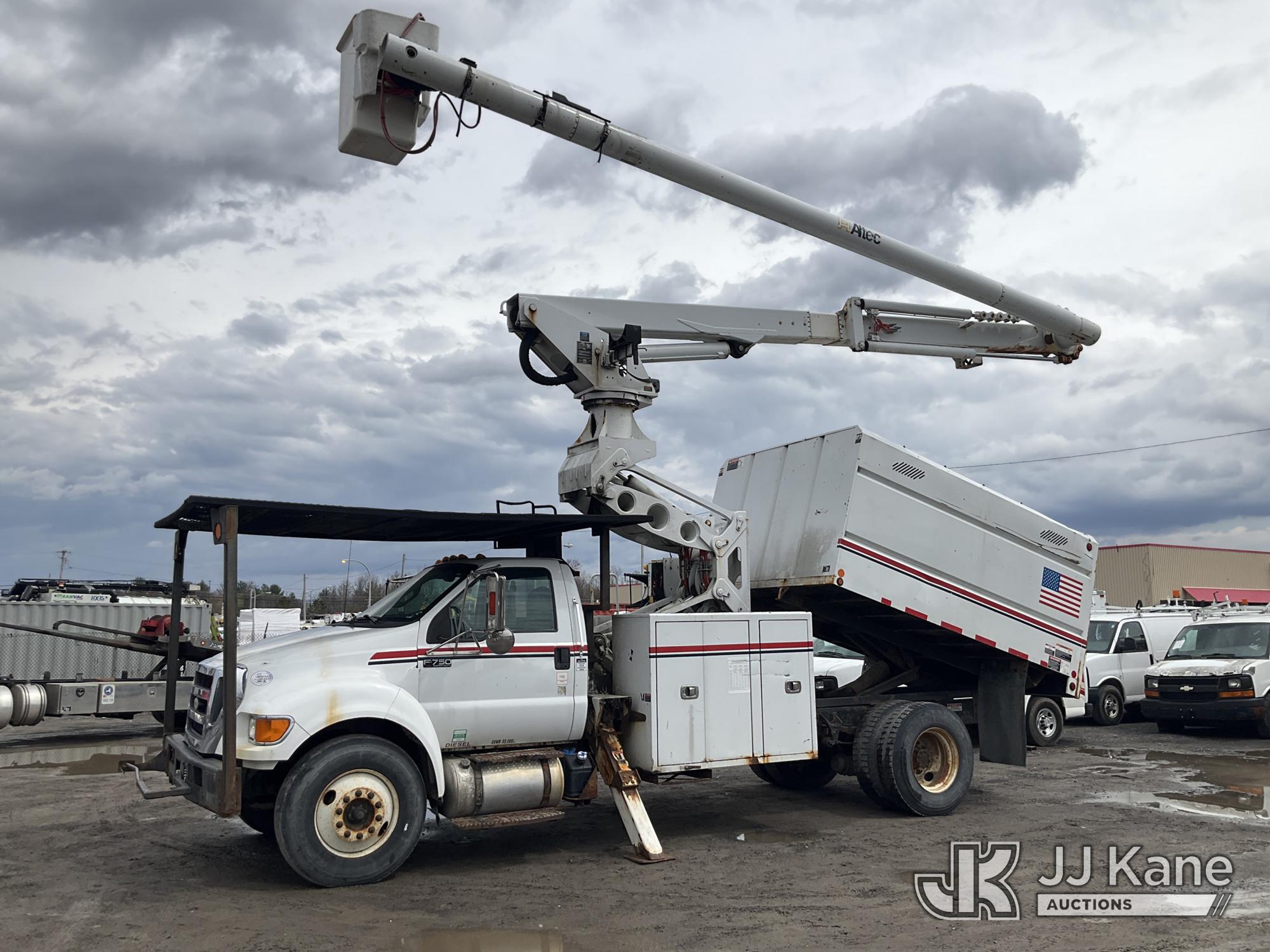 Altec LR760-E70, 75 ft, Over-Center Elevator Bucket Truck s/n 1214FF3465, with Single Man Bucket & 2 Outriggers, mounted behind cab on 2015 Ford F750 Chipper Dump Truck, Cummins 6.7L diesel, Auto, with 11 ft body, (71,493 miles) (Runs, Moves &. upper Operates, Check Engine Light On ) This is a Titled Item*