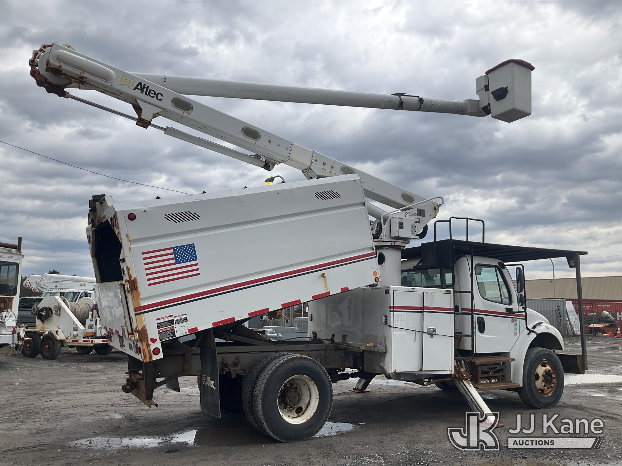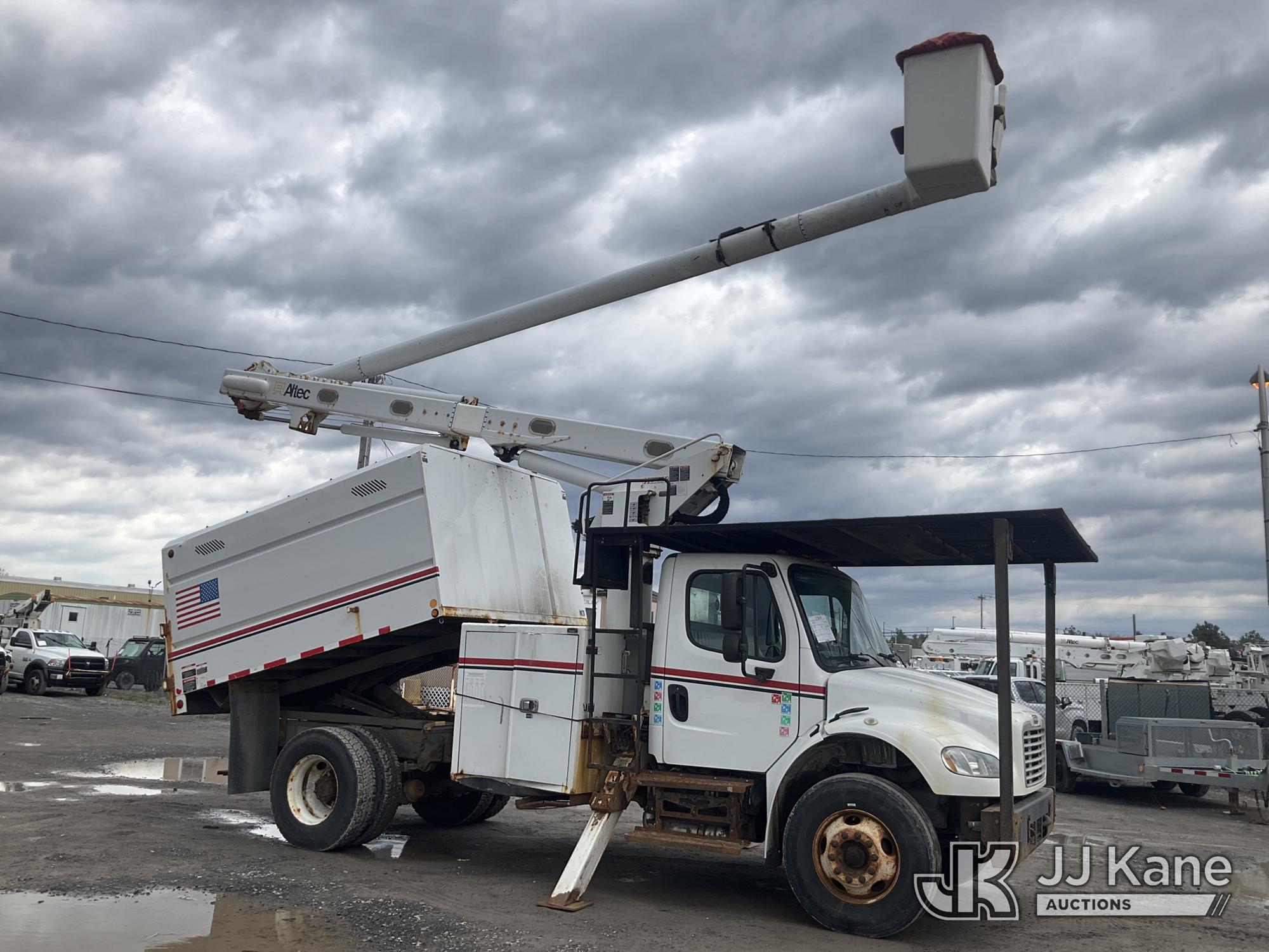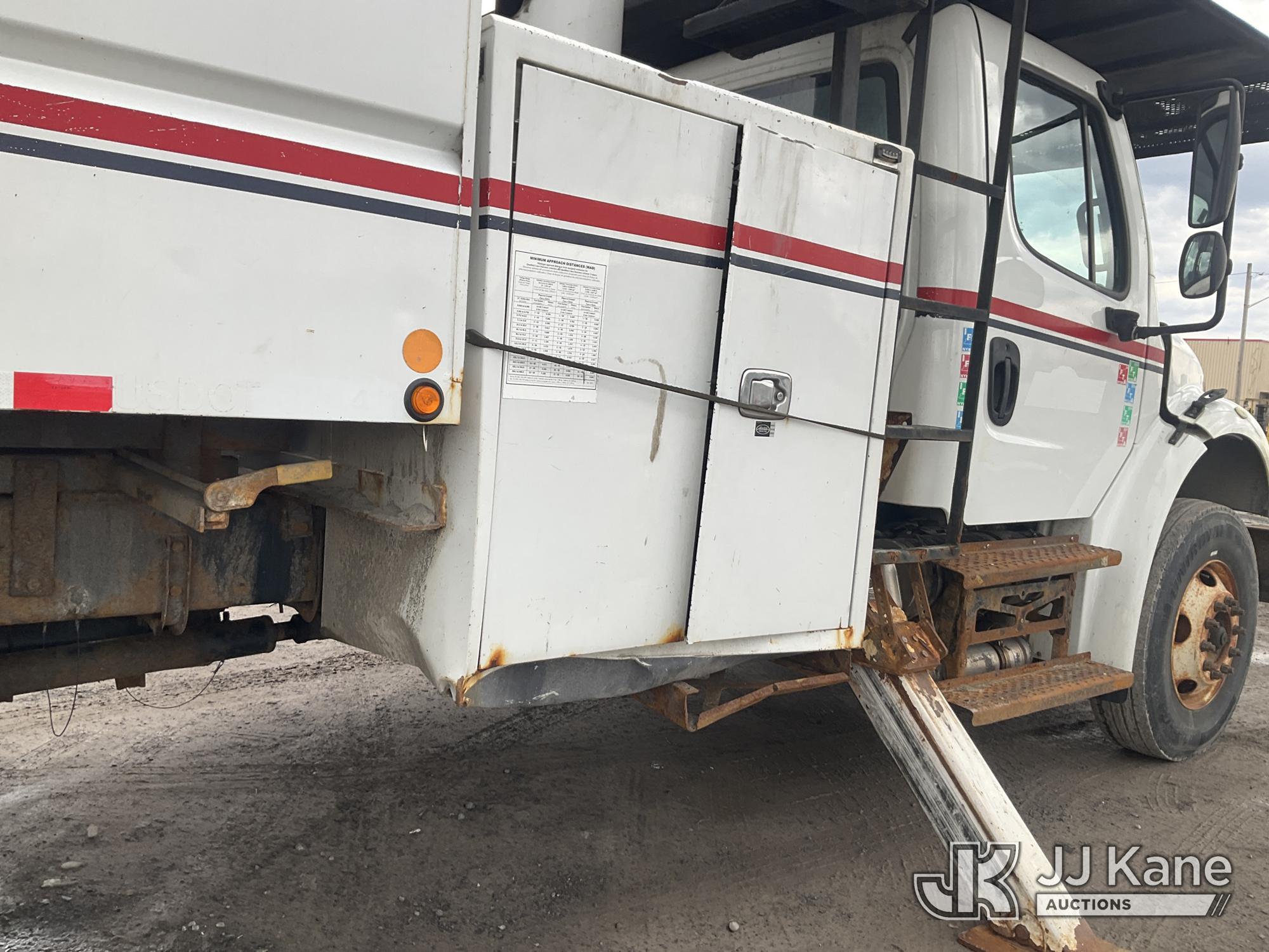 Altec LR758, 63 ft, Over-Center Bucket Truck s/n 1014FF3238, with Single Man Bucket & 2 Outriggers, mounted behind cab on 2015 Freightliner M2 106 Chipper Dump Truck, Cummins 6.7L diesel, Auto, A/C, with 11 ft body, (69,730 miles) (Runs, Moves & Upper Operates ) This is a Titled Item*