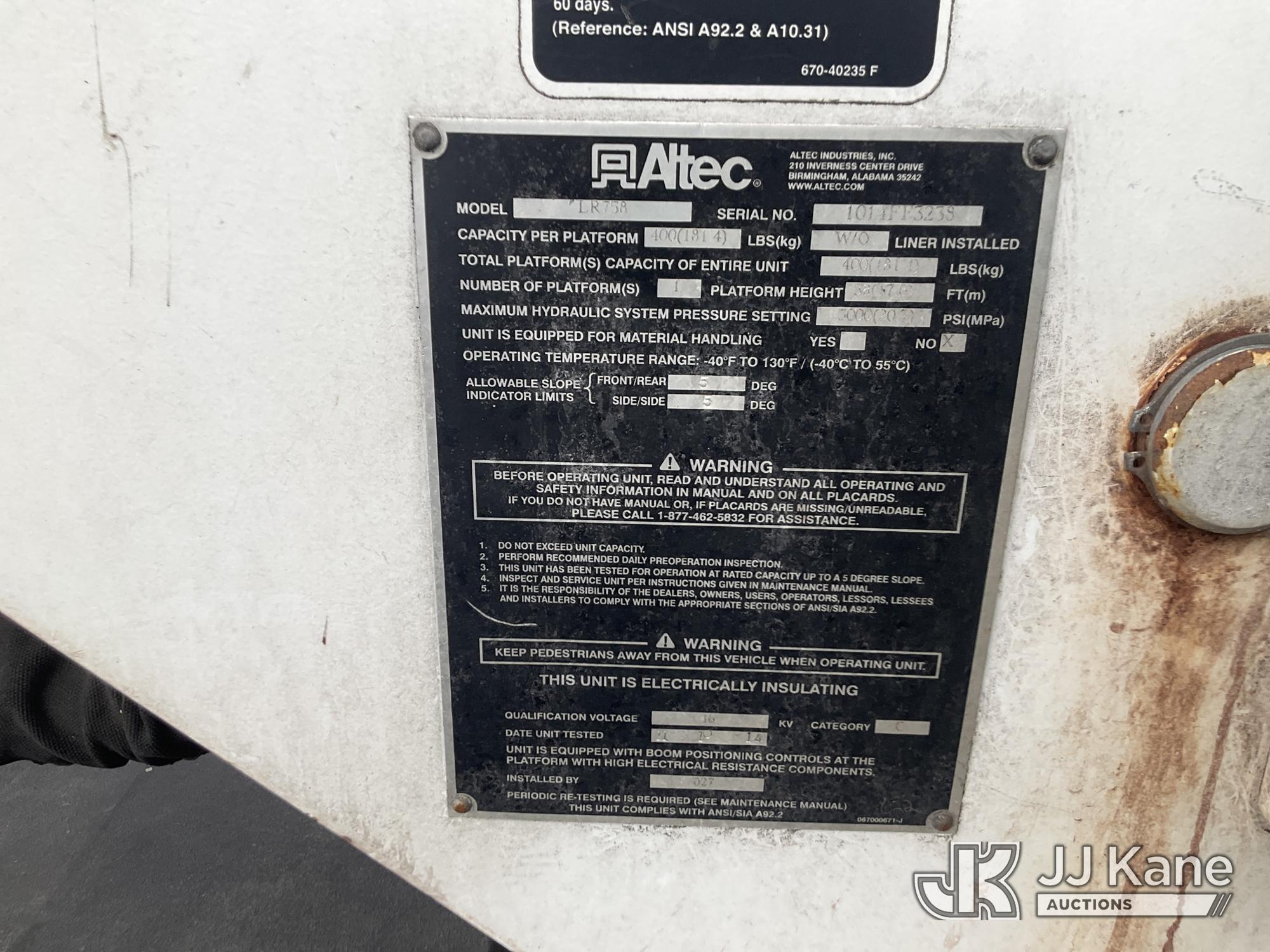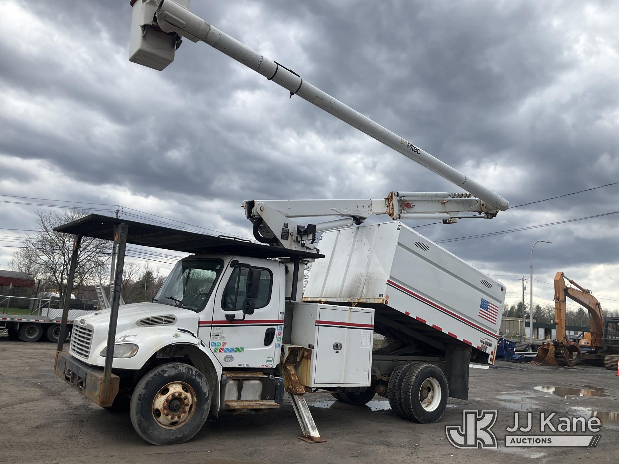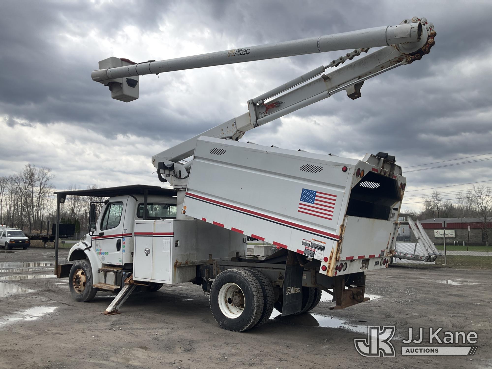 Altec LR758, 63 ft, Over-Center Bucket Truck s/n 1014FF3238, with Single Man Bucket & 2 Outriggers, mounted behind cab on 2015 Freightliner M2 106 Chipper Dump Truck, Cummins 6.7L diesel, Auto, A/C, with 11 ft body, (69,730 miles) (Runs, Moves & Upper Operates ) This is a Titled Item*