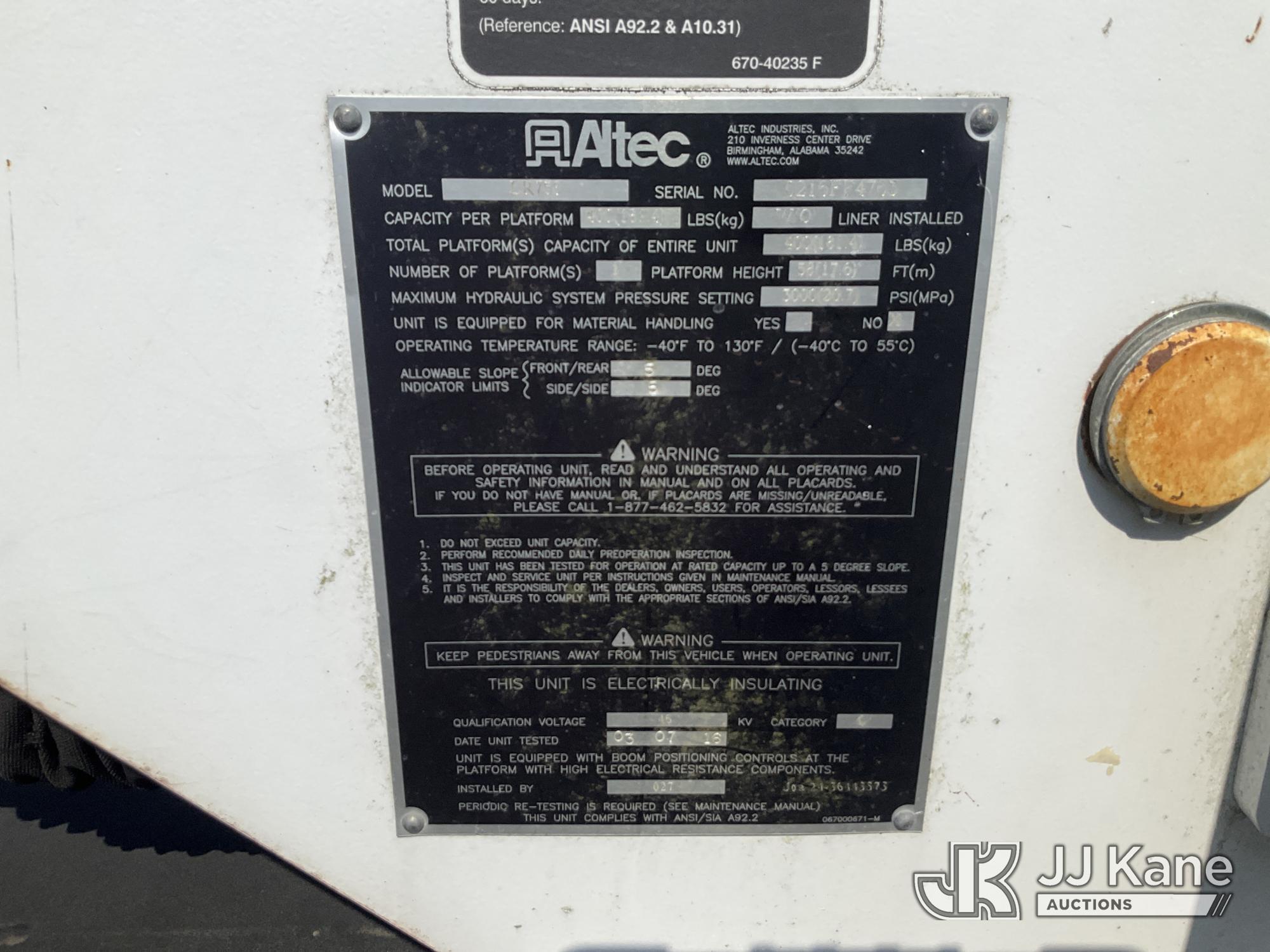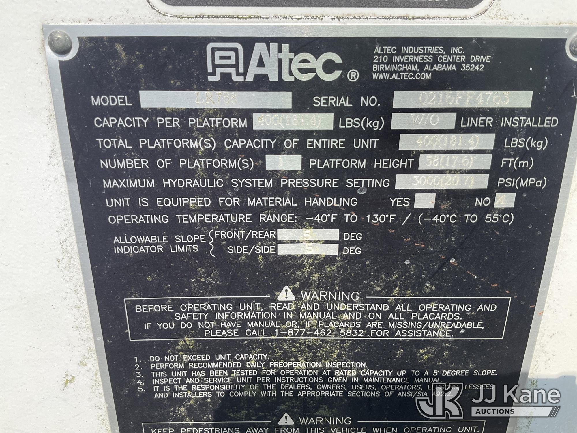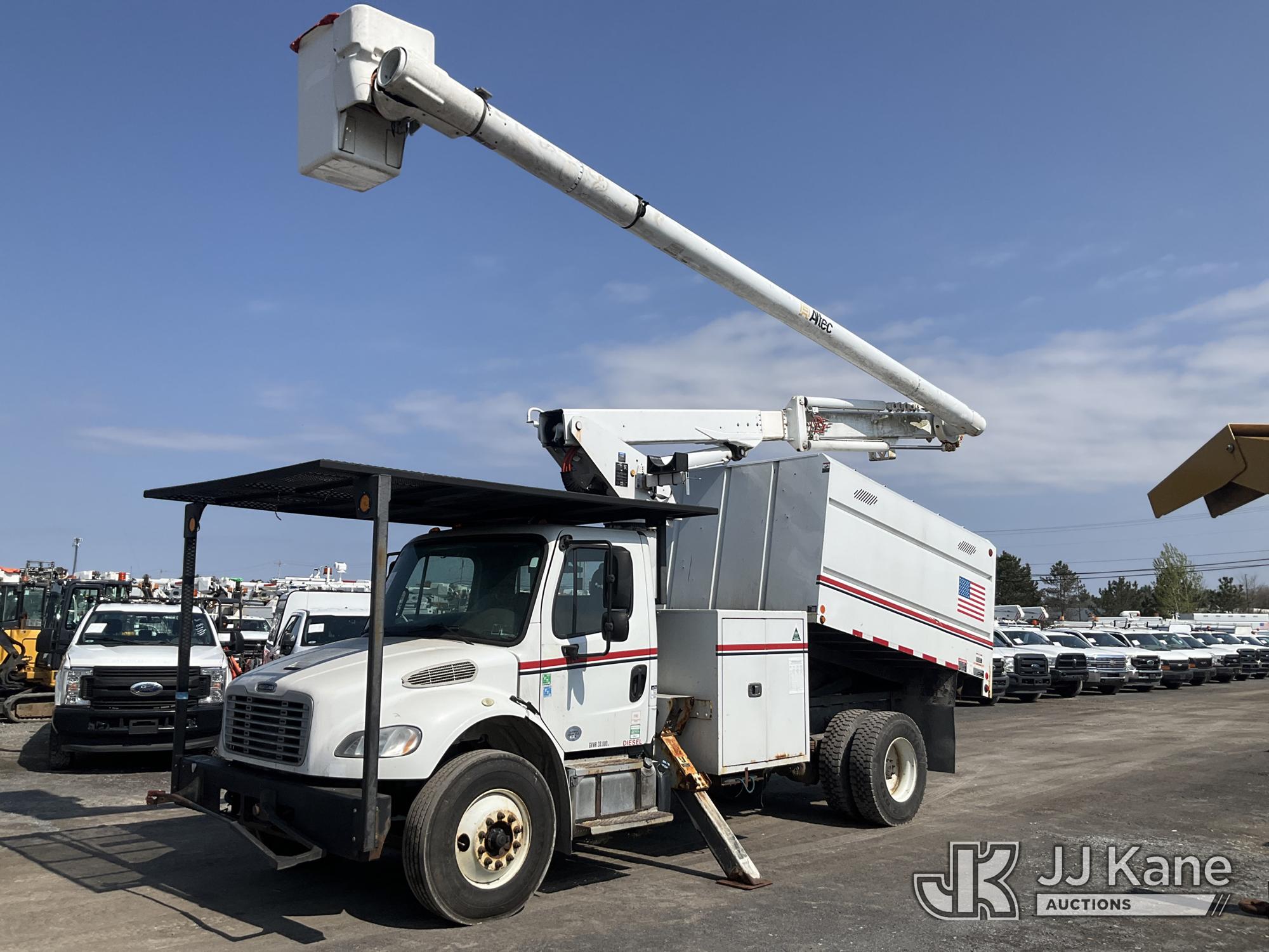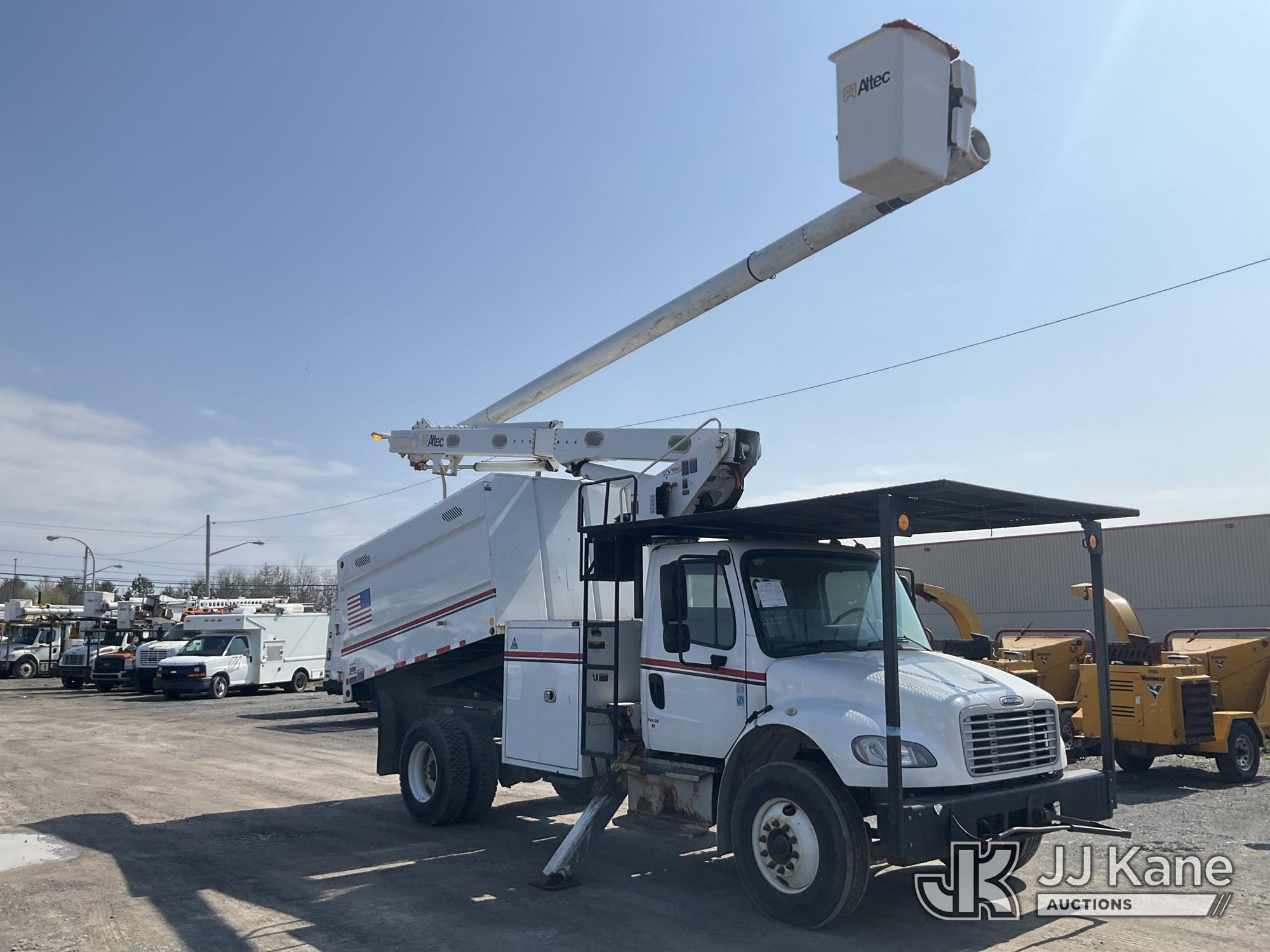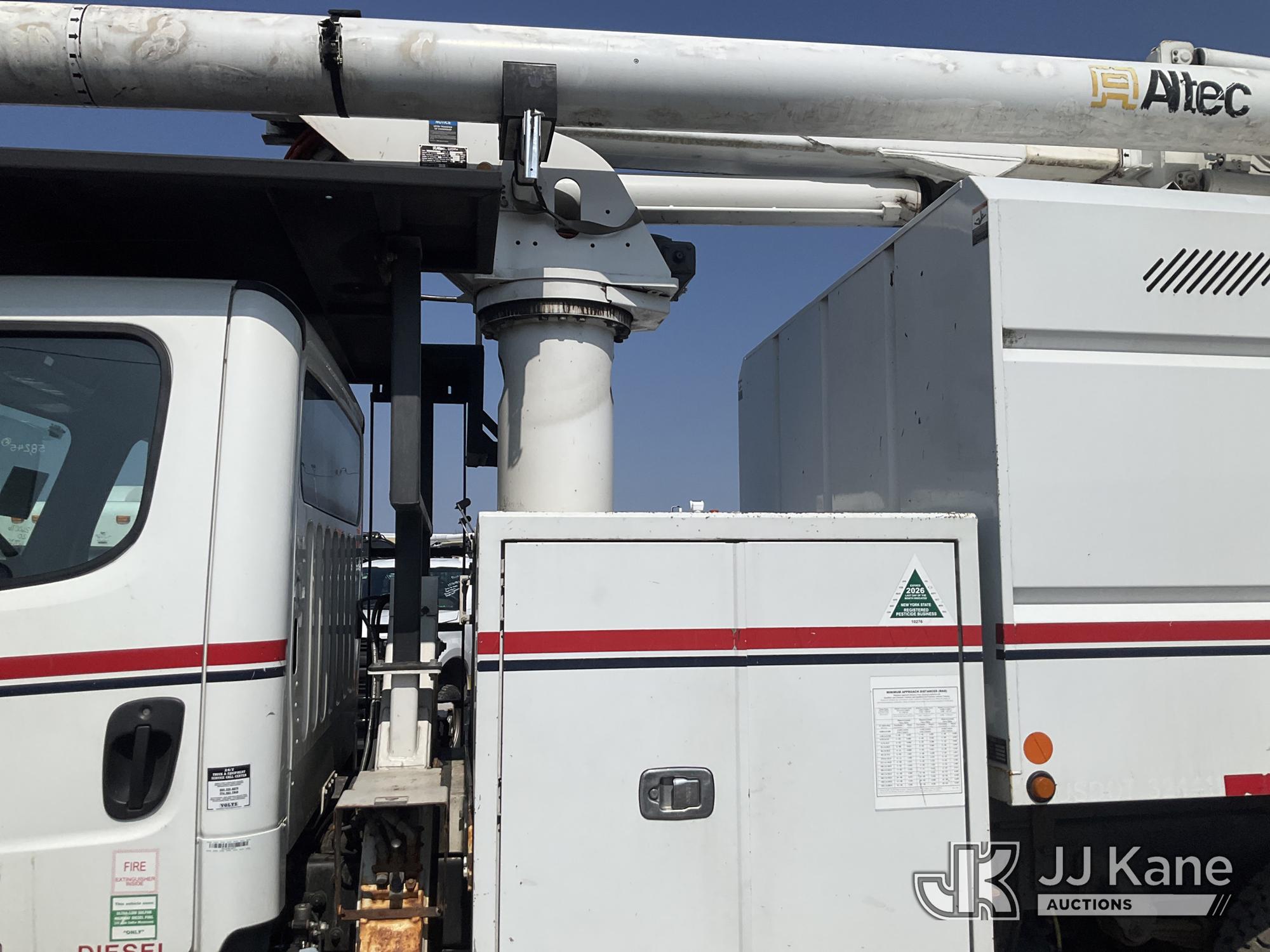 Altec LR758, 63 ft, Over-Center Bucket Truck s/n 0216FF4763, with Single Man Bucket & 2 Outriggers, mounted behind cab on 2016 Freightliner M2 106 Chipper Dump Truck, Cummins 6.7L diesel, Auto, A/C, with 11 ft body, (58,249 miles) (Runs, Moves & Upper Operates ) This is a Titled Item*