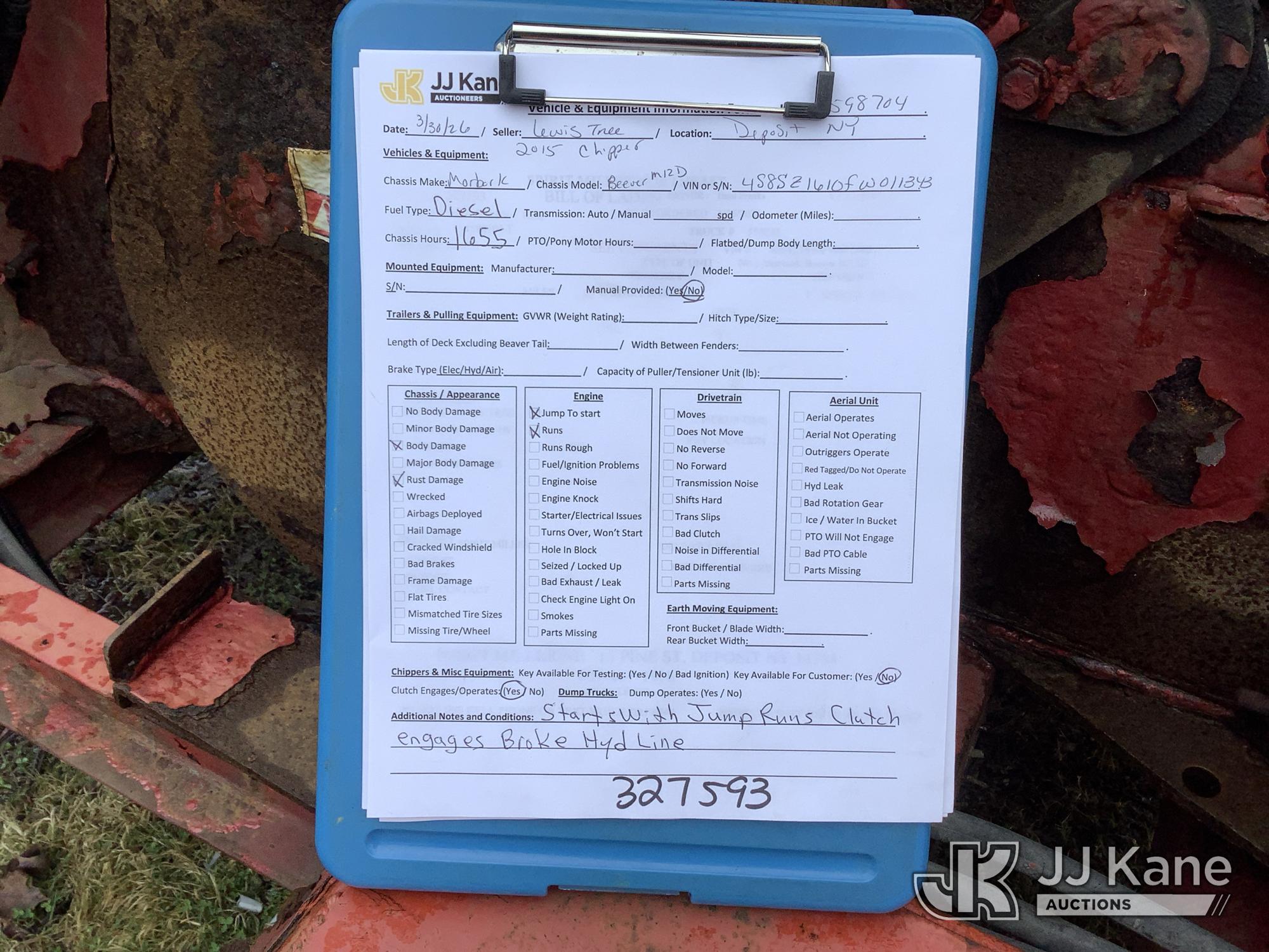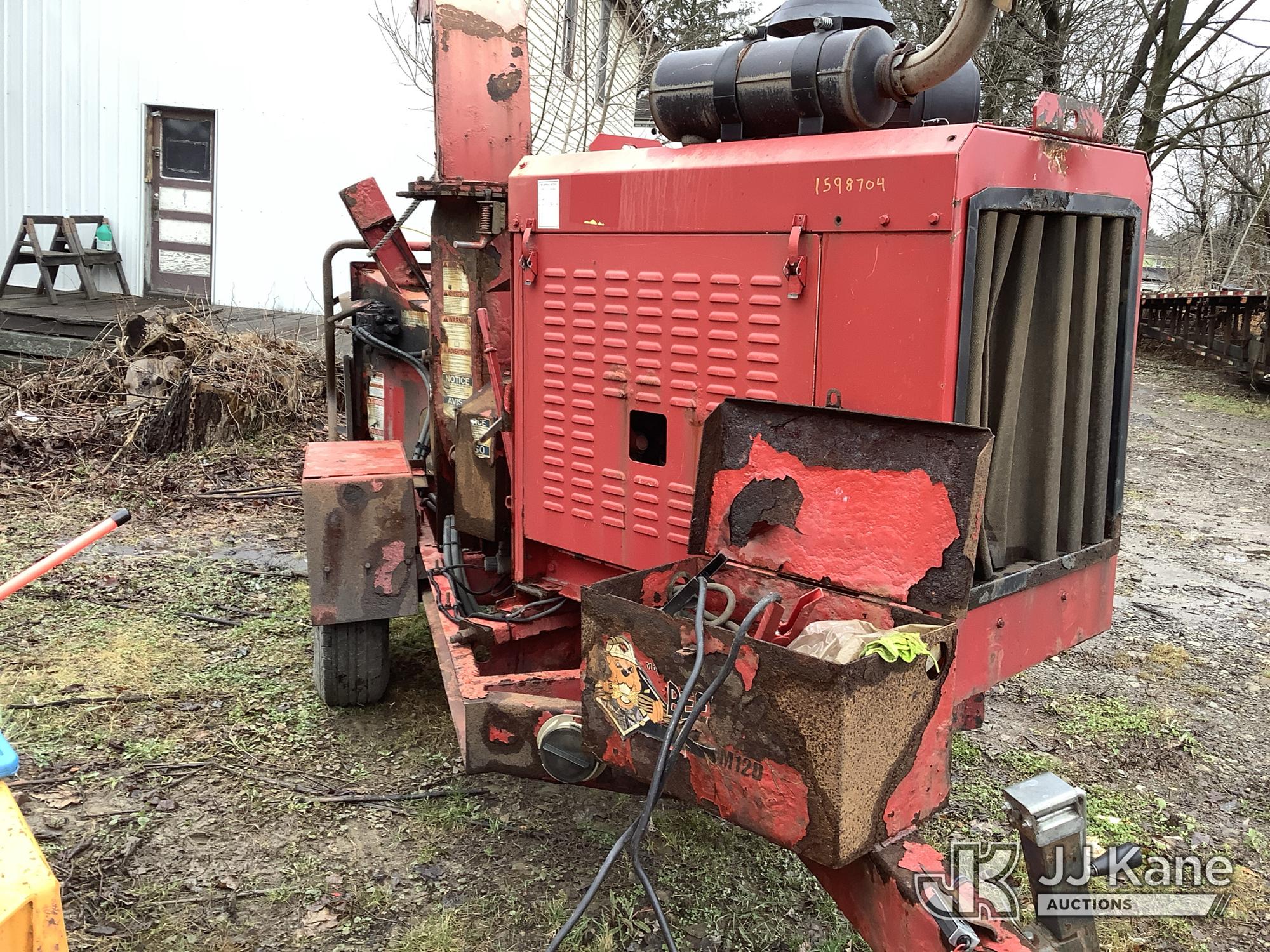 2015 Morbark Beever M12D Portable Chipper (12in Drum), diesel, Trailer Mounted (Runs, Jump to Start, Broken Hyd LIne) (Removal is by Appointment Only, Buyer MUST make a appointment prior to picking up, Buyer/Transporter Must have PAID IN FULL RELEASE. No onsite assistance available, Please Come prepared.) (Reads 1,655 hours) This is a Titled Item*