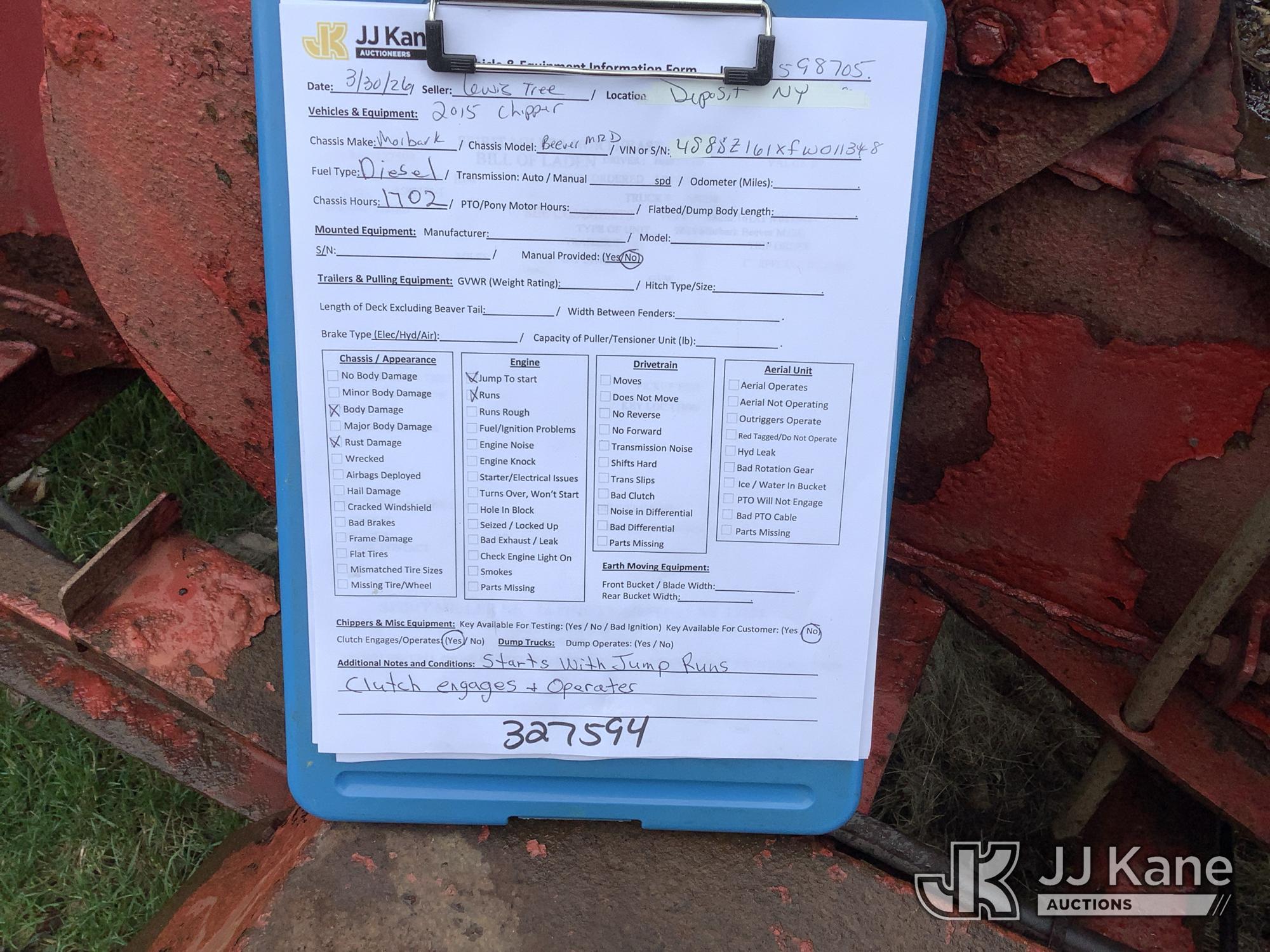 2015 Morbark Beever M12D Portable Chipper (12in Drum), diesel, Trailer Mounted (Runs, Jump to Start) (Removal is by Appointment Only, Buyer MUST make a appointment prior to picking up, Buyer/Transporter Must have PAID IN FULL RELEASE. No onsite assistance available, Please Come prepared.) This is a Titled Item*