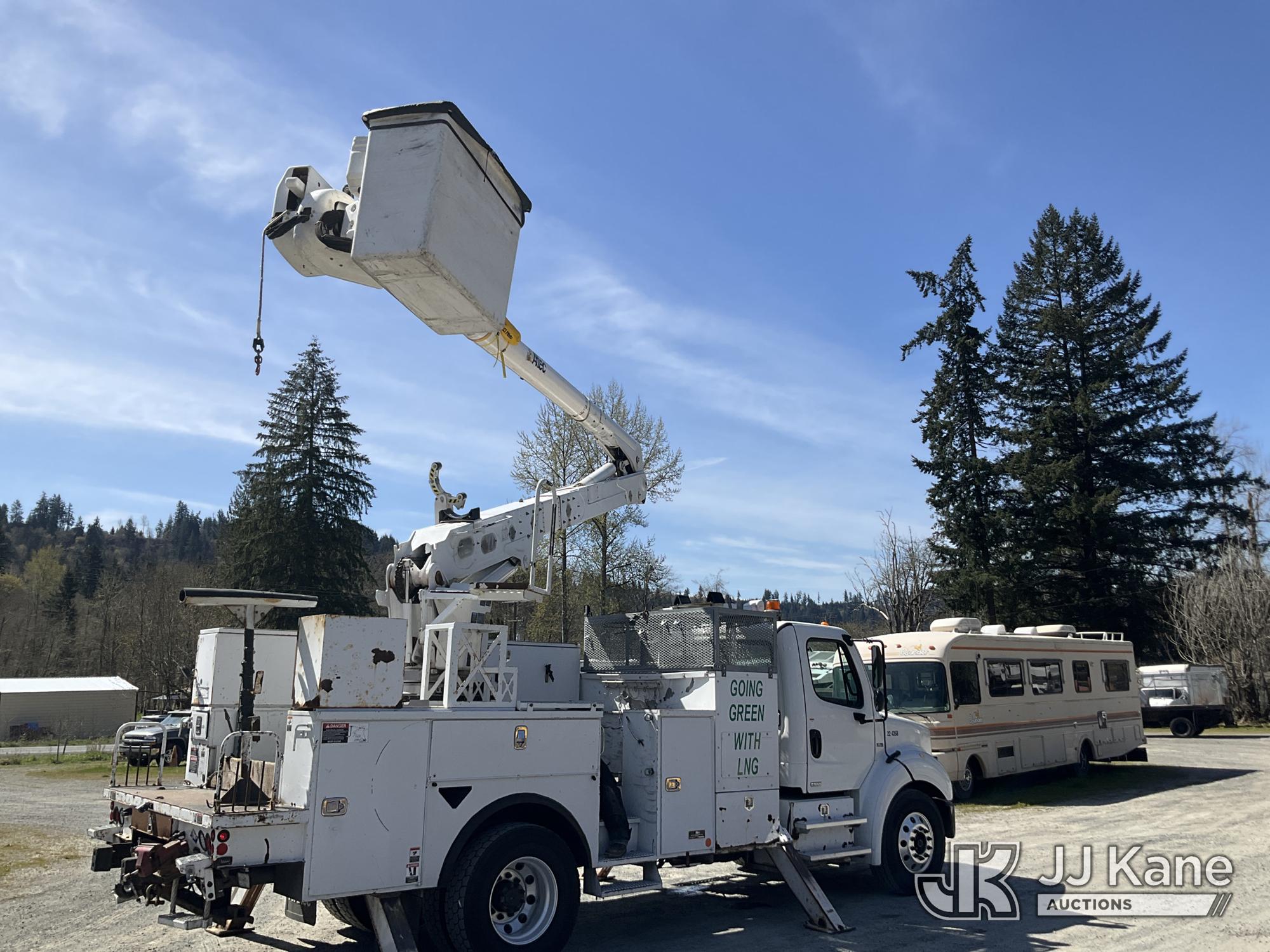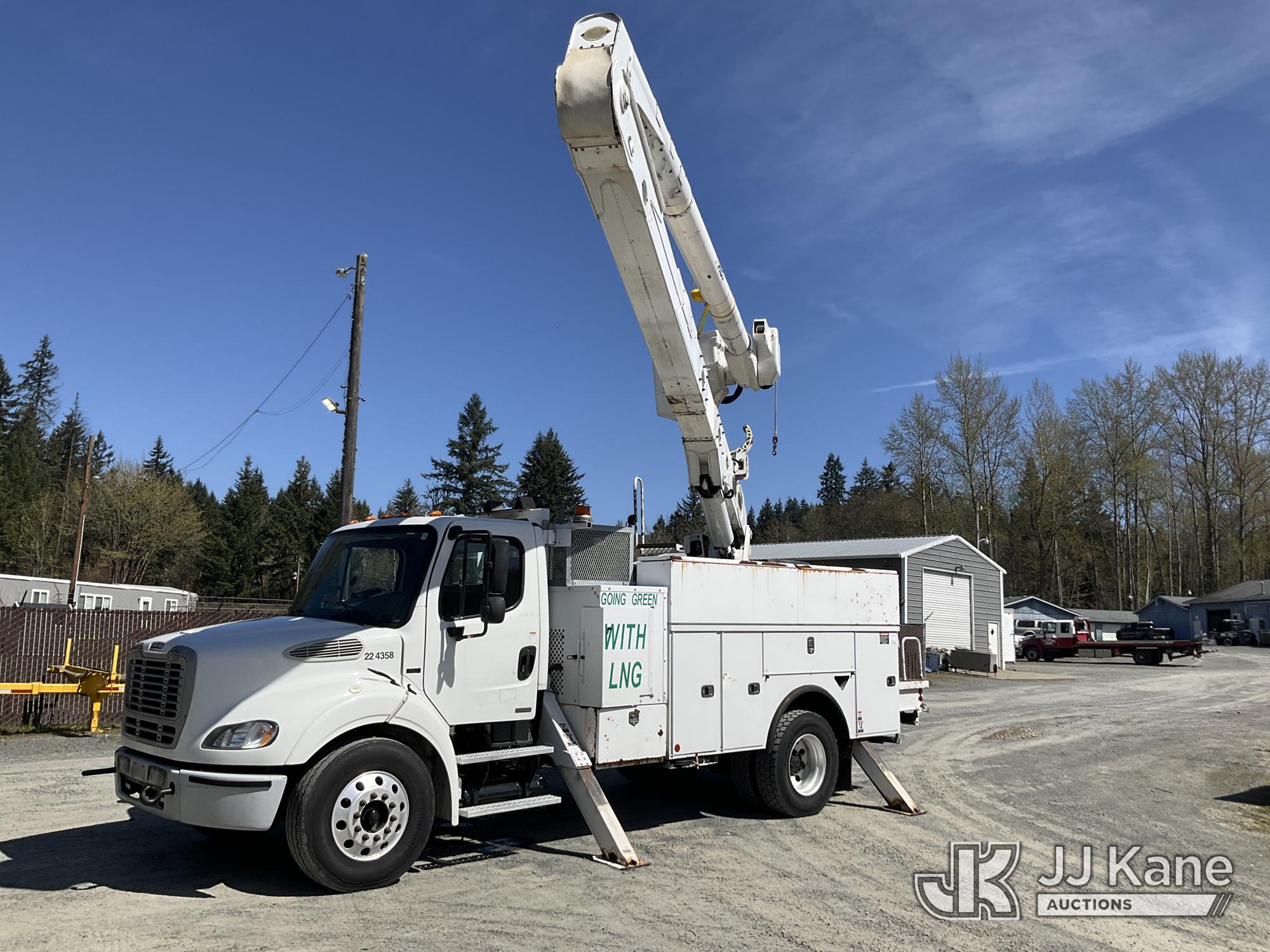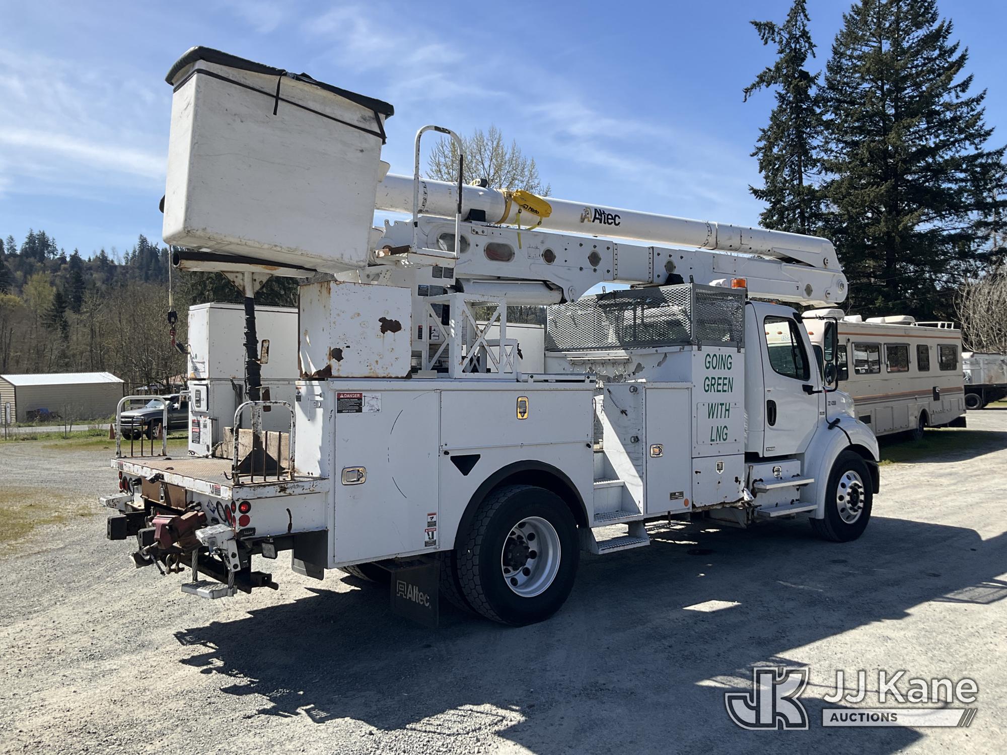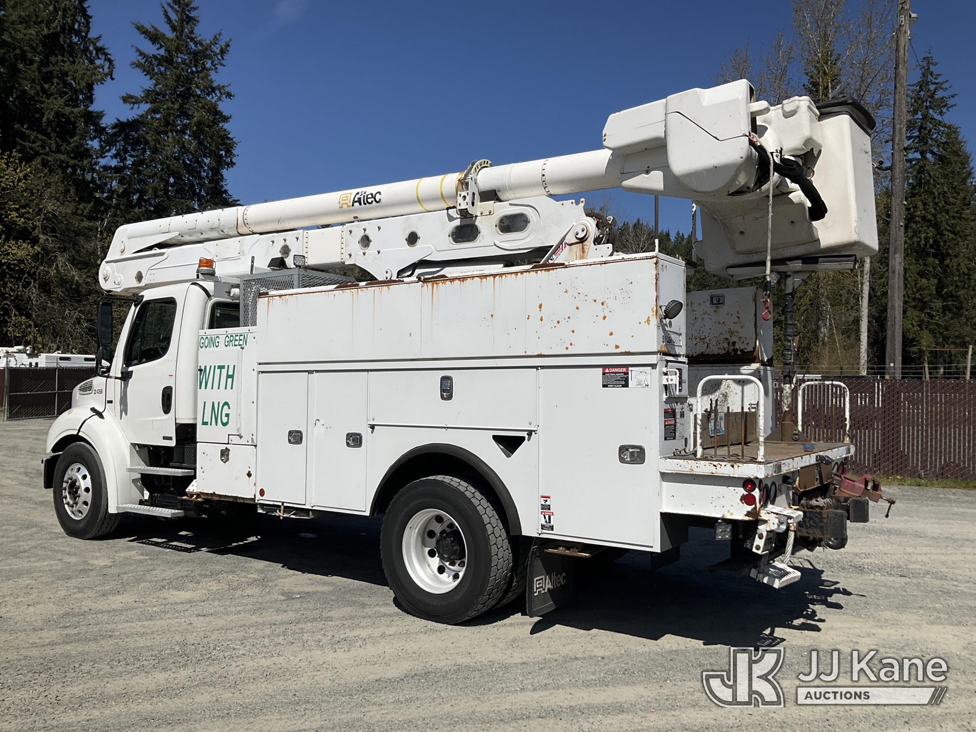 Altec AA55-MH, 60 ft, Material Handling Bucket Truck s/n 0914FH1385, with two man bucket, rear mounted on 2015 Freightliner M2 112 Utility Truck, 8.9L LNG 4X2, LNG, Auto, A/C, (156,757 miles) (Runs, Moves & Upper Operates) (Reads 5,785 hours) This is a Titled Item*