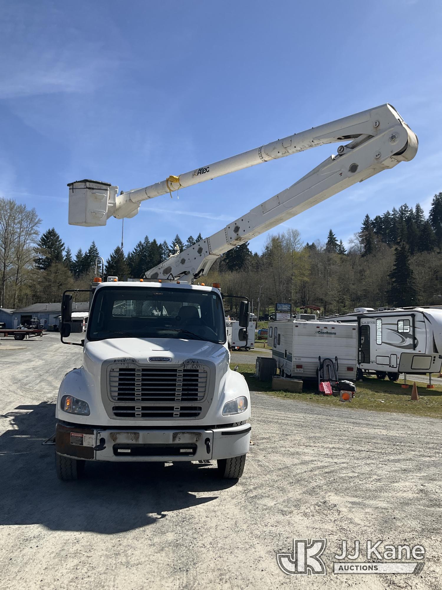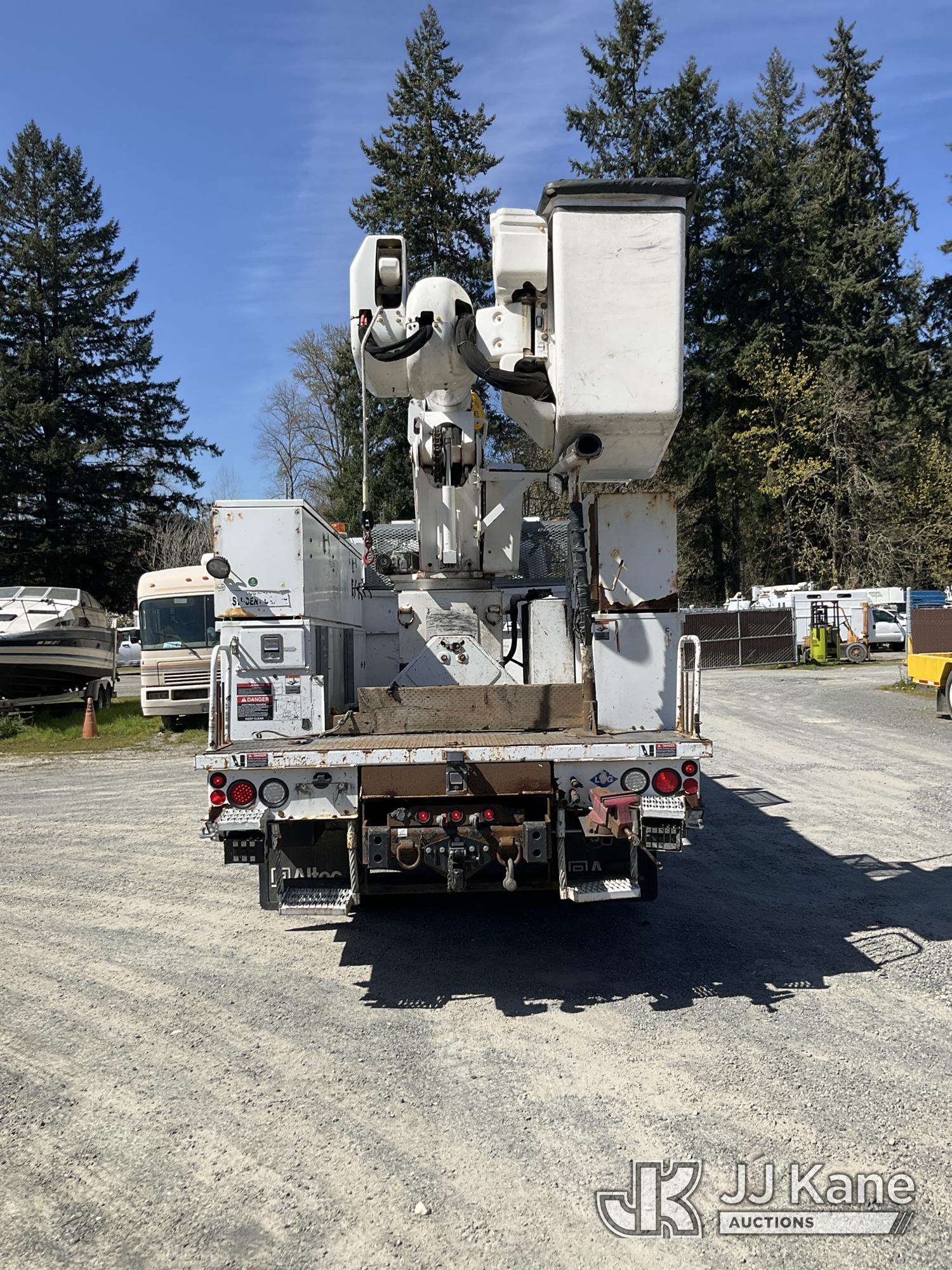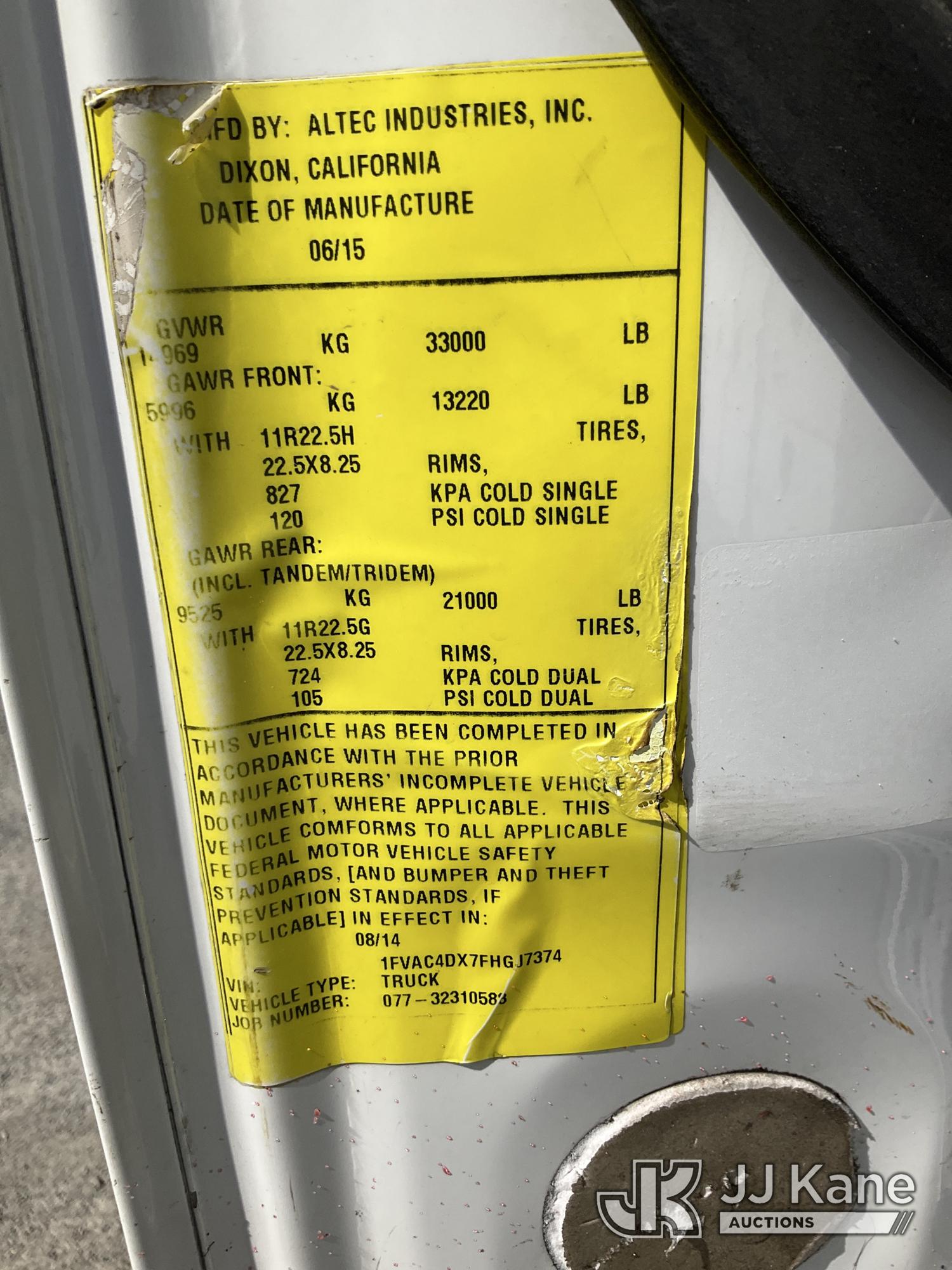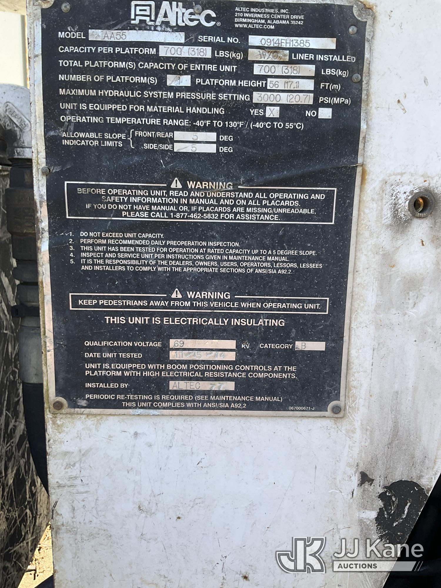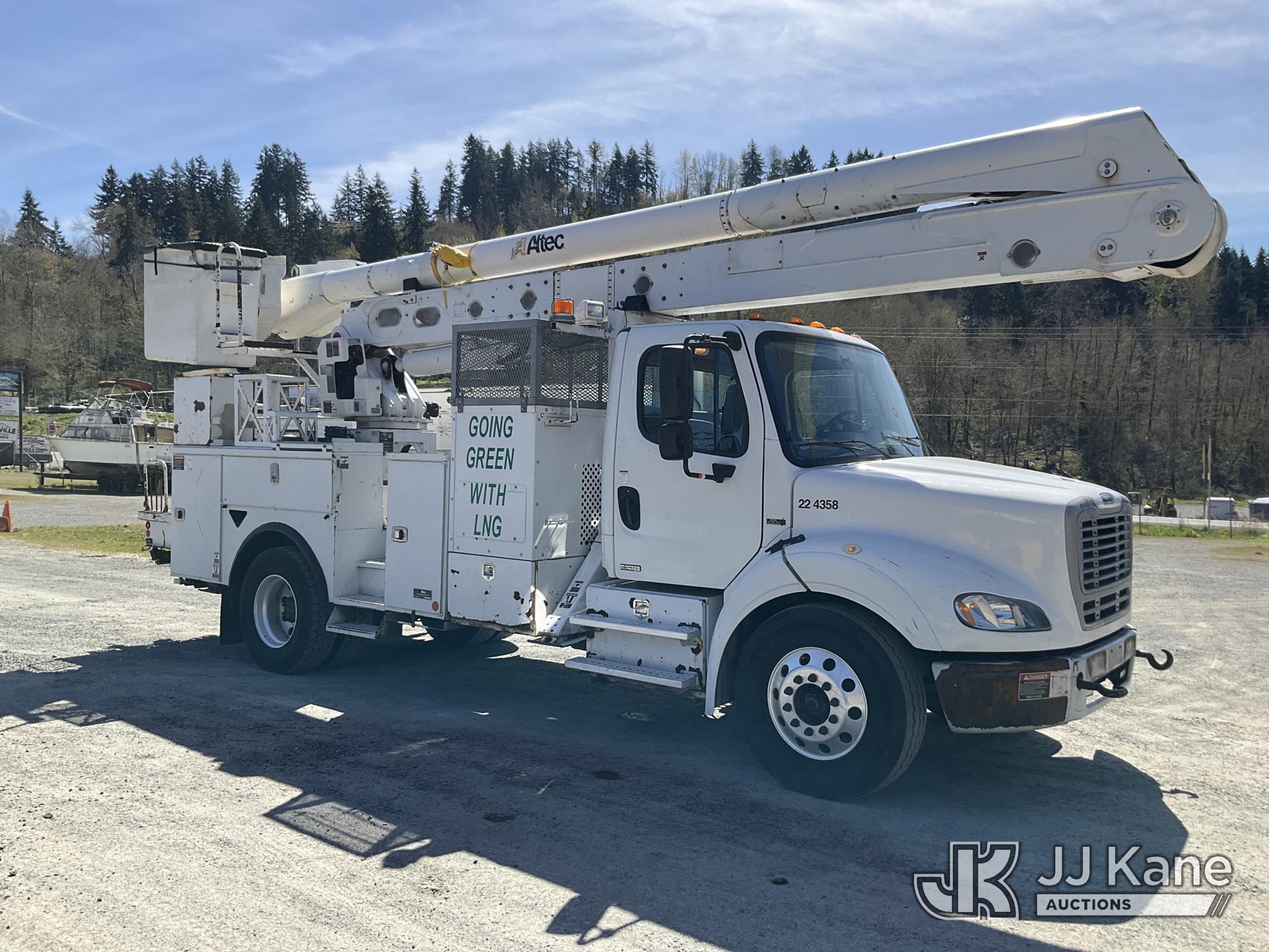 Altec AA55-MH, 60 ft, Material Handling Bucket Truck s/n 0914FH1385, with two man bucket, rear mounted on 2015 Freightliner M2 112 Utility Truck, 8.9L LNG 4X2, LNG, Auto, A/C, (156,757 miles) (Runs, Moves & Upper Operates) (Reads 5,785 hours) This is a Titled Item*