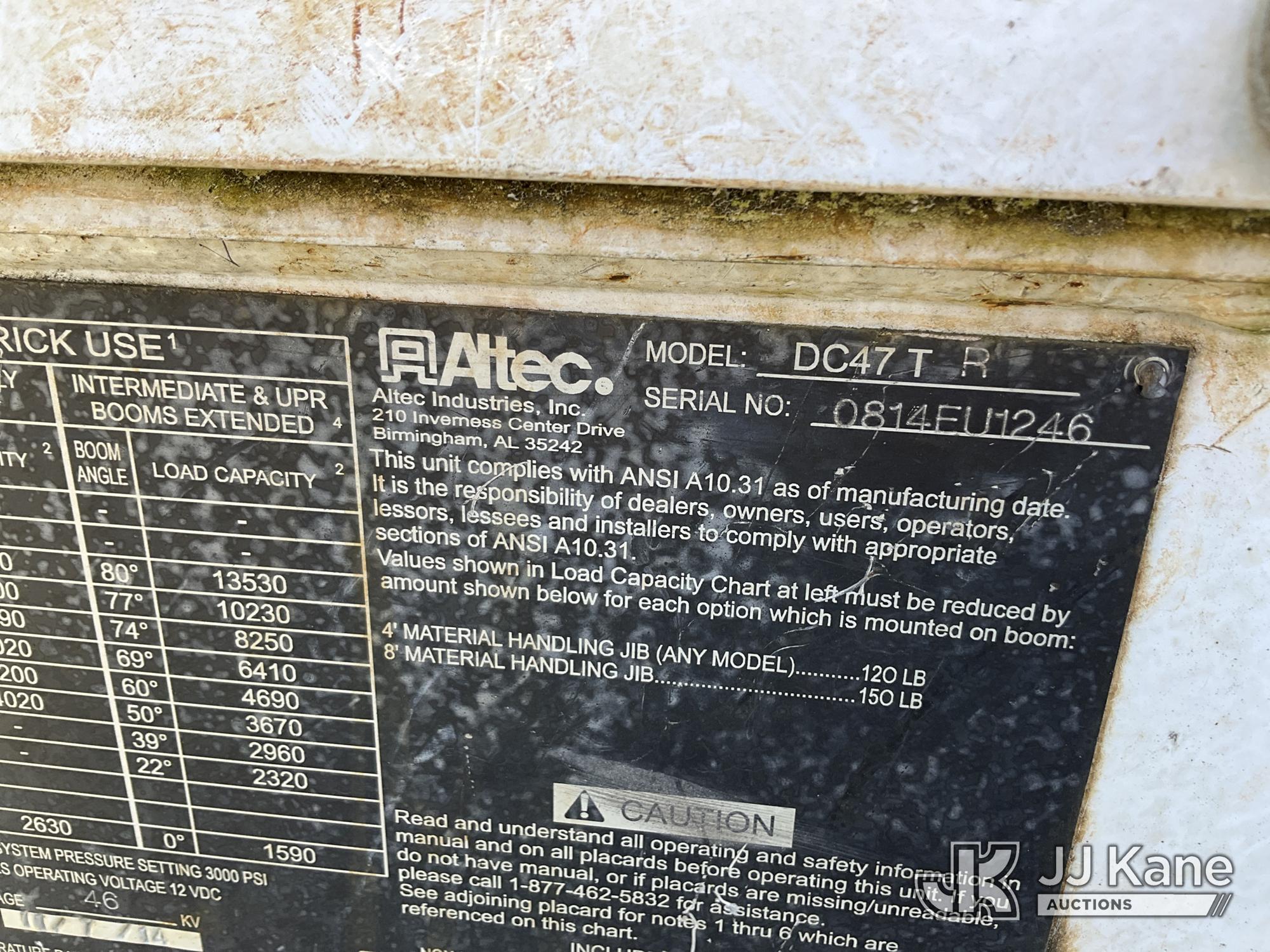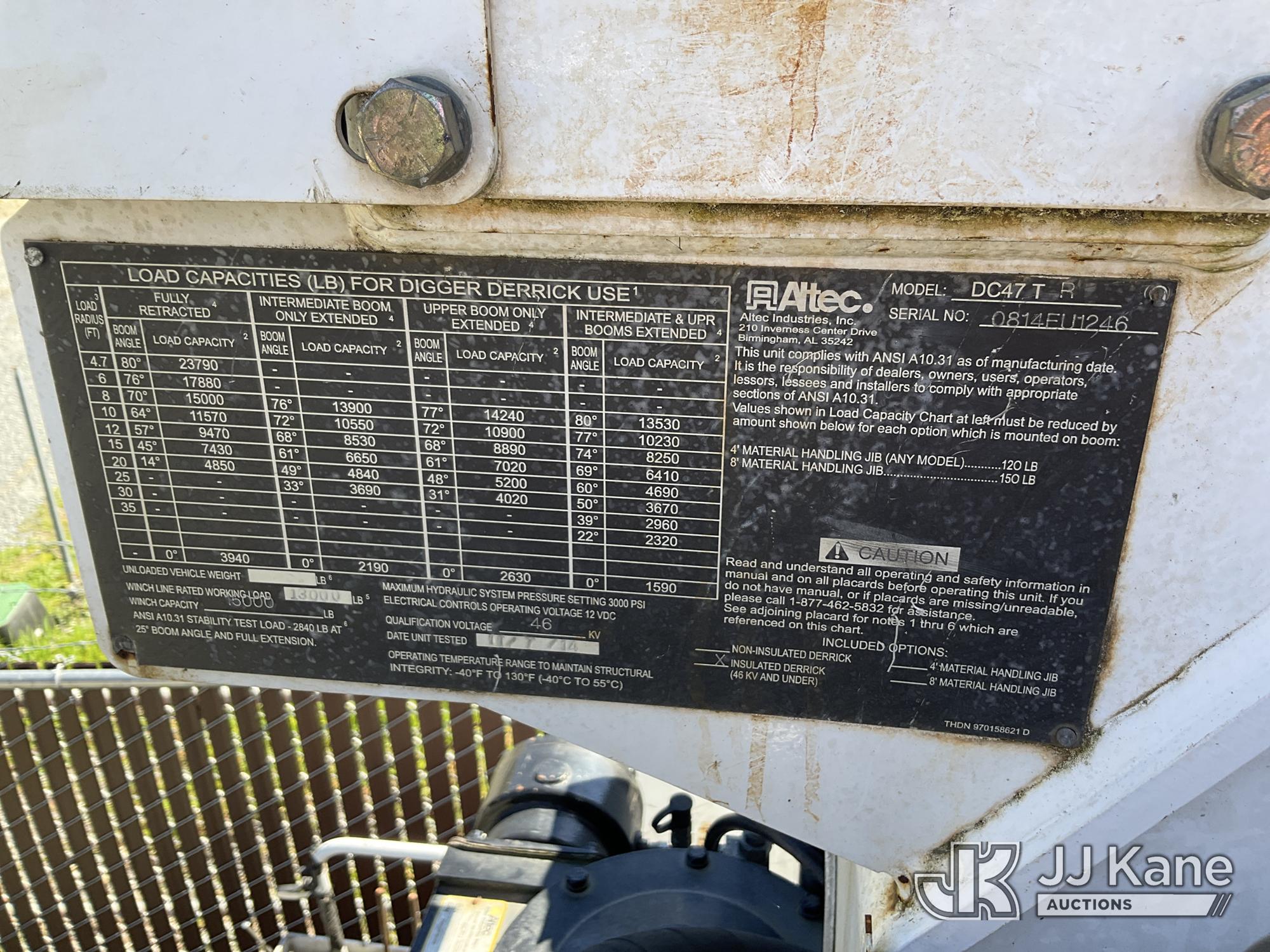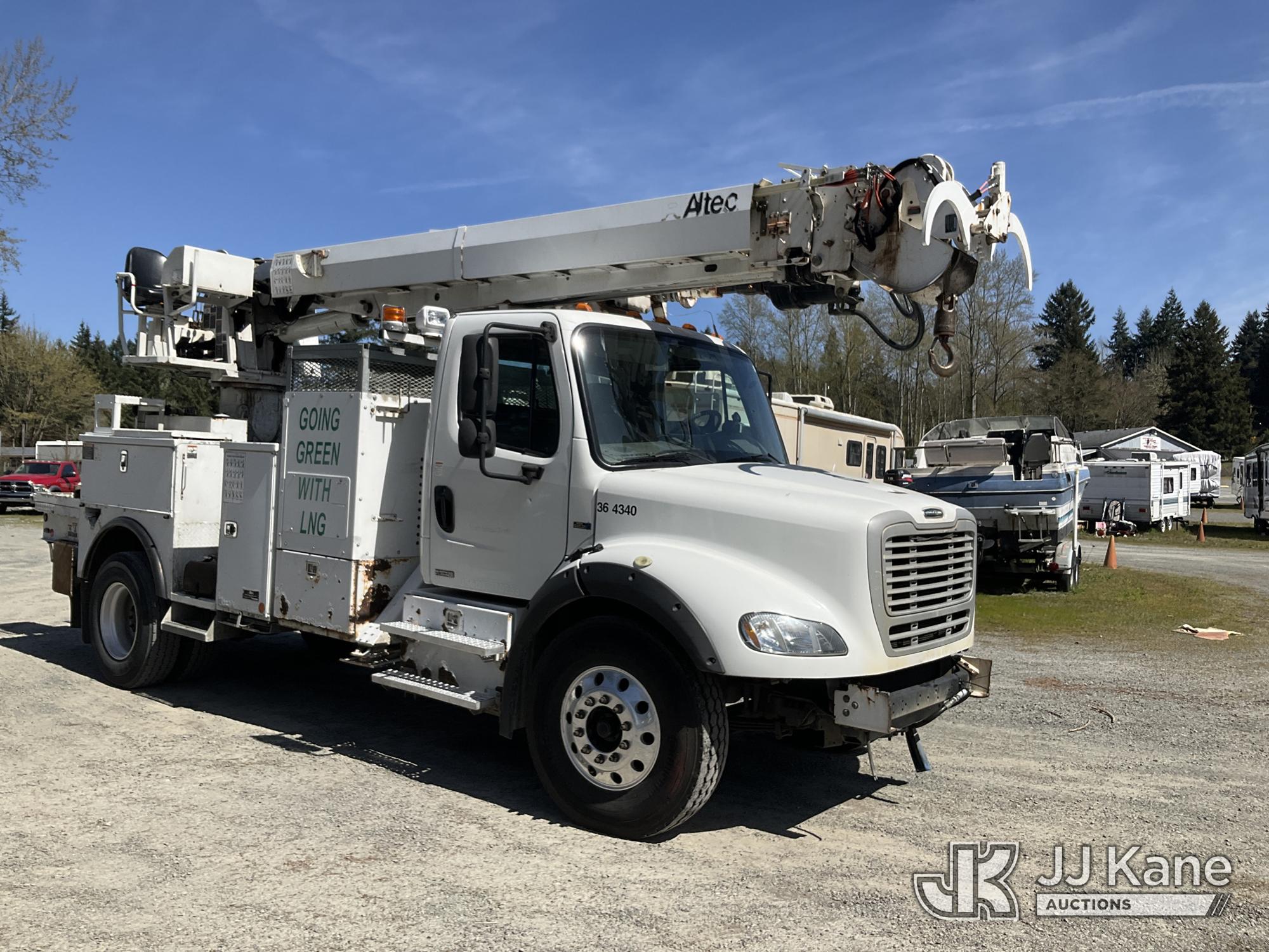 Altec DC47-TR, 23,790 Lb Digger Derrick s/n 0814FU1246, with 47ft sheave height, 2spd digger, pole guides, heel winch & riding console, rear mounted on 2015 Freightliner M2 112 Utility Truck, 8.9L LNG 4X2, Auto, A/C, (11,370 miles) (Not Running, Condition Unknown, No Fuel) This is a Titled Item*