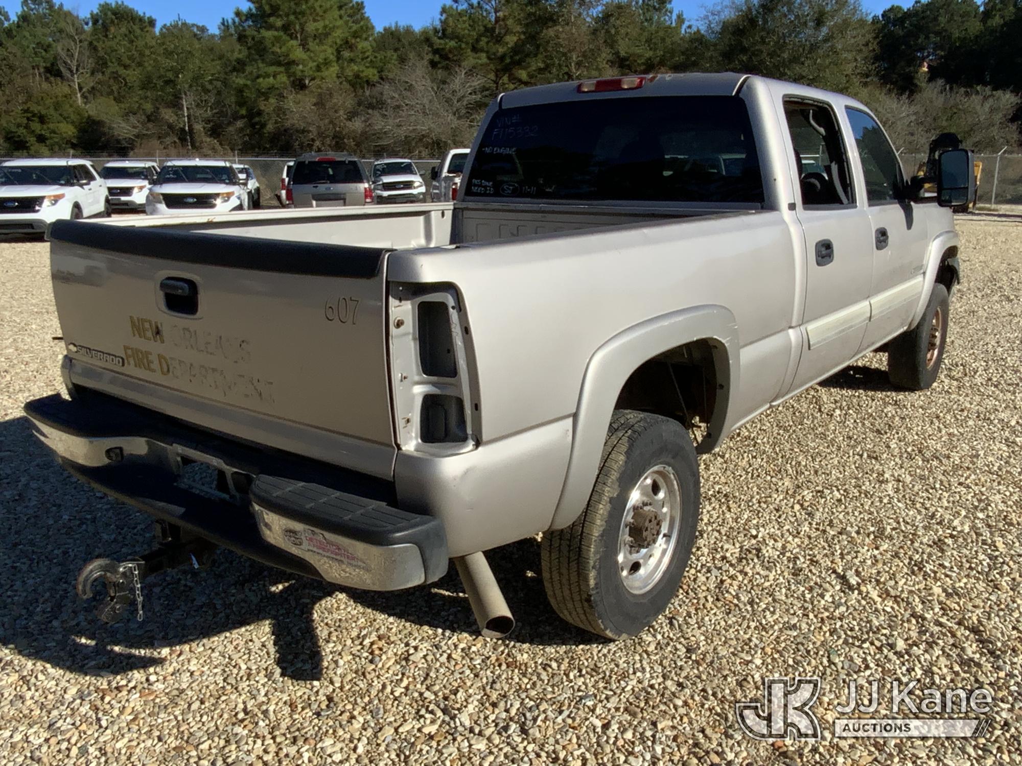 2006 Chevrolet Silverado 2500HD Crew-Cab Pickup Truck, 6.0L V8 OHV 16V gas, RWD, Auto, A/C, True Mileage Unknown (Not Running, Condition Unknown) (Missing Engine & Transmission, Missing Headlights & Tail Lights, Passenger Side Rear Window Broken) This is a Titled Item*
