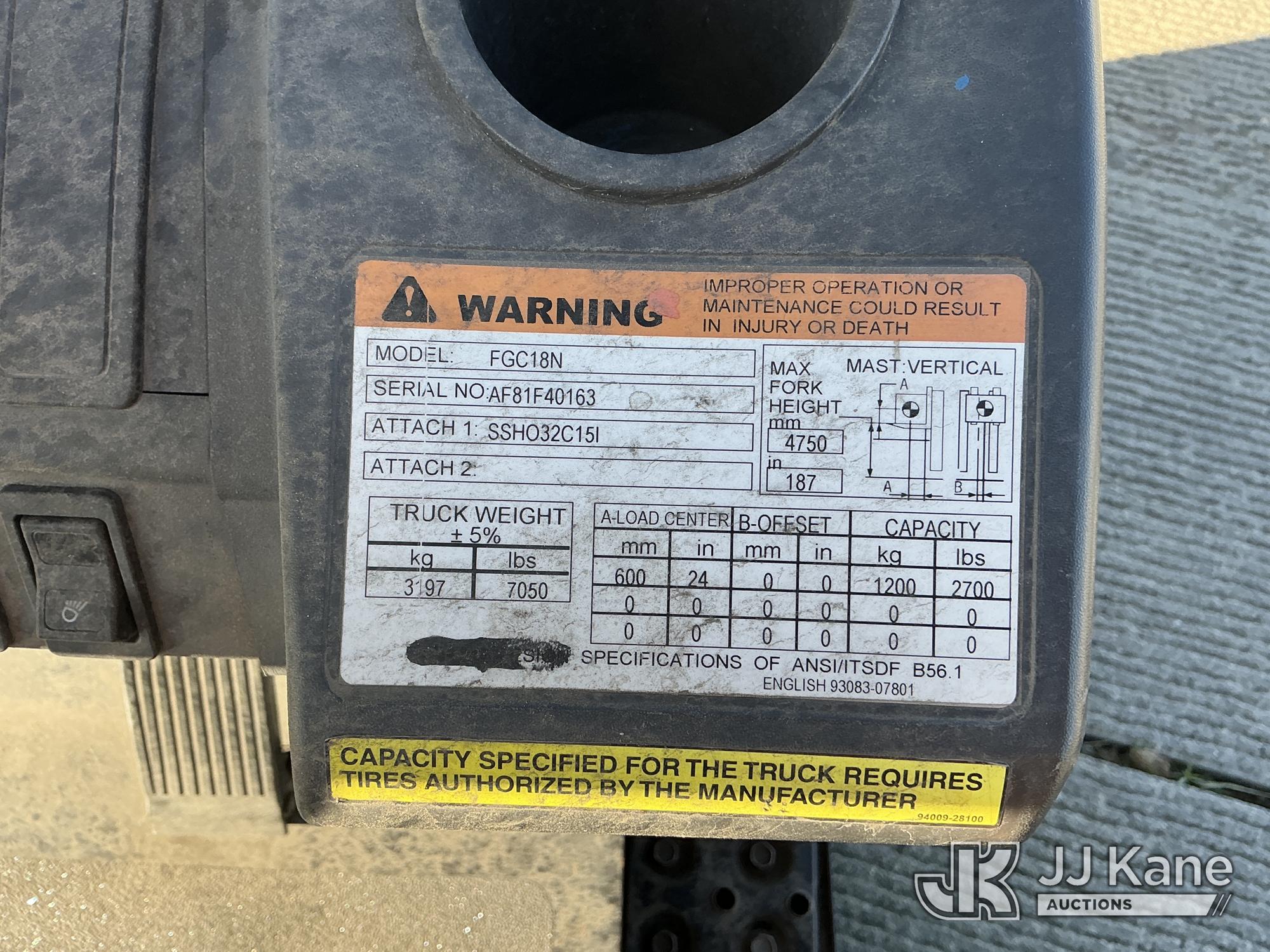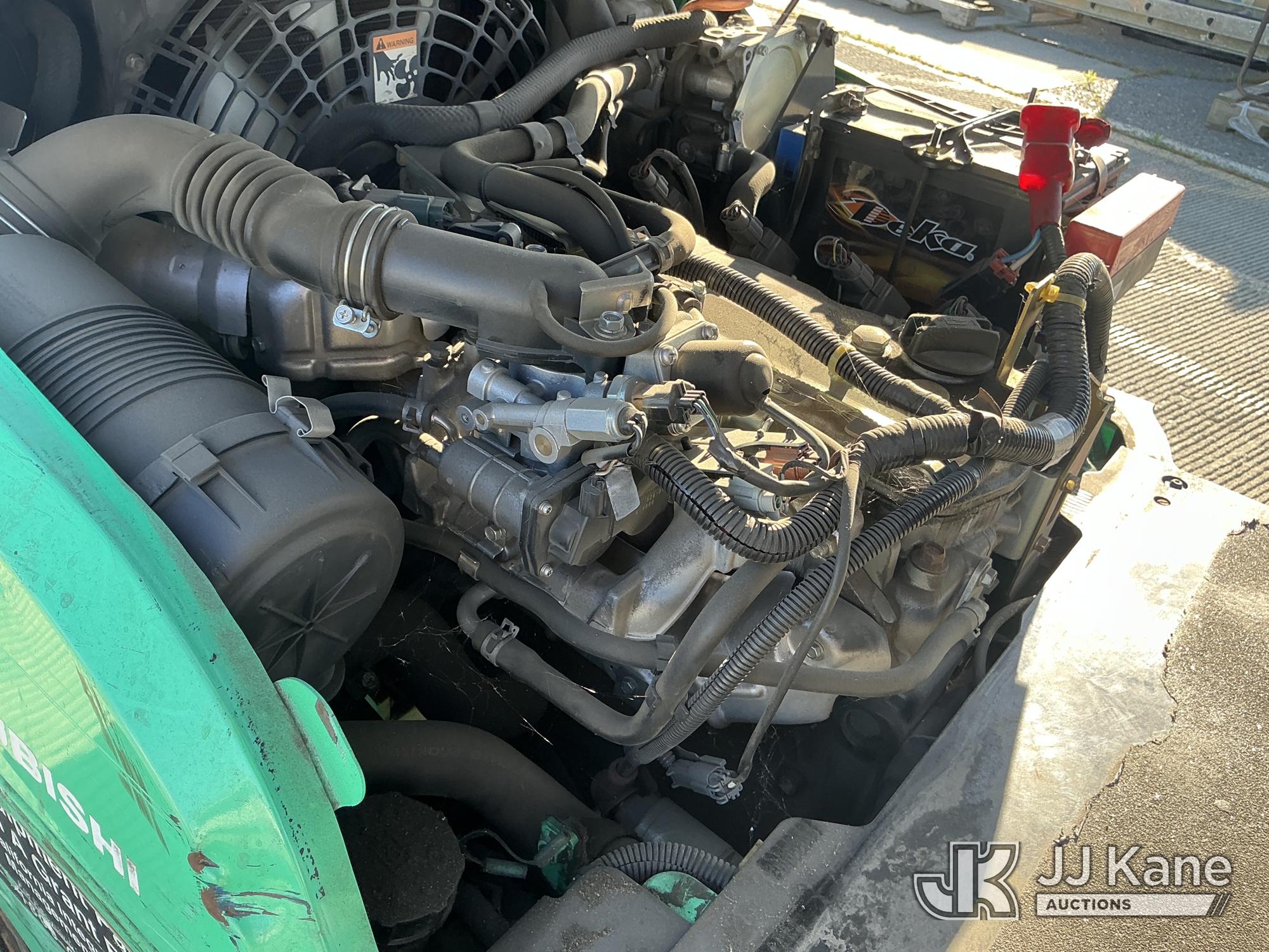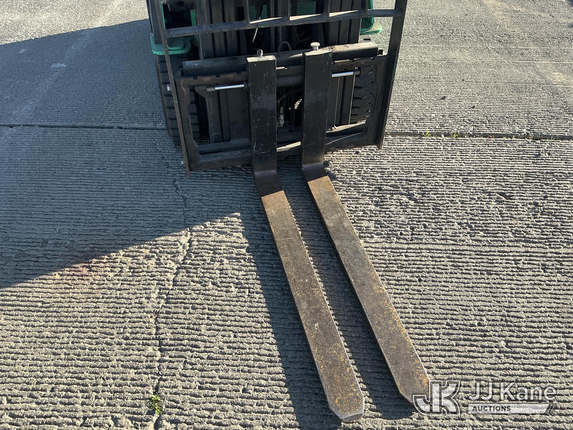 2014 Mitsubishi FGC18N Solid Tired Forklift, s/n AF81F40163, 3-cyl LPG, Shuttle, with 2700lb Capacity, 4ftForks, 187in 3 Stage Mast, Side Shift & ROPS, (Runs & Operates, Needs Propane Tank ) (Reads 1,464 hours)*