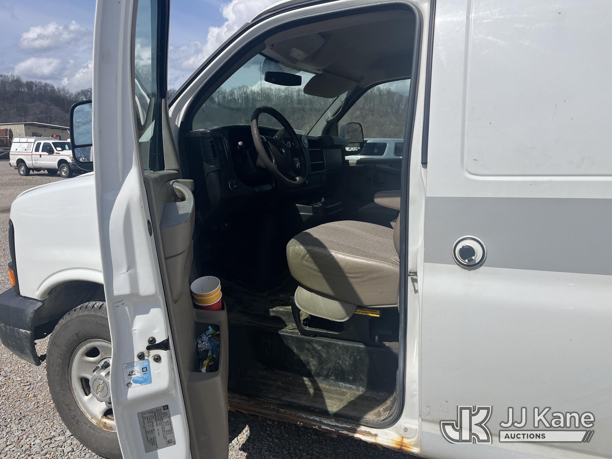2012 Chevrolet Express G2500 Cargo Van, 4.8L V8 FFV, RWD, Automatic, A/C, (148,205 miles) (Runs & Moves, Check Engine Light On, Low Fuel, Chipped Windshield, Rocker & Corner Panel & Door Rust, Seller States: Frame Rot/Rust) This is a Titled Item*
