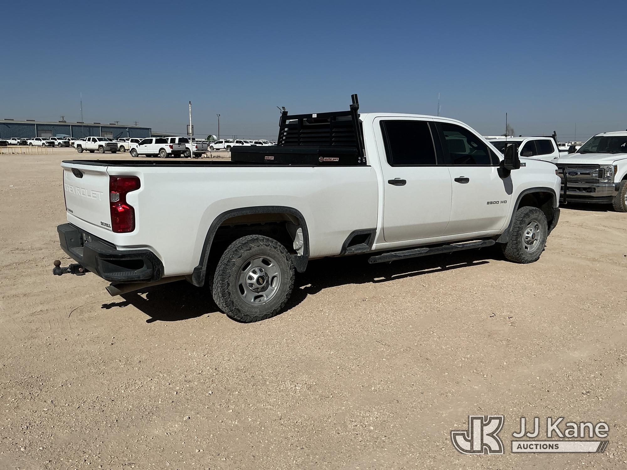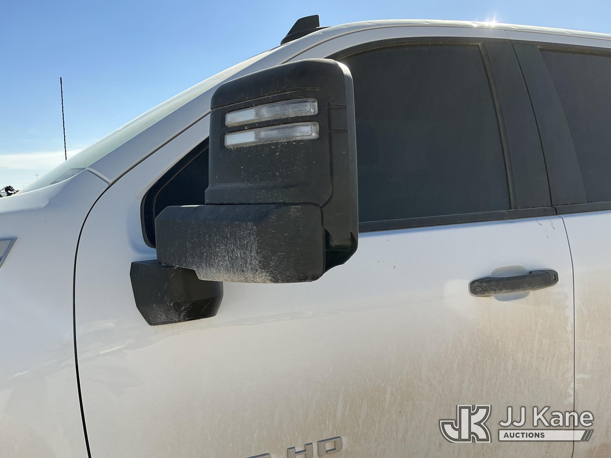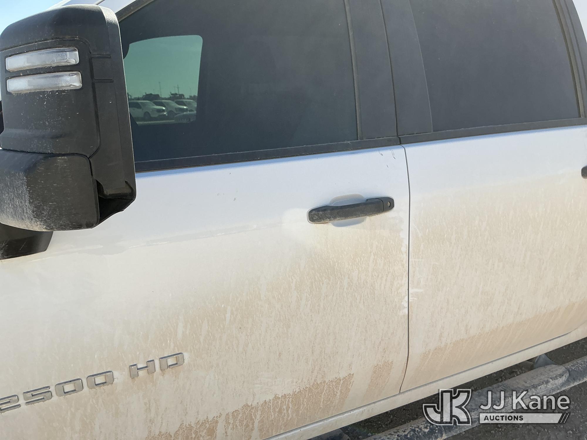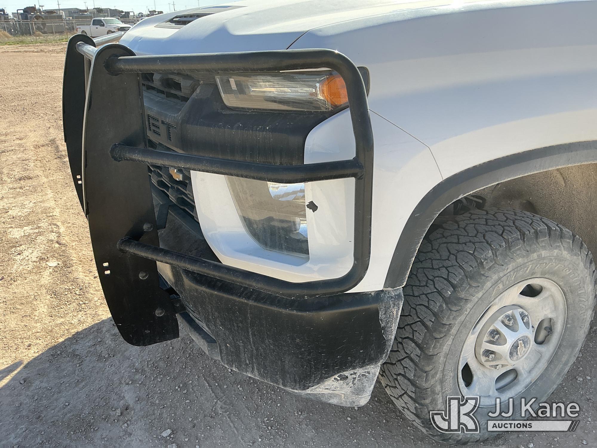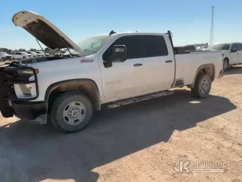 2021 Chevrolet Silverado 2500HD Crew-Cab Pickup Truck, 8-cyl gas, 4WD, 6-Speed Automatic, A/C, with heavy duty front brush guard, headache rack, power inverter, toolbox, tow hitch, (100,845 miles) (Runs & Moves)(T/C Light On, Hail, Paint & Body Damage ) (Reads 5,098 hours) This is a Titled Item*