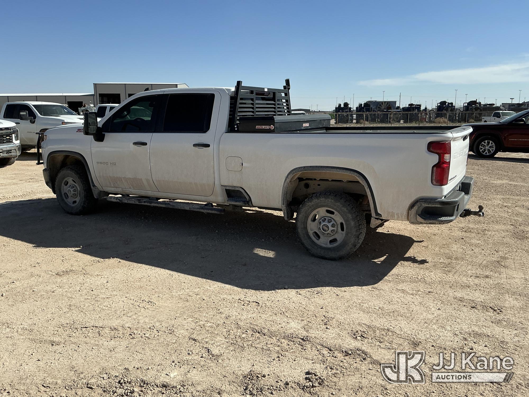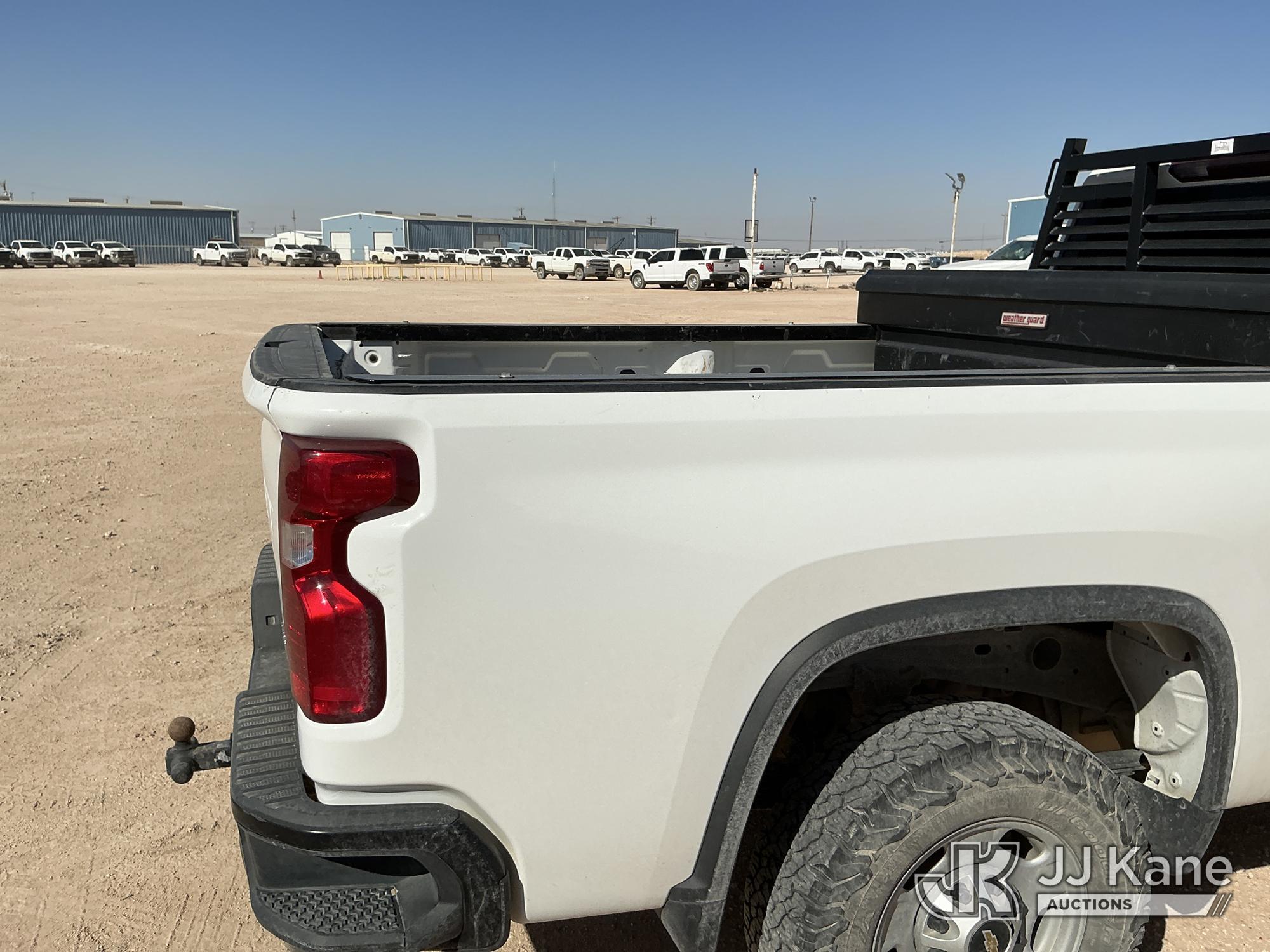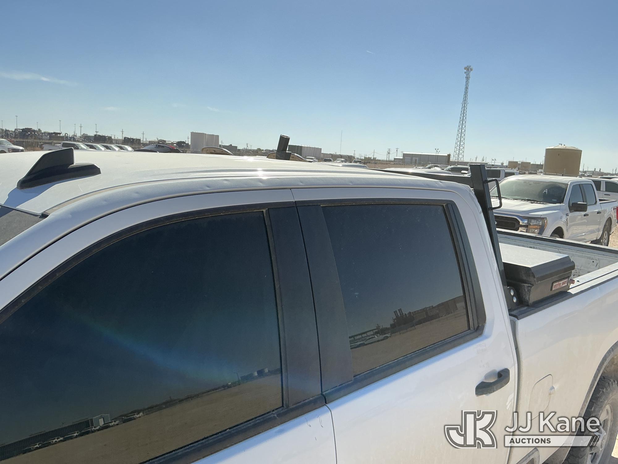 2021 Chevrolet Silverado 2500HD Crew-Cab Pickup Truck, 8-cyl gas, 4WD, 6-Speed Automatic, A/C, with heavy duty front brush guard, headache rack, power inverter, toolbox, tow hitch, (100,845 miles) (Runs & Moves)(T/C Light On, Hail, Paint & Body Damage ) (Reads 5,098 hours) This is a Titled Item*