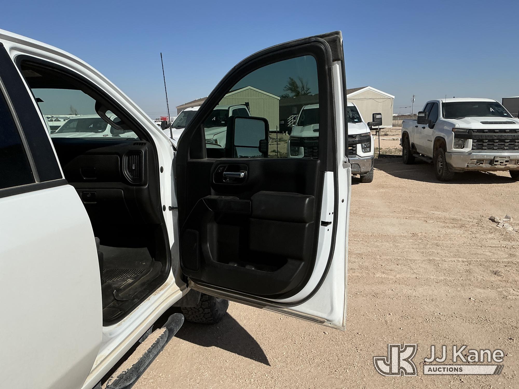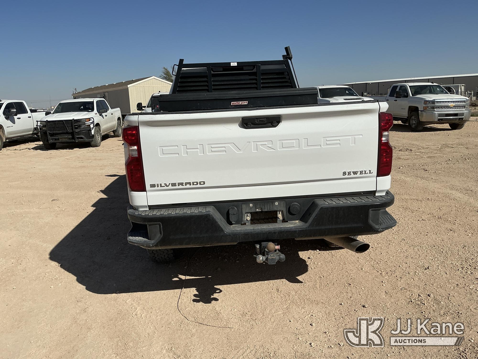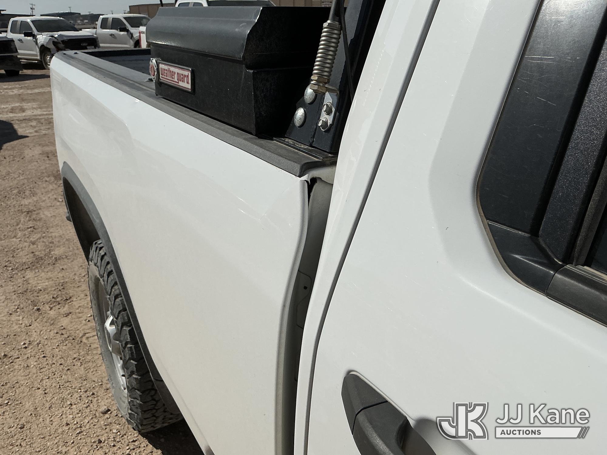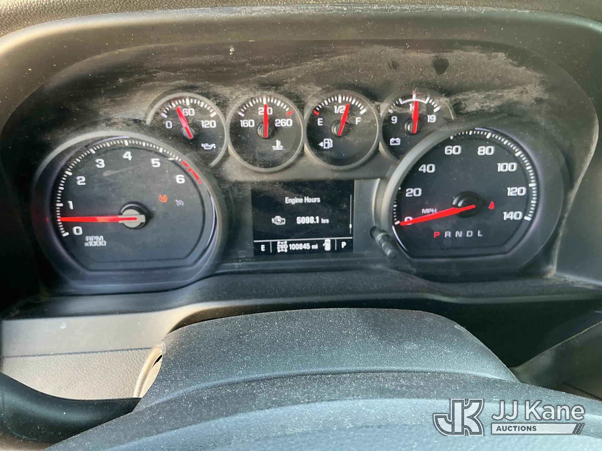 2021 Chevrolet Silverado 2500HD Crew-Cab Pickup Truck, 8-cyl gas, 4WD, 6-Speed Automatic, A/C, with heavy duty front brush guard, headache rack, power inverter, toolbox, tow hitch, (100,845 miles) (Runs & Moves)(T/C Light On, Hail, Paint & Body Damage ) (Reads 5,098 hours) This is a Titled Item*