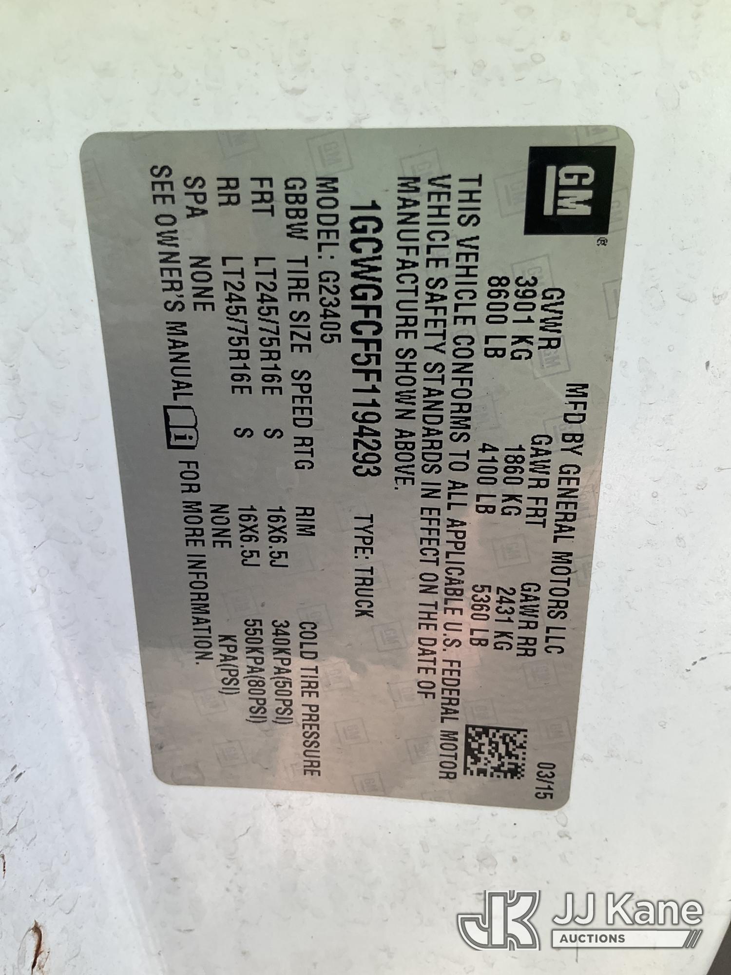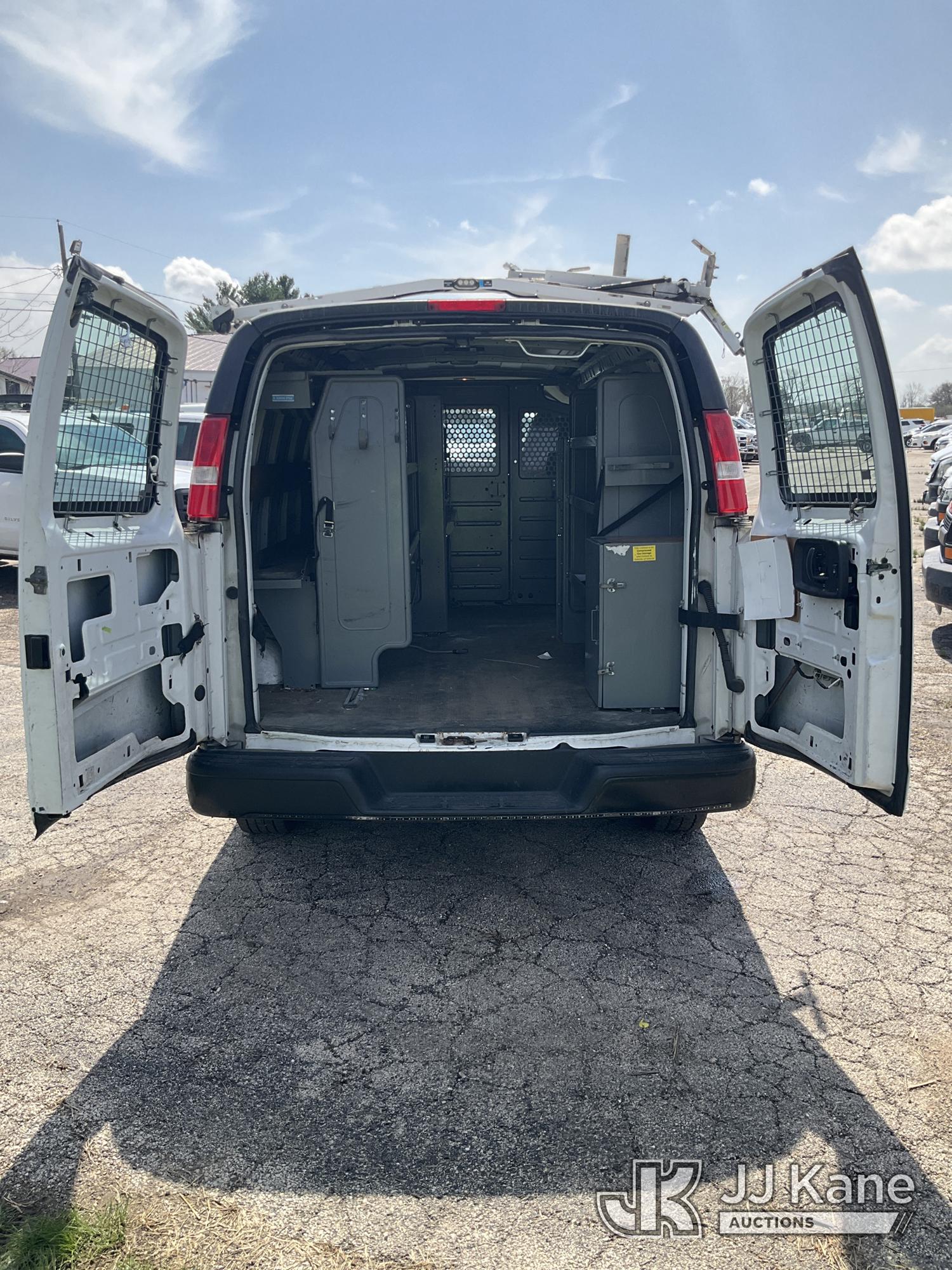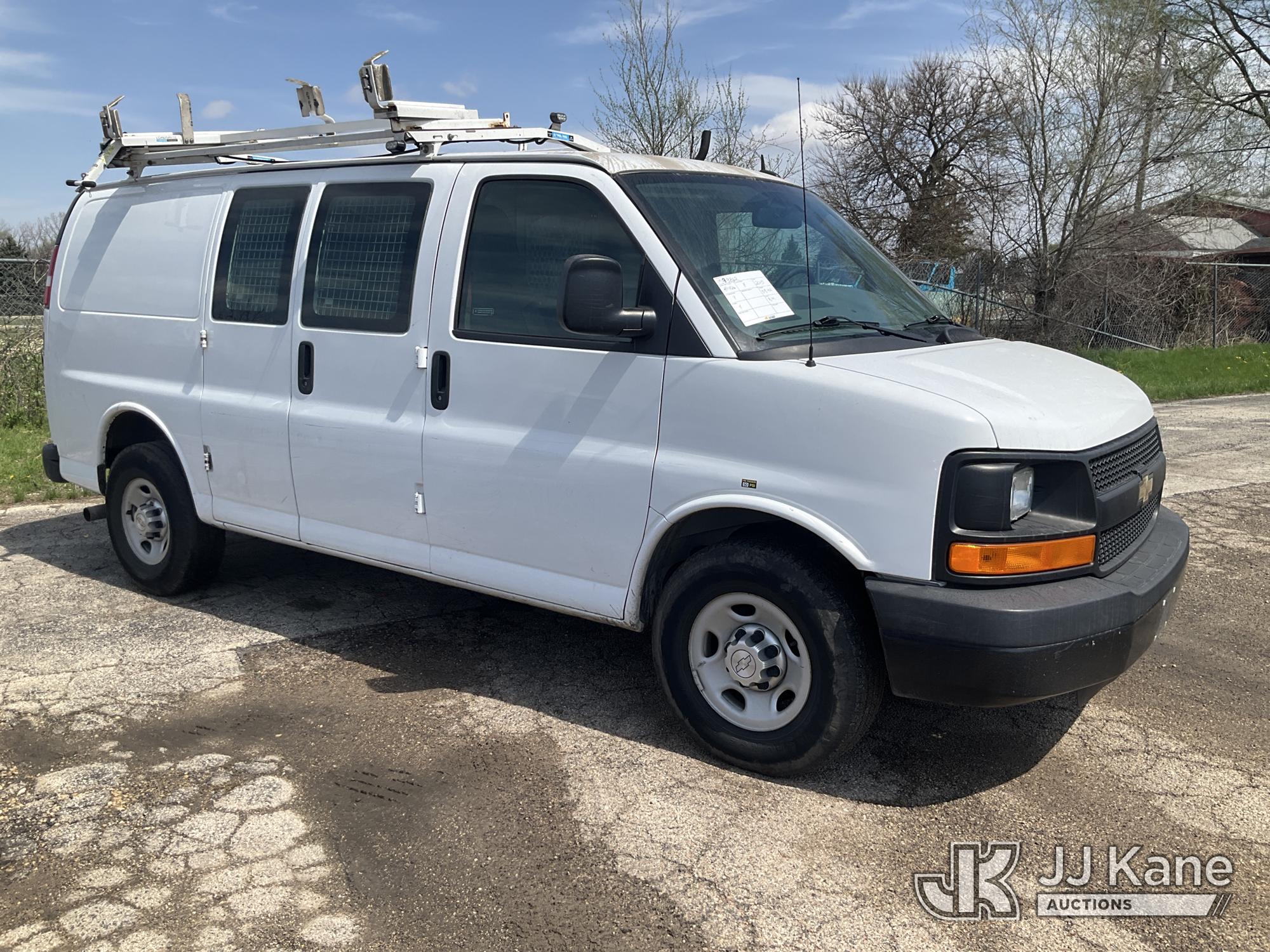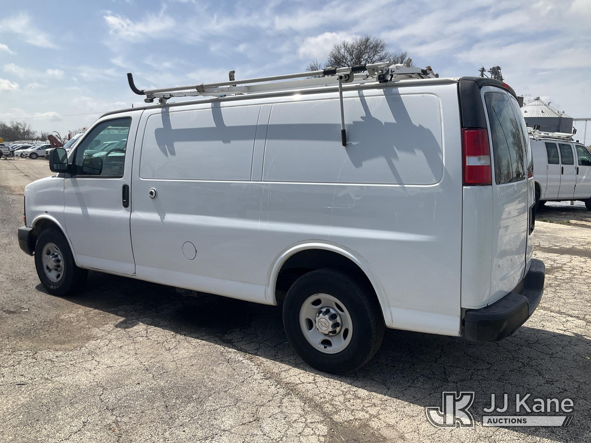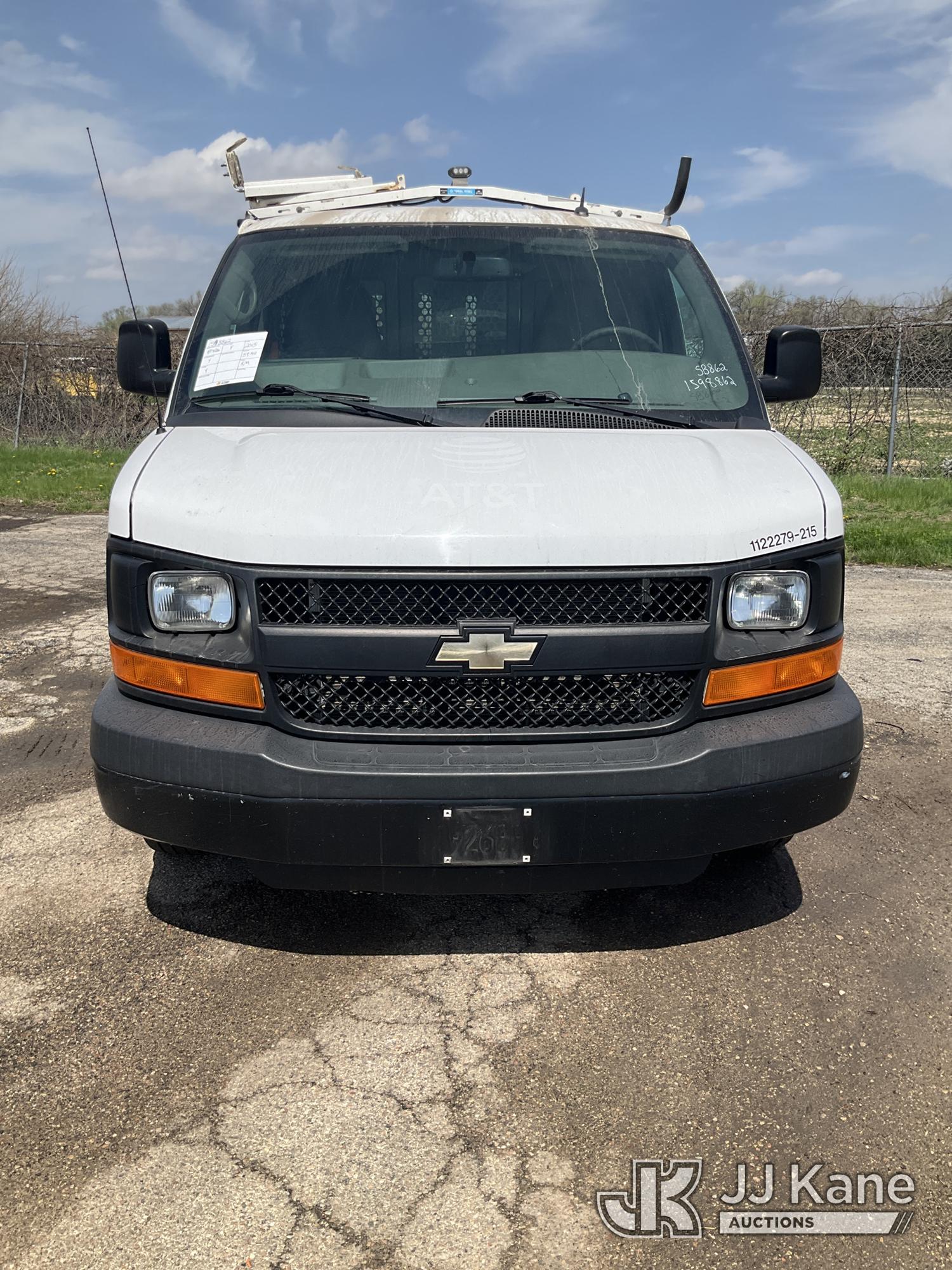 2015 Chevrolet Express G2500 Cargo Van, 8-cyl gas, RWD, Auto, A/C, with ladder rack, (59,143 miles) (Runs & Moves) (Exterior Defects) (Reads 3,301 hours) This is a Titled Item*