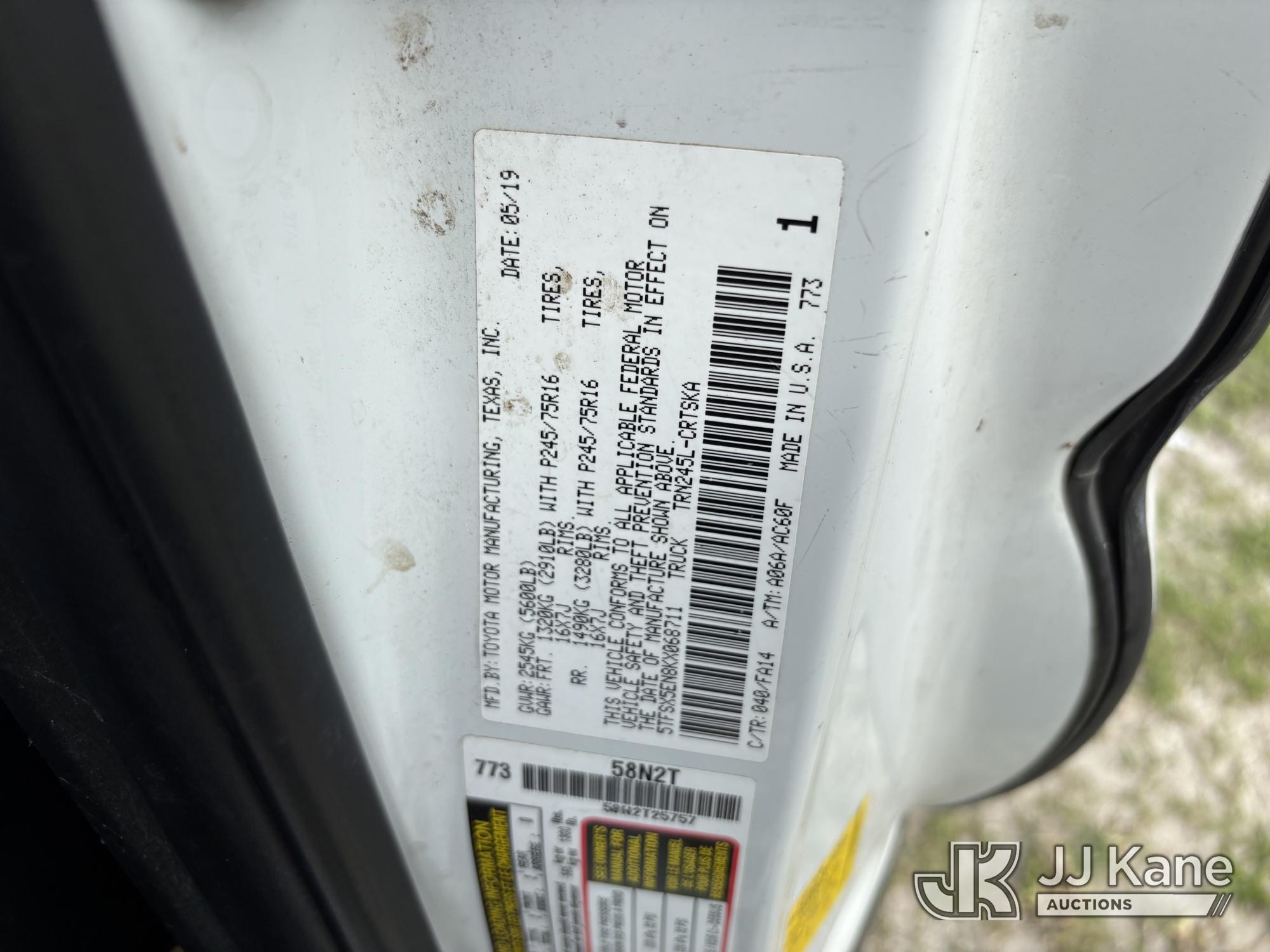 2019 Toyota Tacoma 4x4 Extended-Cab Pickup Truck, 2.7L L4 DOHC 16V gas, Auto, A/C, (127,193 miles) (Runs & Moves) (Service Light On, Body/Paint Damage, Tailgate Damaged) (FL Residents Purchasing Titled Items – tax, title & registration fees will be collected at the maximum rate of $400.00 under 25,999 and $800.00 for Over 26,000 and $250.00 trailers – Proof of insurance is mandatory; Out of State Residents Purchasing Title Items – tax will be collected based upon your state rate.) This is a Titled Item*