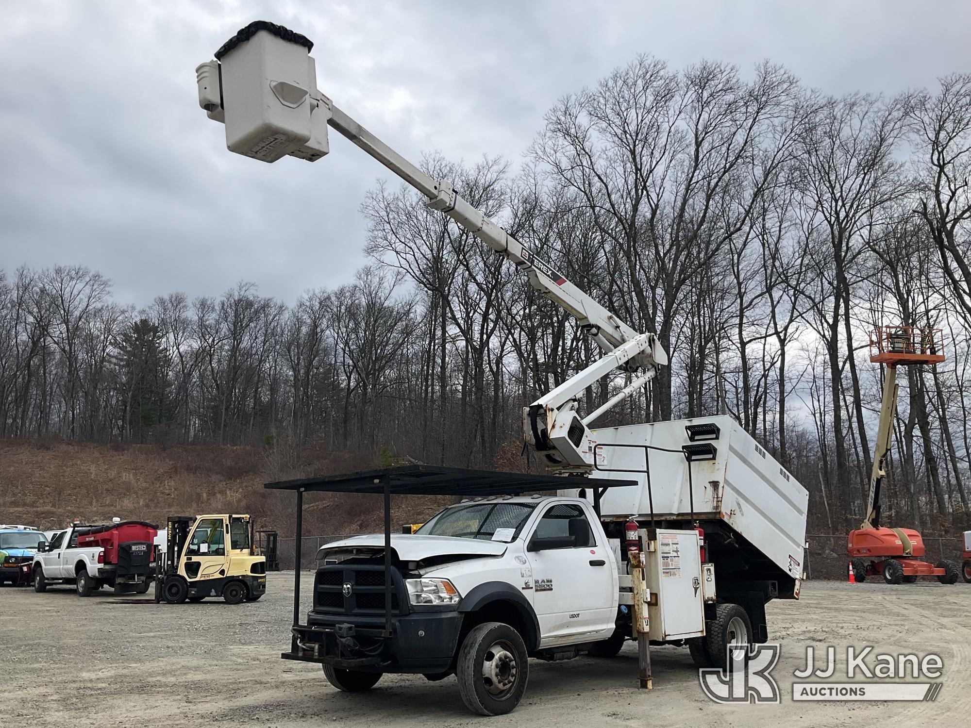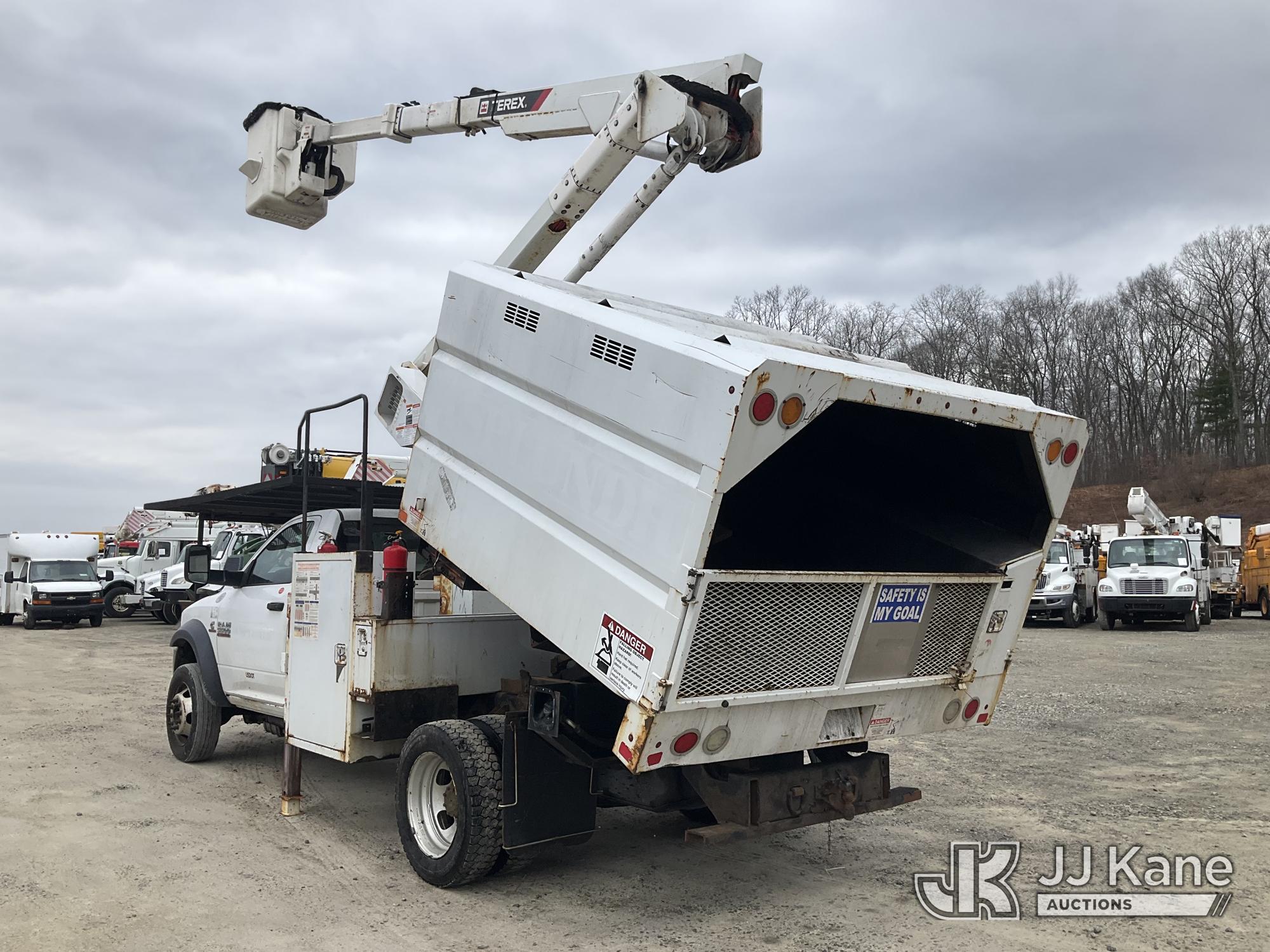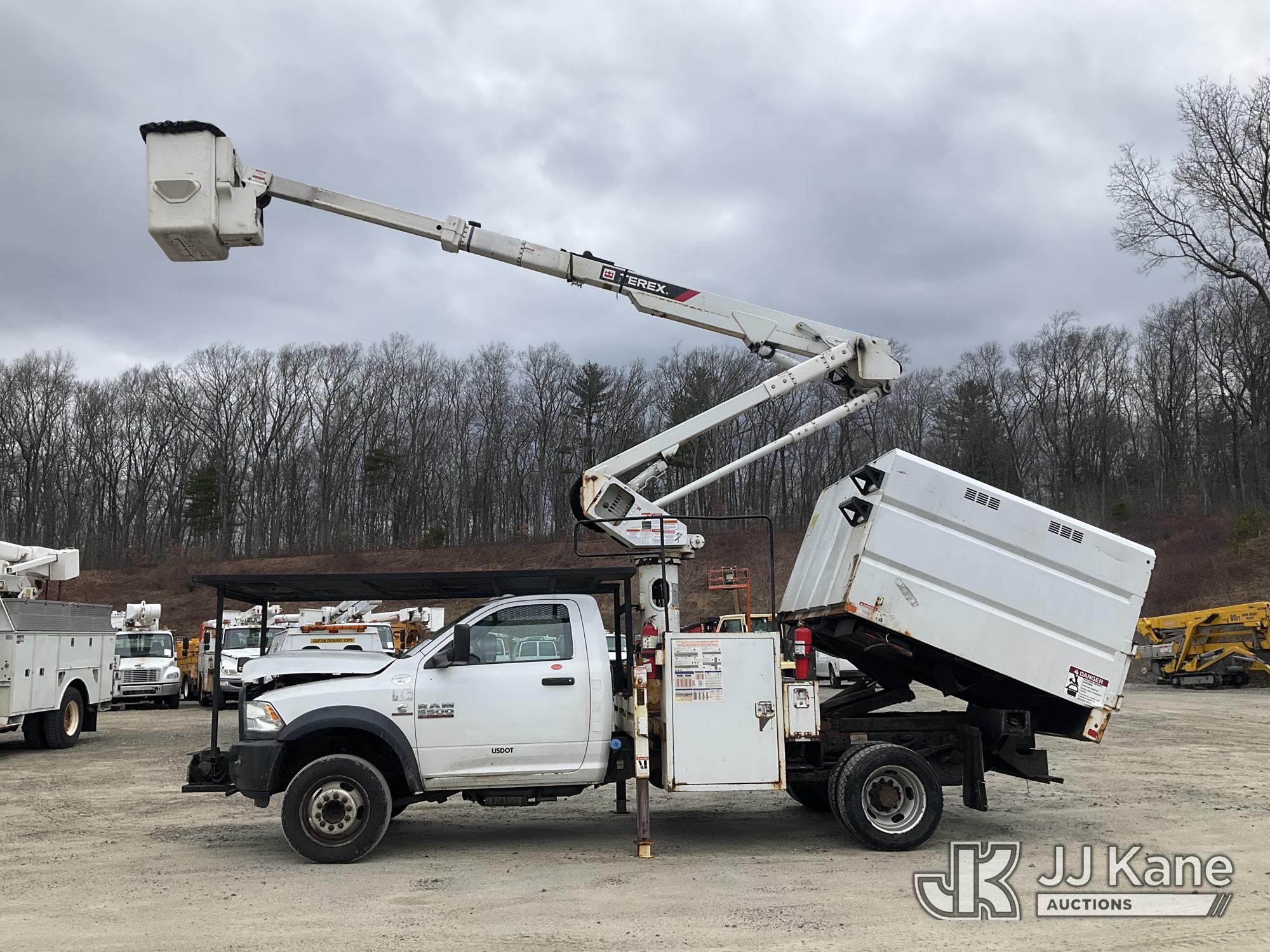 Terex LT40, 45 ft, Articulating & Telescopic Bucket Truck s/n 2171262450, with single-man bucket, mounted behind cab on 2018 RAM 5500 Regular Cab 4WD DRW Cummins 6.7L 4WD, diesel, Auto, A/C, (98,728 miles) (Runs, Moves & Upper Operates) (Multiple Lights On Dash, Battery/Charging System Issues, Seller States: Electrical Codes, Oil Pan Needs Repair) (Reads 7,035 hours) This is a Titled Item*