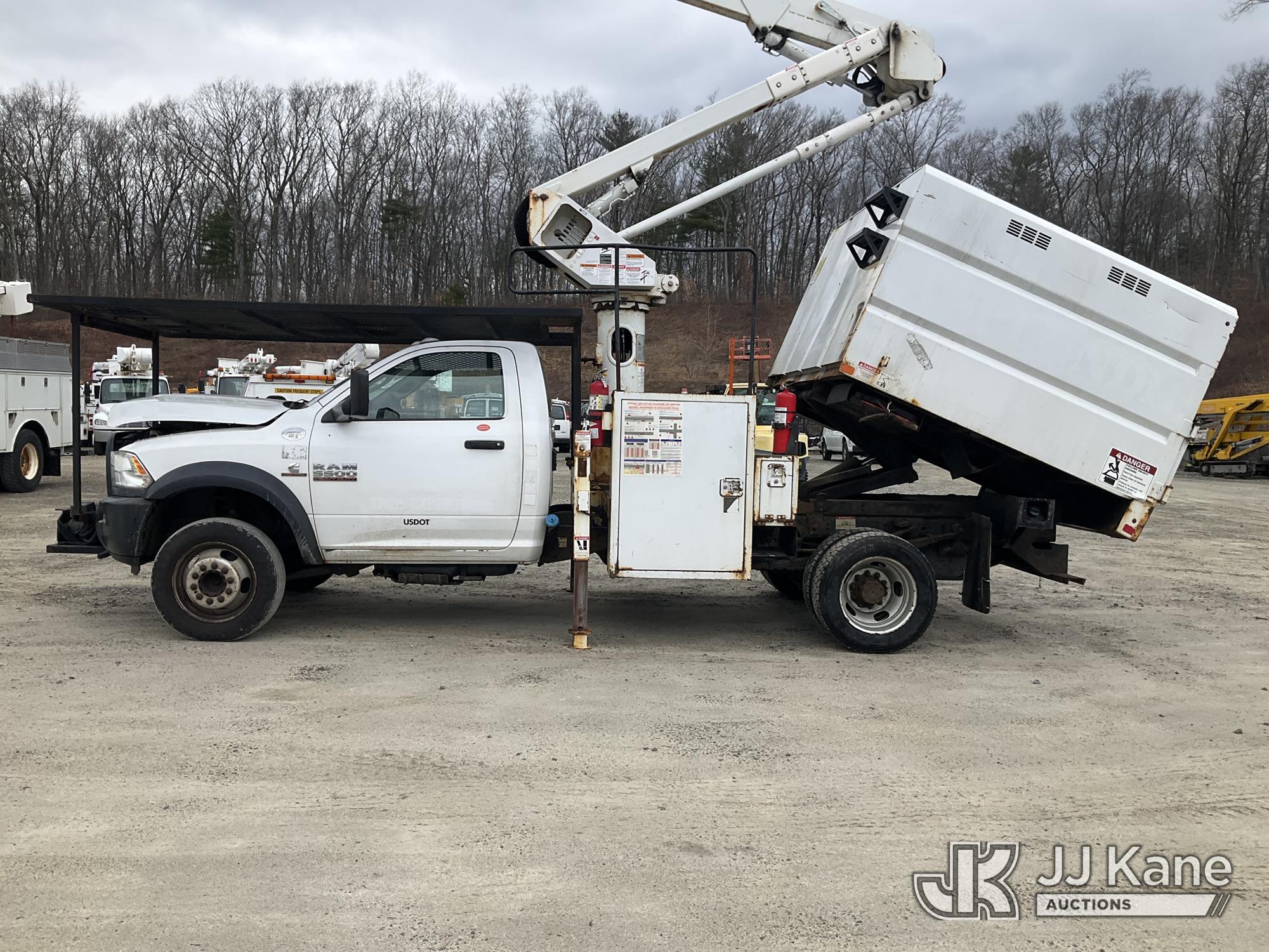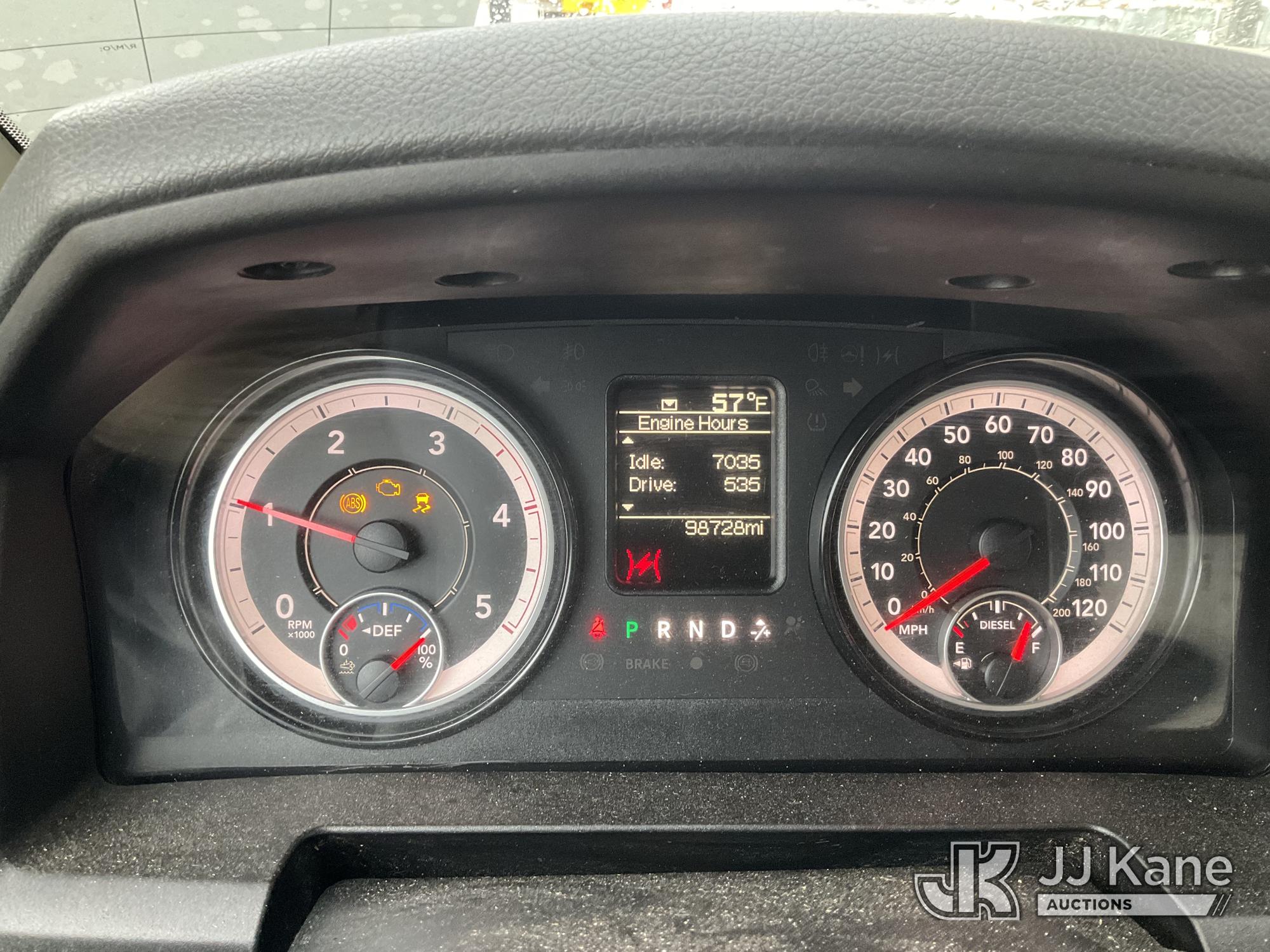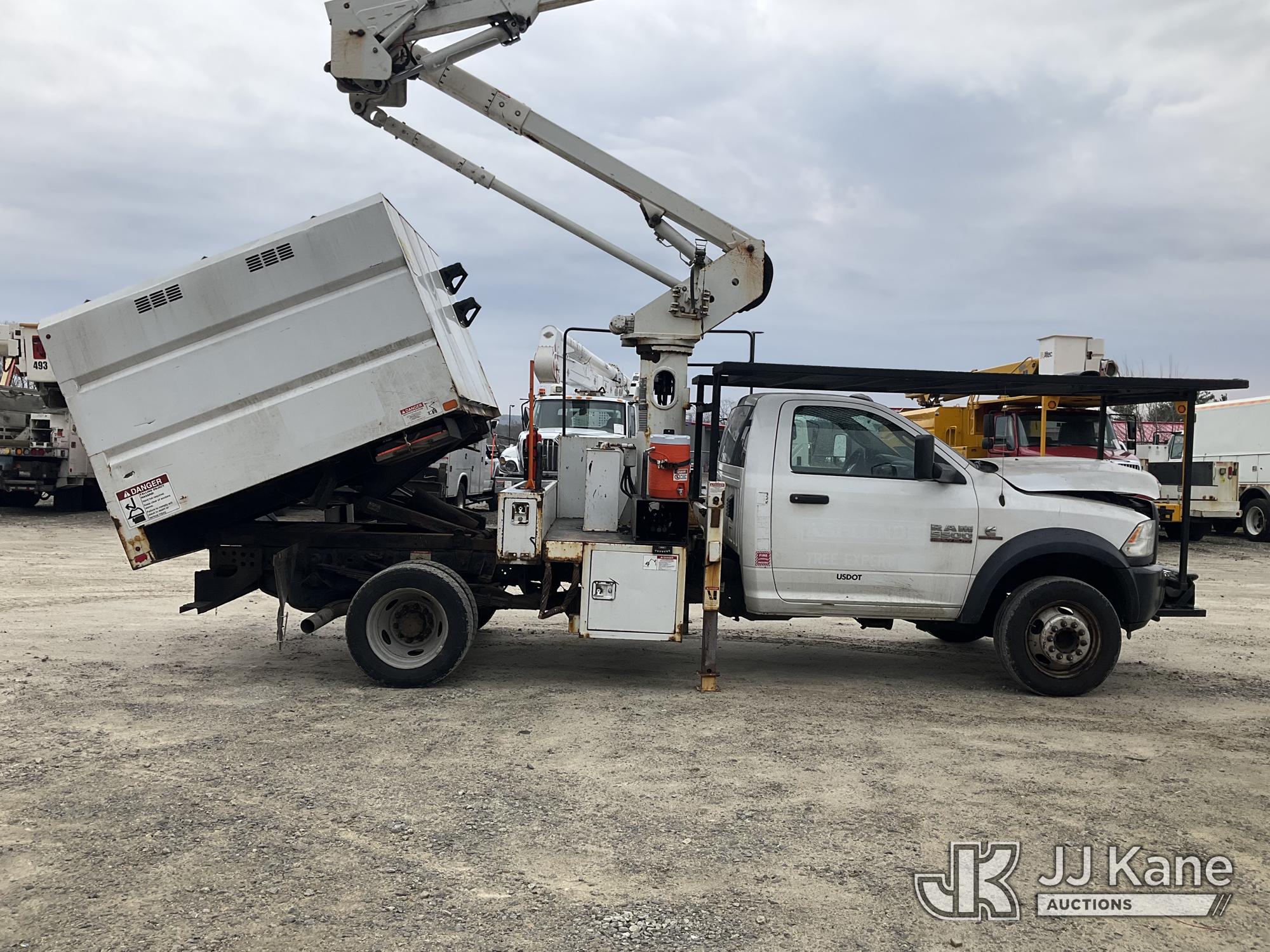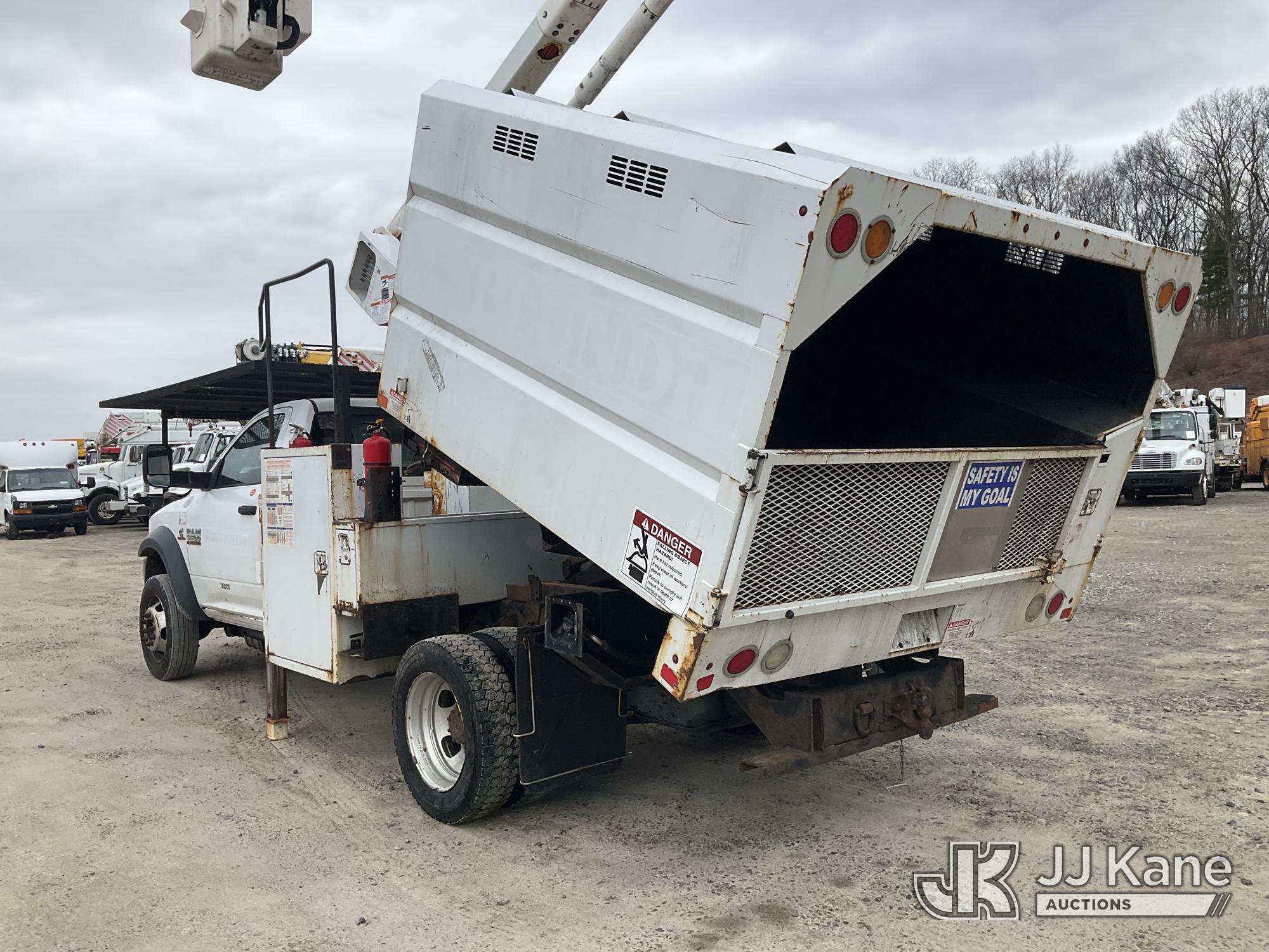 Terex LT40, 45 ft, Articulating & Telescopic Bucket Truck s/n 2171262450, with single-man bucket, mounted behind cab on 2018 RAM 5500 Regular Cab 4WD DRW Cummins 6.7L 4WD, diesel, Auto, A/C, (98,728 miles) (Runs, Moves & Upper Operates) (Multiple Lights On Dash, Battery/Charging System Issues, Seller States: Electrical Codes, Oil Pan Needs Repair) (Reads 7,035 hours) This is a Titled Item*