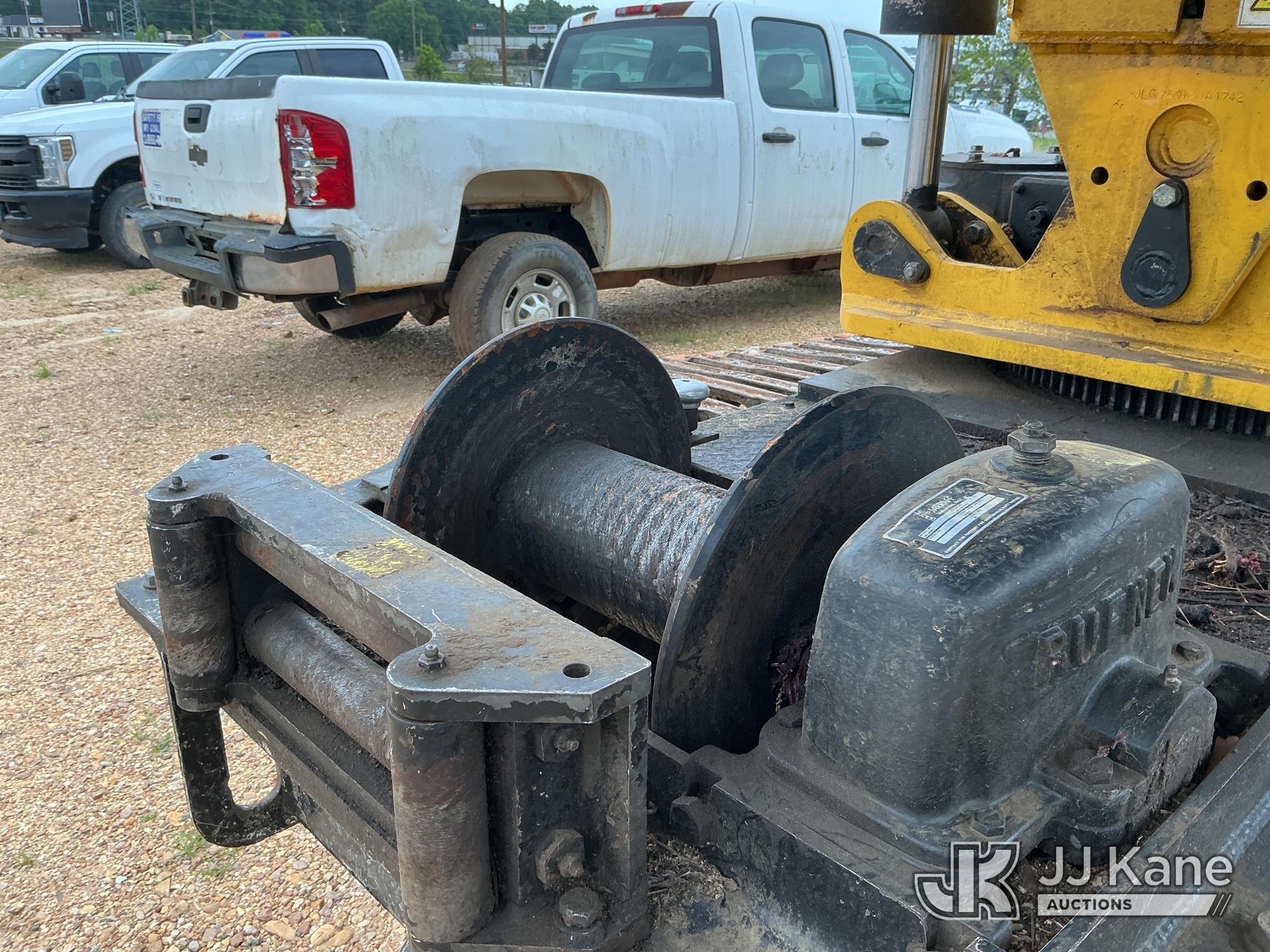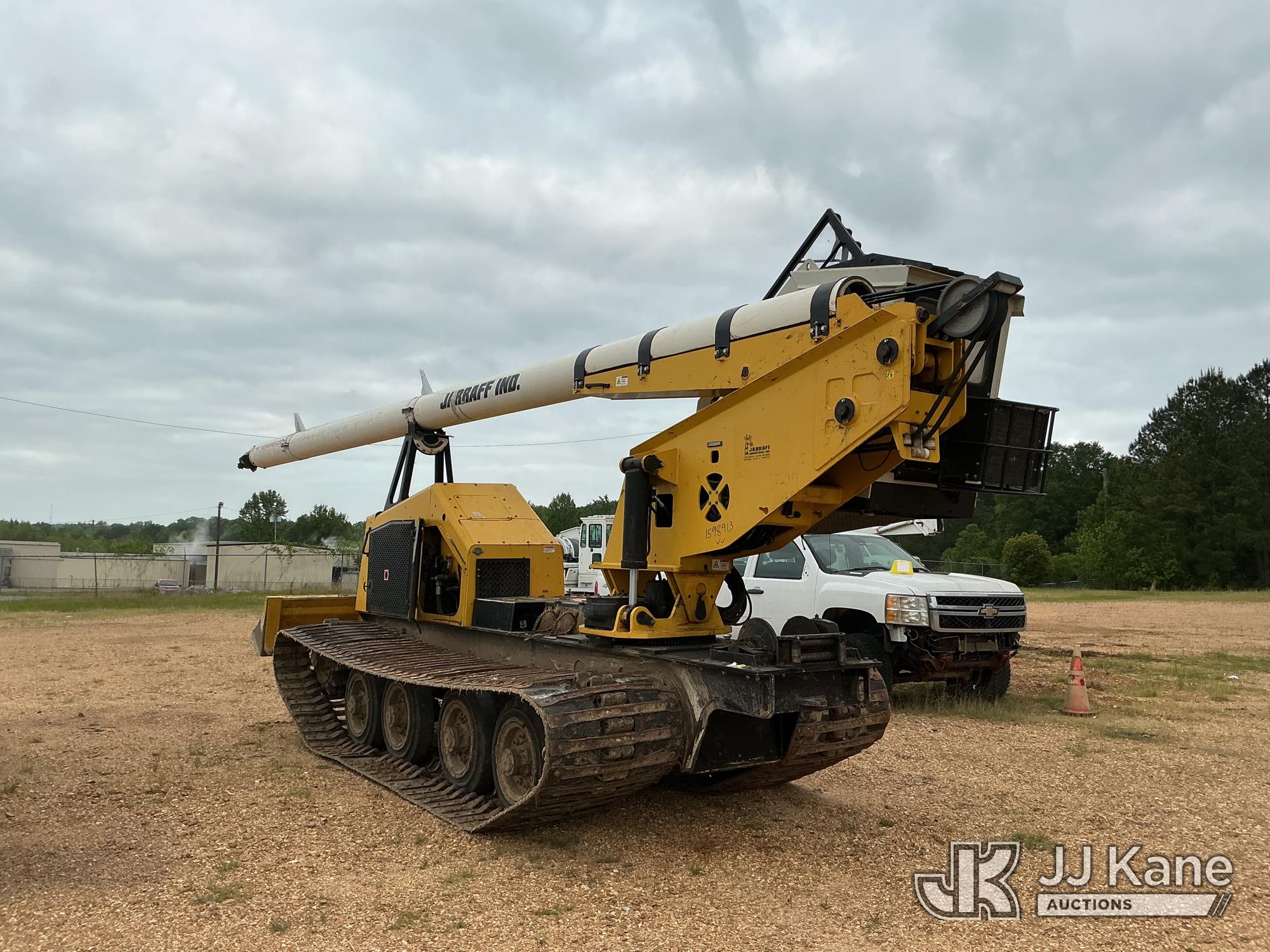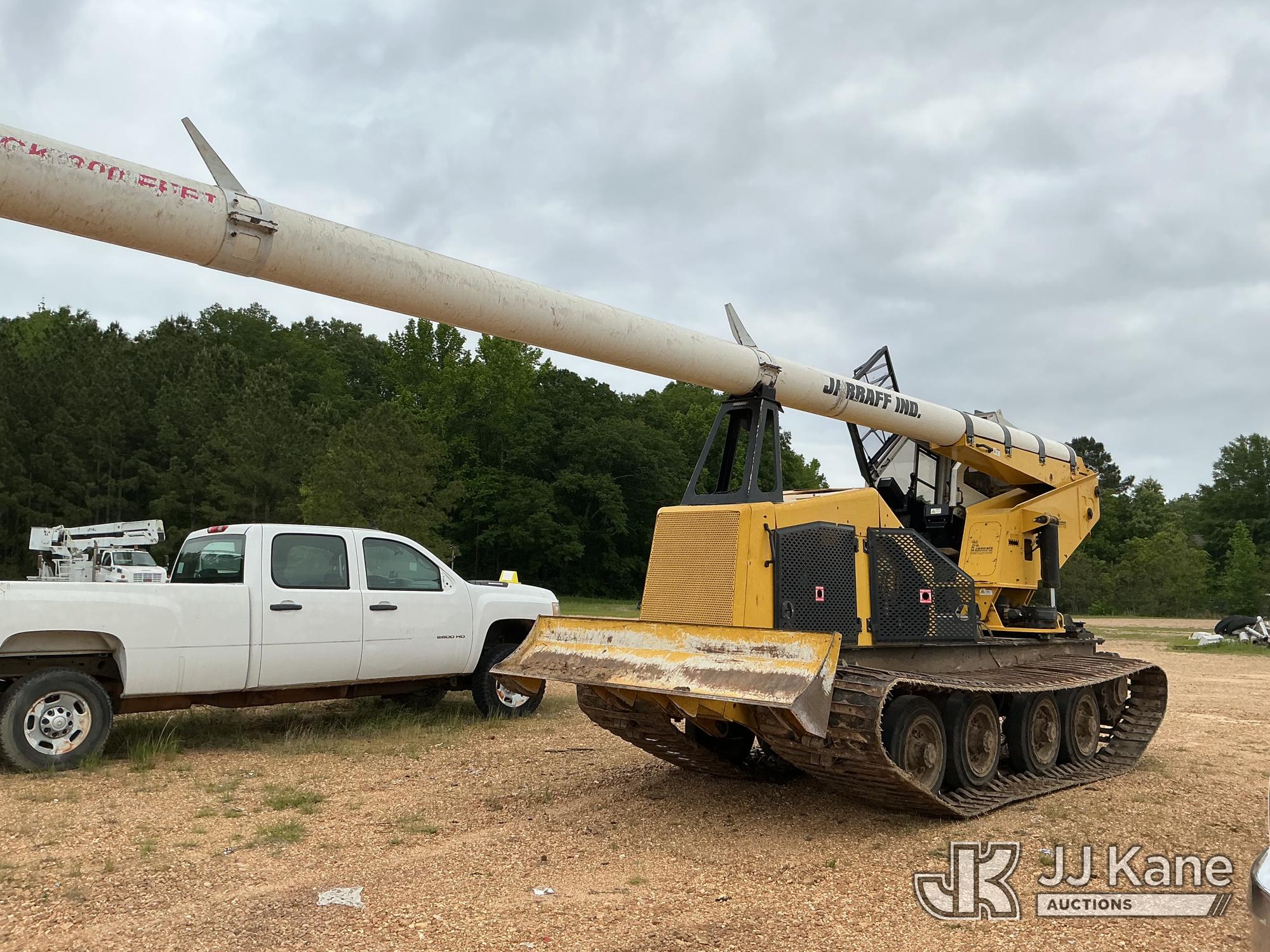 Jarraff 75 ft., Telescopic Insulated Tree Saw mounted on 2020 Jarraff All-Terrain Track Machine, s/n 000JLG750120A1742, Cummins diesel, Hydraulic Drive, A/C, with push blade, rear winch (no winch line) & hyd enclosed tilt cab, (Jump To Start, Runs, Moves, Operator Door Hinge & Door Support Broken, Boom Cylinder Leaks Down, Hyd Leak At Boom Tip, Extension Did Not Operate, Saw Blade Missing) ( Per Seller: Hole In Inner Boom, Need A Belt For The Boom And The Turbo Is Bad) (Reads 4,566 hours)*