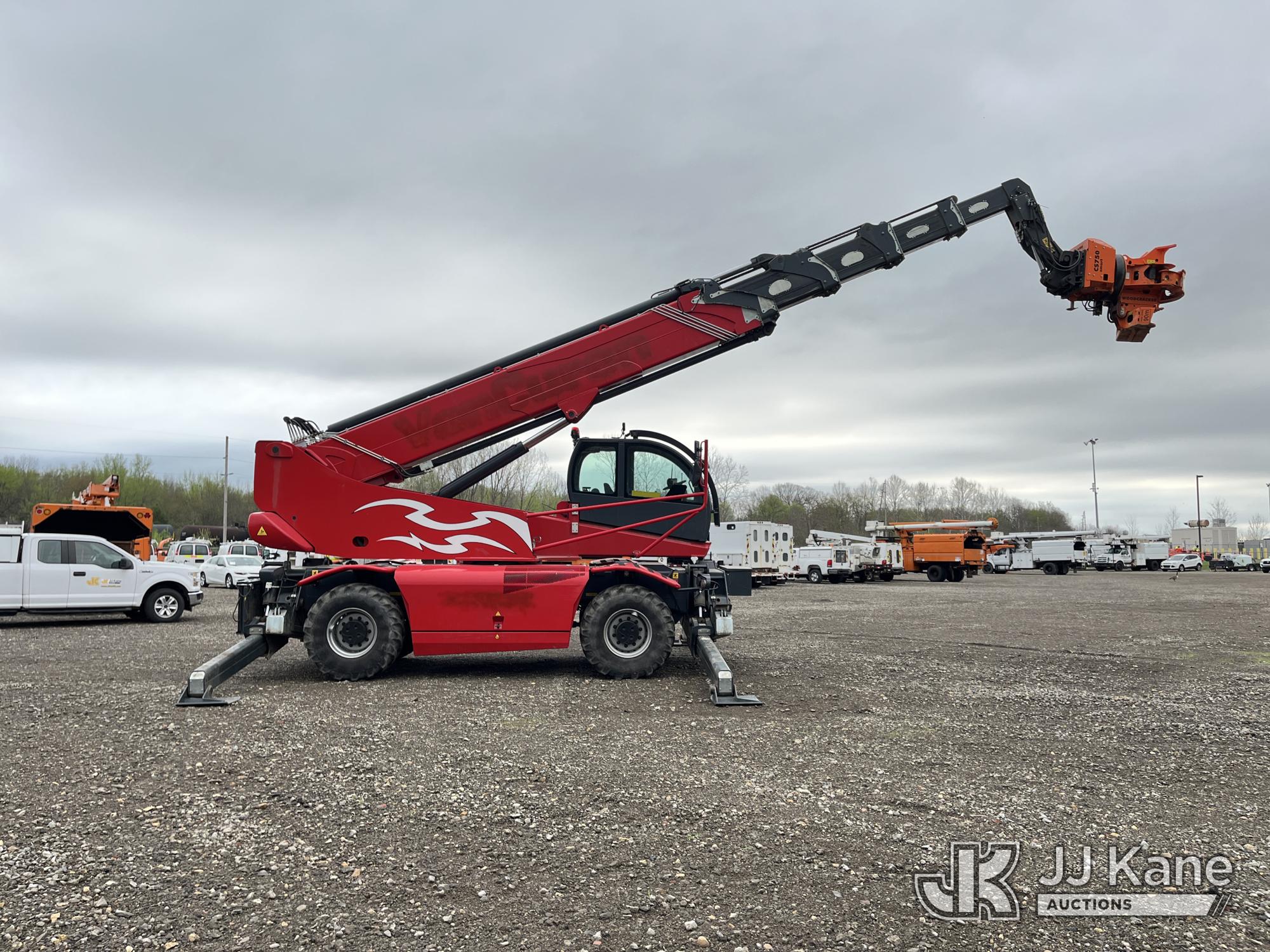 2020 Magni RTH 6.35-M/C Rough Terrain Rotational Telehandler, s/n 3202, Volvo TAD 572 VE diesel, Hydrostatic, A/C, with 13,200 lb. Capacity, 114 ft. 6 in. Lifting Height, 360-degree rotation, Westtech Woodcracker CS750 Smart Grapple Saw, scissor stabilizers, and RFID auto-attachment recognition, wireless remote, (Runs, Moves & Operates. ) (Reads 332 hours)*