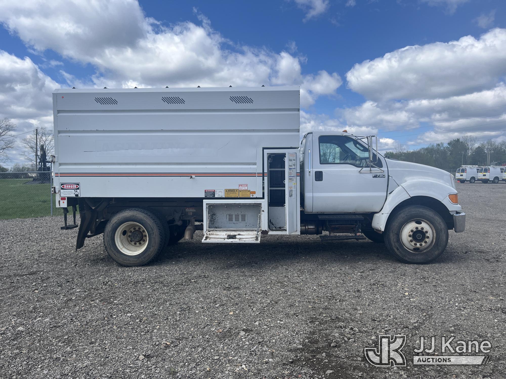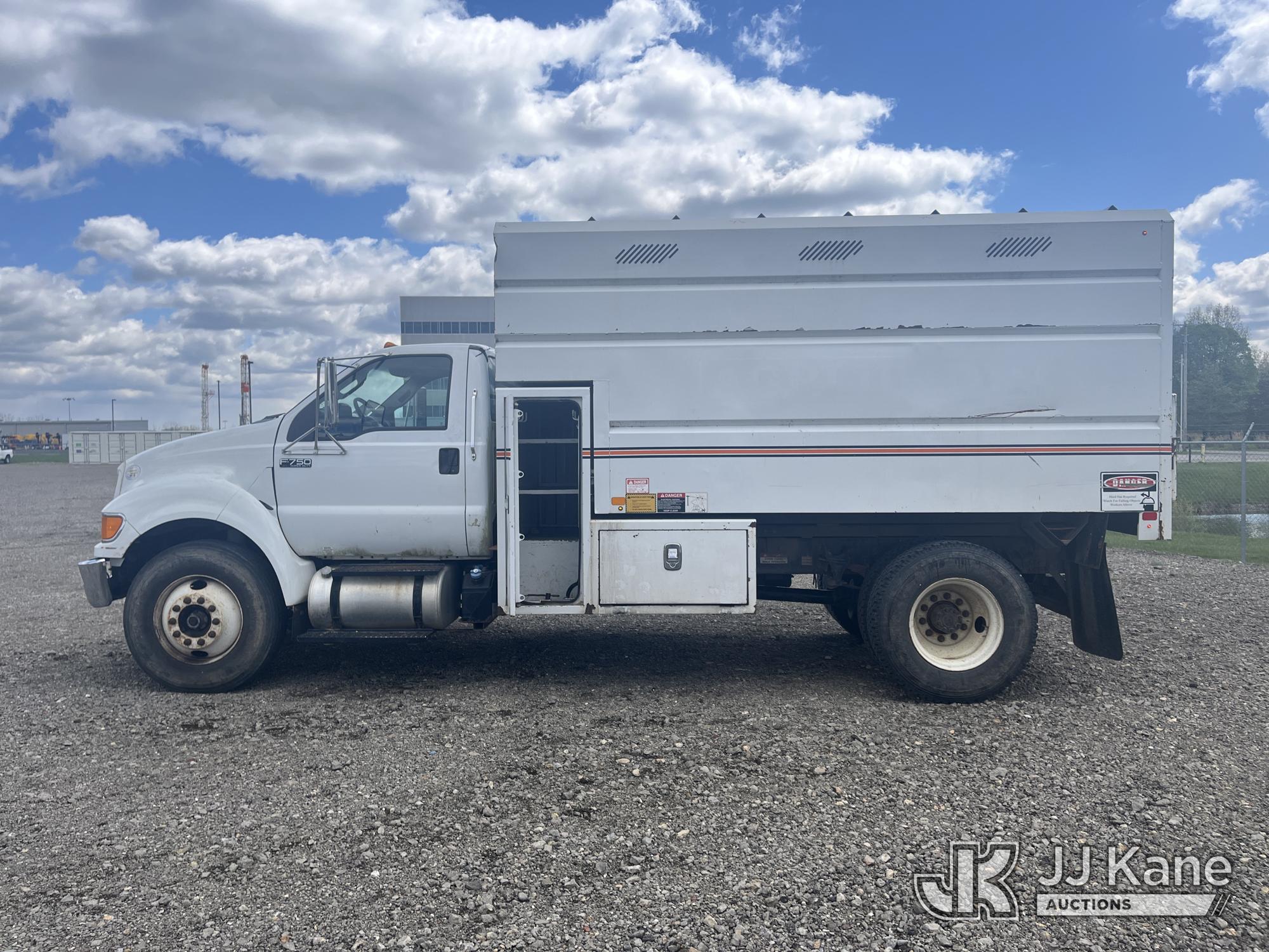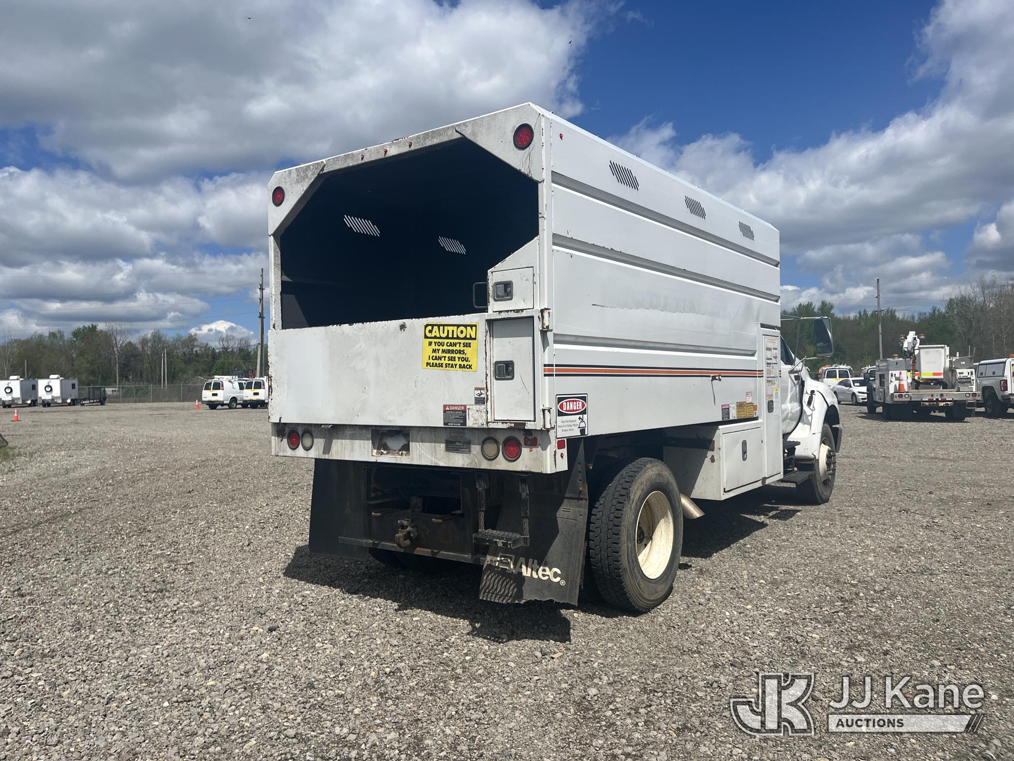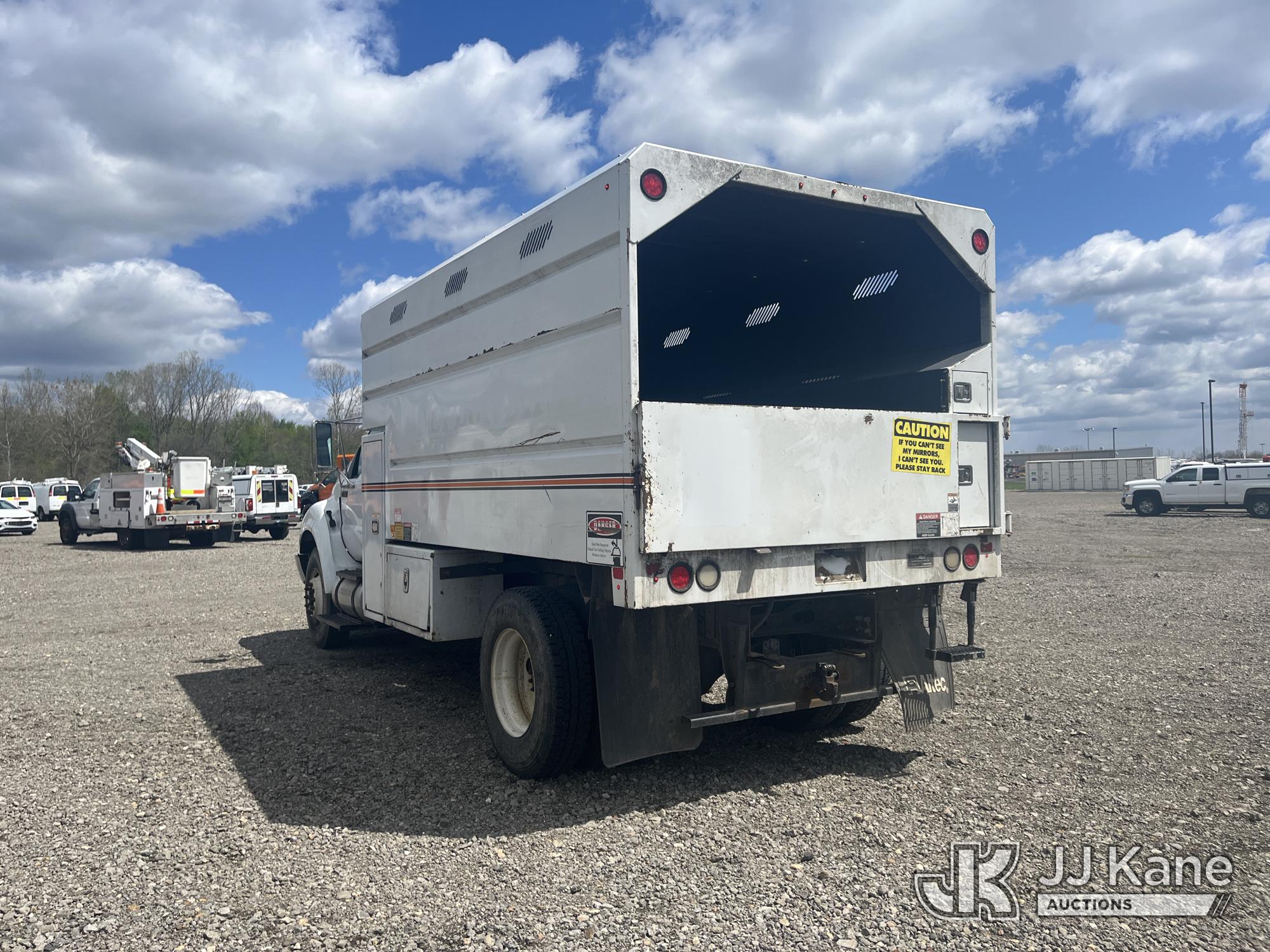 2015 Ford F750 Chipper Dump Truck, 6.7L L6 DIESEL, Auto, A/C, (85,289 miles) (Runs & Moves) (PTO Does Not Engage, Dump Conditions Unknown, Interior Damage, Body/Rust Damage) (Seller States: Brakes) This is a Titled Item*