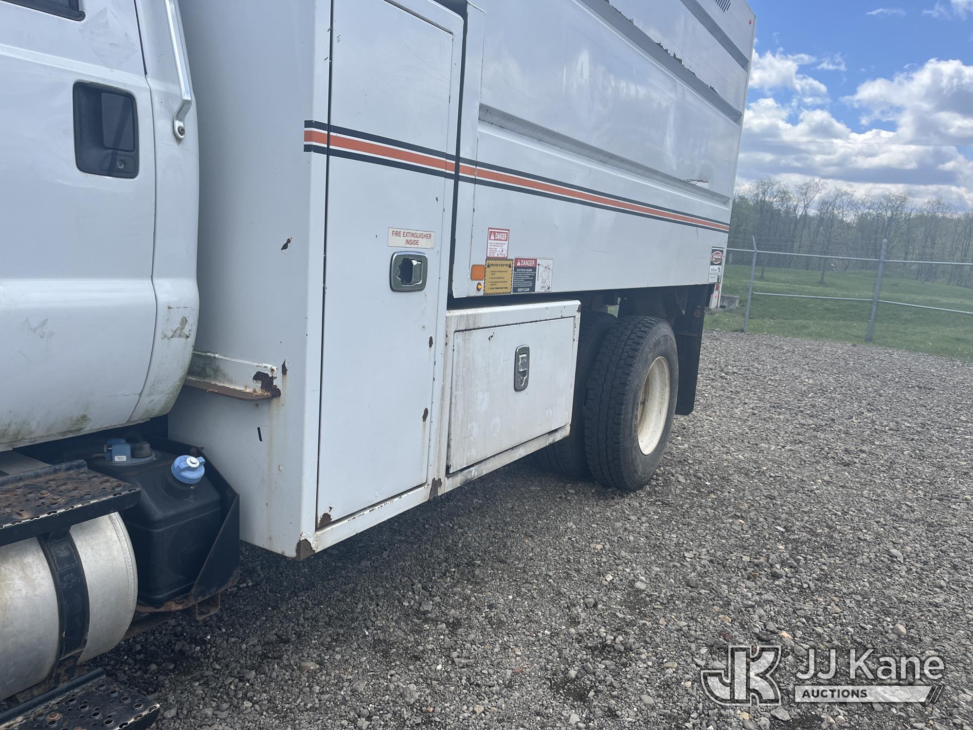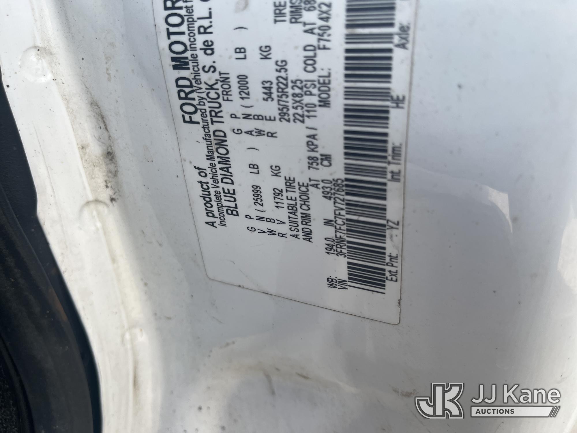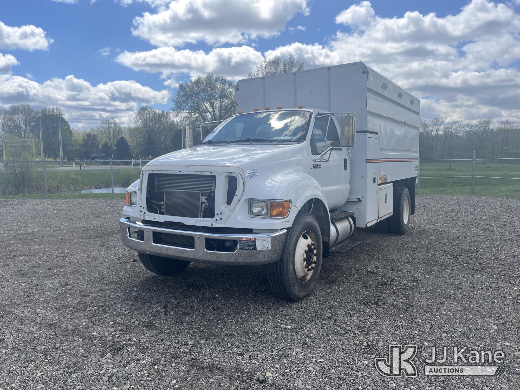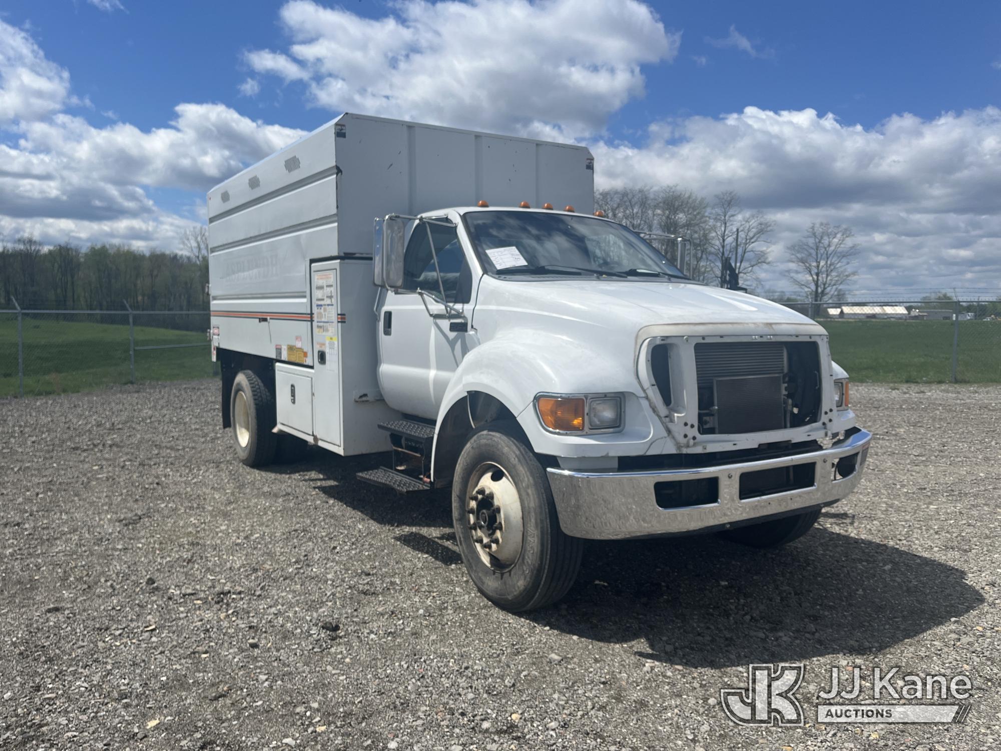 2015 Ford F750 Chipper Dump Truck, 6.7L L6 DIESEL, Auto, A/C, (85,289 miles) (Runs & Moves) (PTO Does Not Engage, Dump Conditions Unknown, Interior Damage, Body/Rust Damage) (Seller States: Brakes) This is a Titled Item*