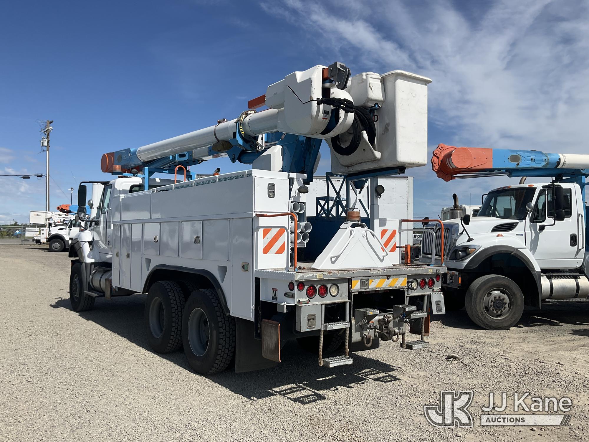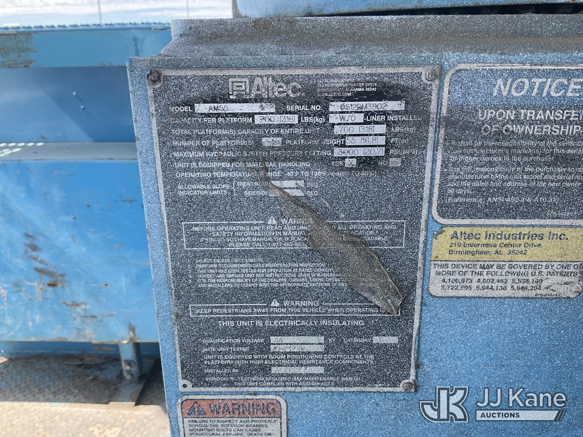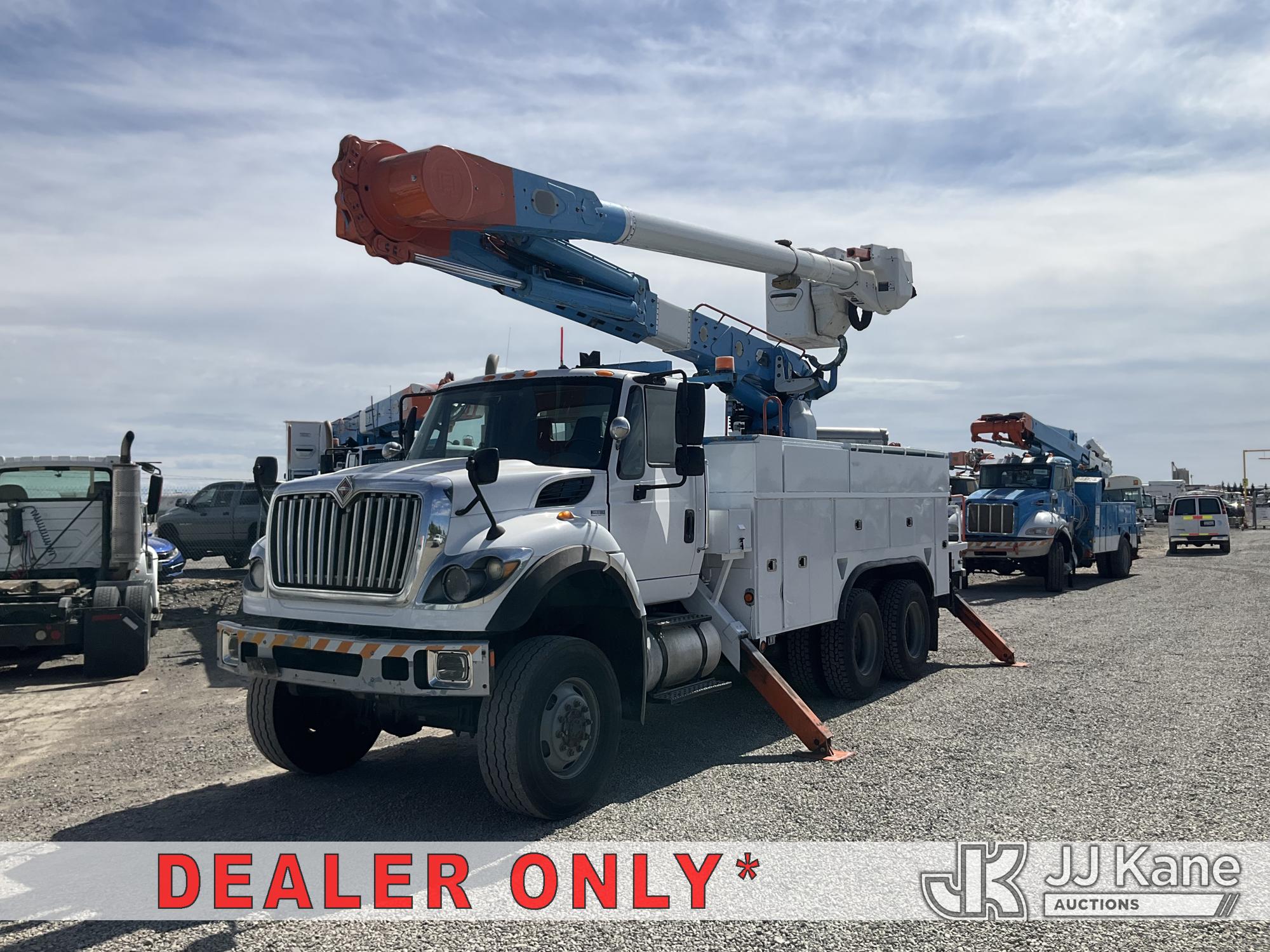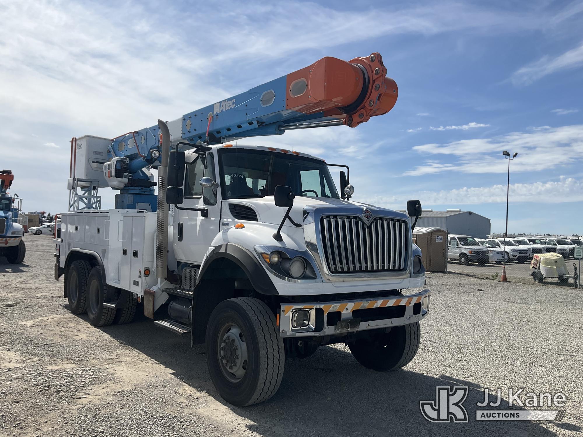 Altec AM55, 60 ft, Over-Center Material Handling Bucket Truck s/n 0512DM3902, with two-man bucket & 4 hyd outriggers, center mounted on 2013 International 7500 T/A Utility Truck, s/n 1HTWWAZT6DJ162553, 9.3L L6 6X6, DIESEL, A/C, with winch, spotlight, pintle hitch, (105,311 miles) (Runs, Moves & Upper Operates, Check Engine Light) (Reads 8,948 hours) (Bidding Restricted to Licensed Vehicle Dealers Only), May be subject to ARB Regulations This is a Titled Item*
