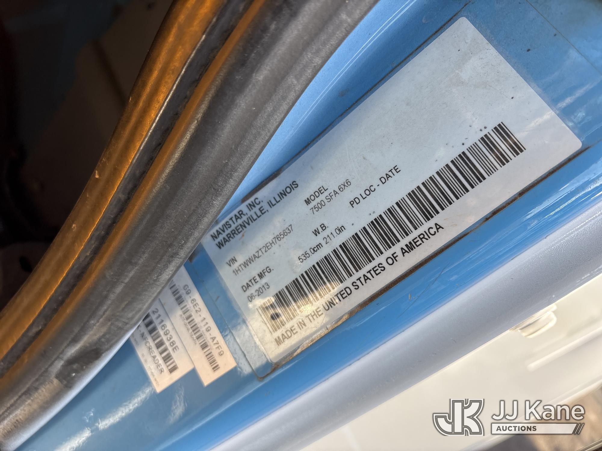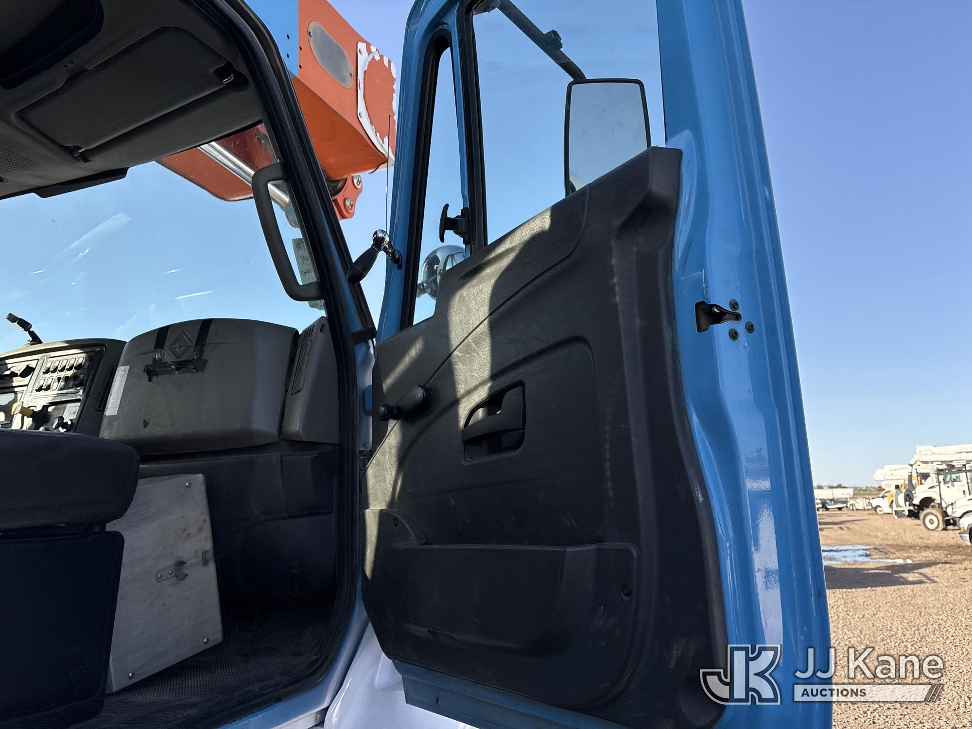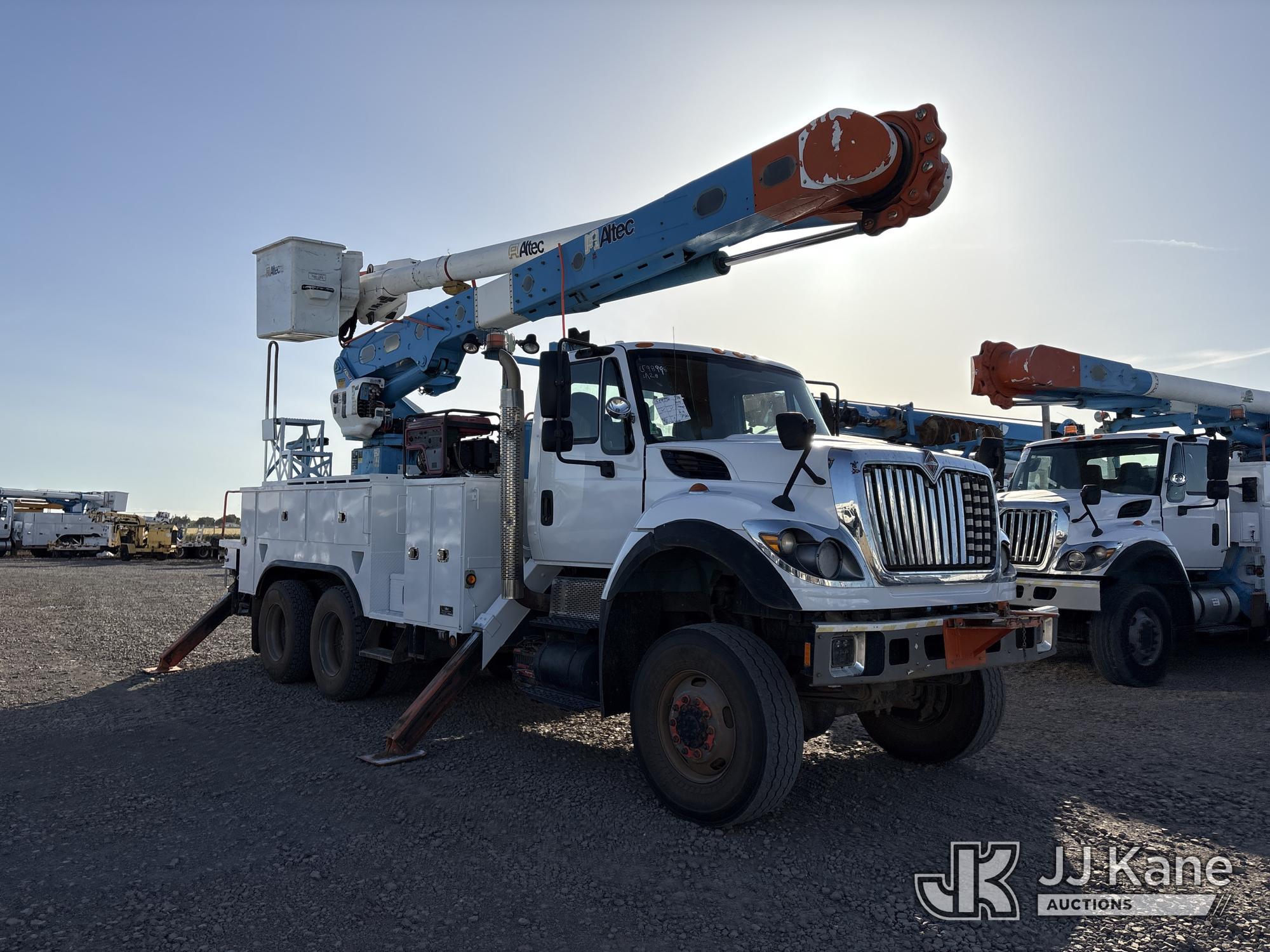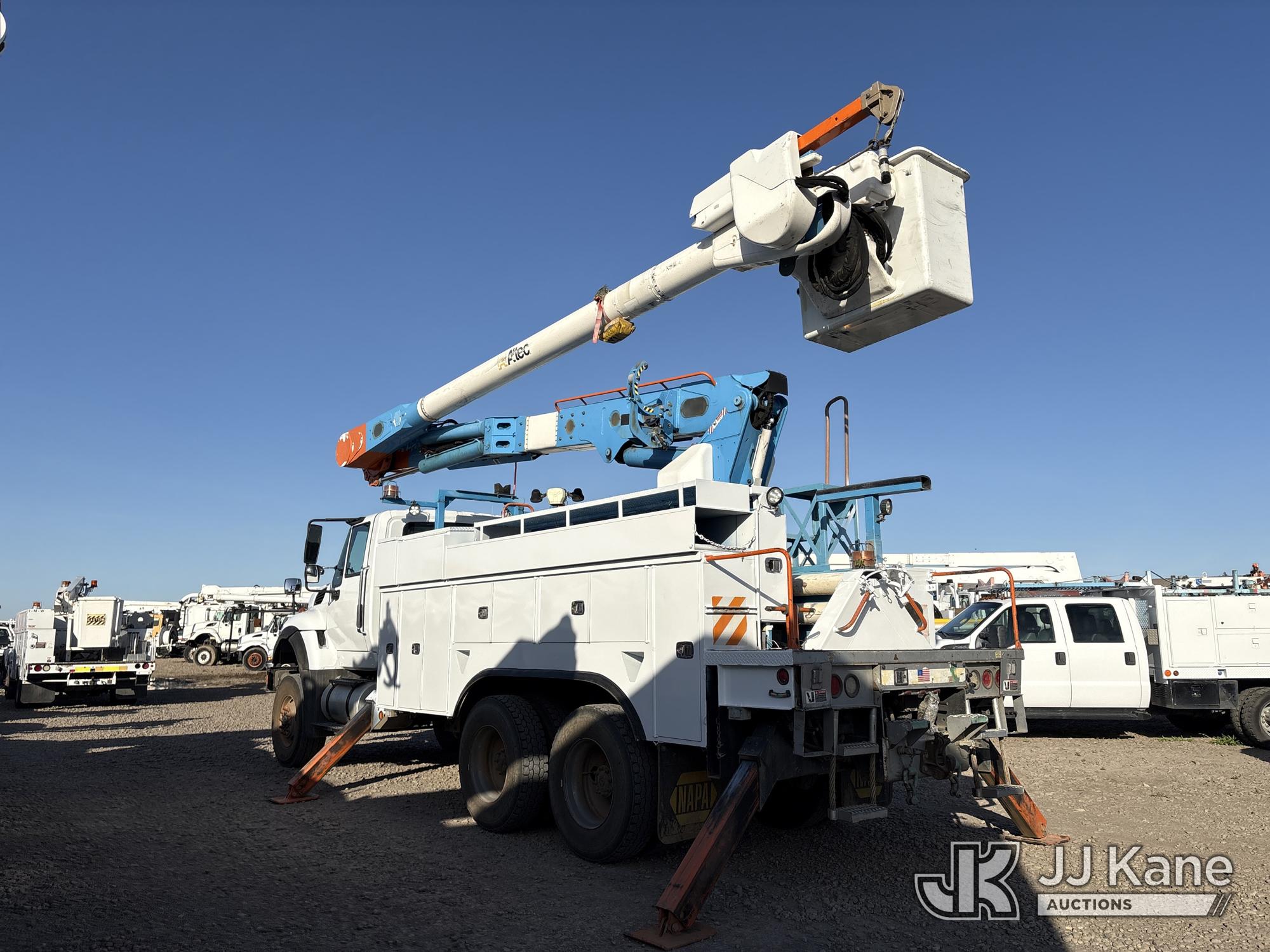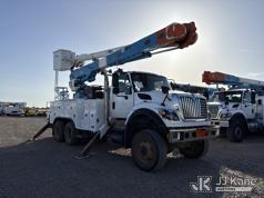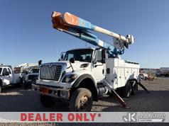 Altec AM55, 60 ft, Articulating & Telescopic Material Handling Bucket Truck s/n 0613DM4583, with two-man bucket & 4 hyd outriggers, mounted behind cab on 2014 International 7500 T/A Utility Truck, s/n 1HTWWAZT2EH765637, 9.3L L6 6X6, DIESEL, Auto, A/C, (106,003 miles) (Runs, Moves & Upper Operates, Check Engine Light On) (Reads 8,318 hours) (Bidding Restricted to Licensed Vehicle Dealers Only), Subject to CARB Regs,CARB non Compliant,Cannot Operate on CA Roads/Highways until Compliant This is a Titled Item*