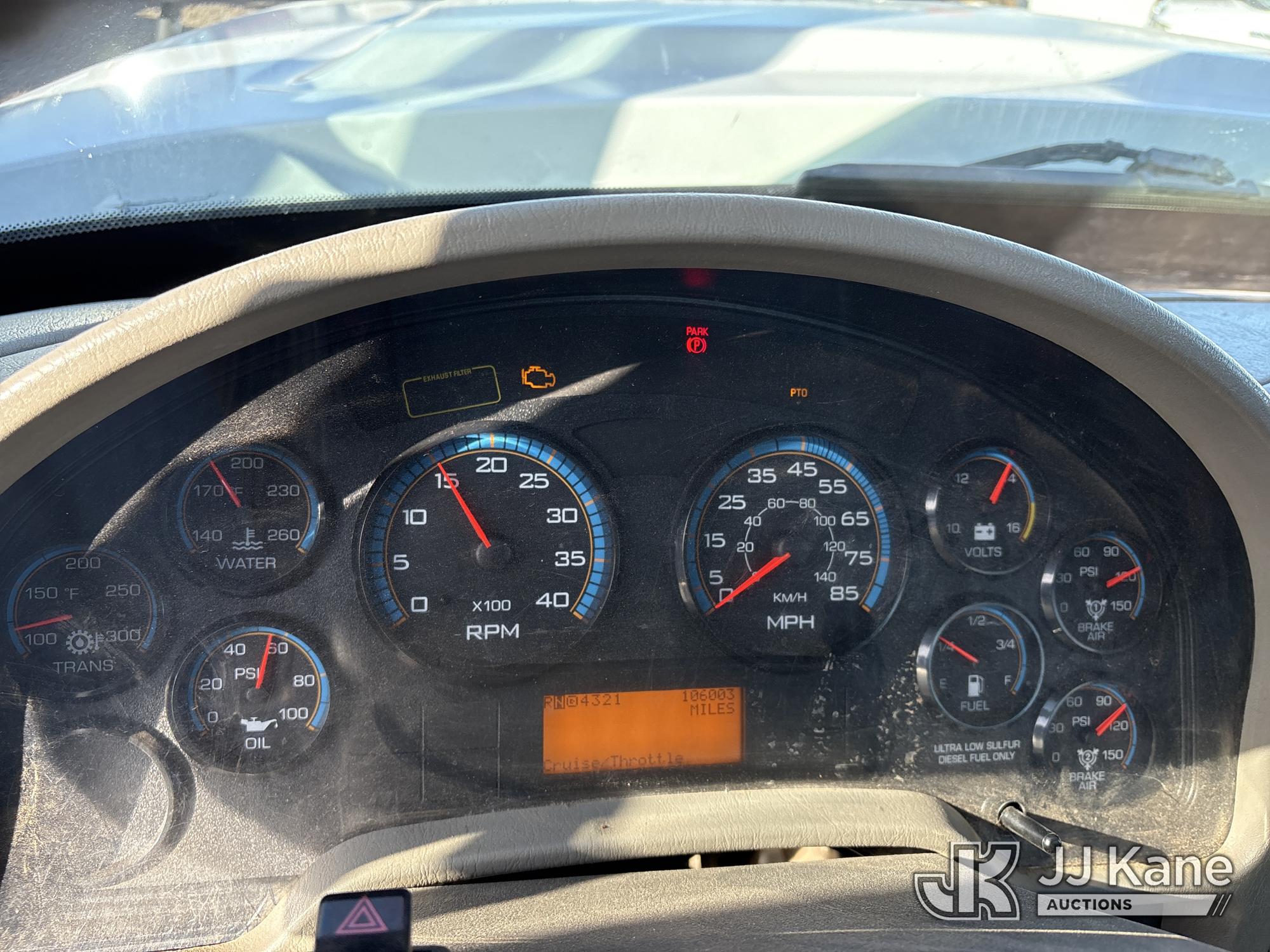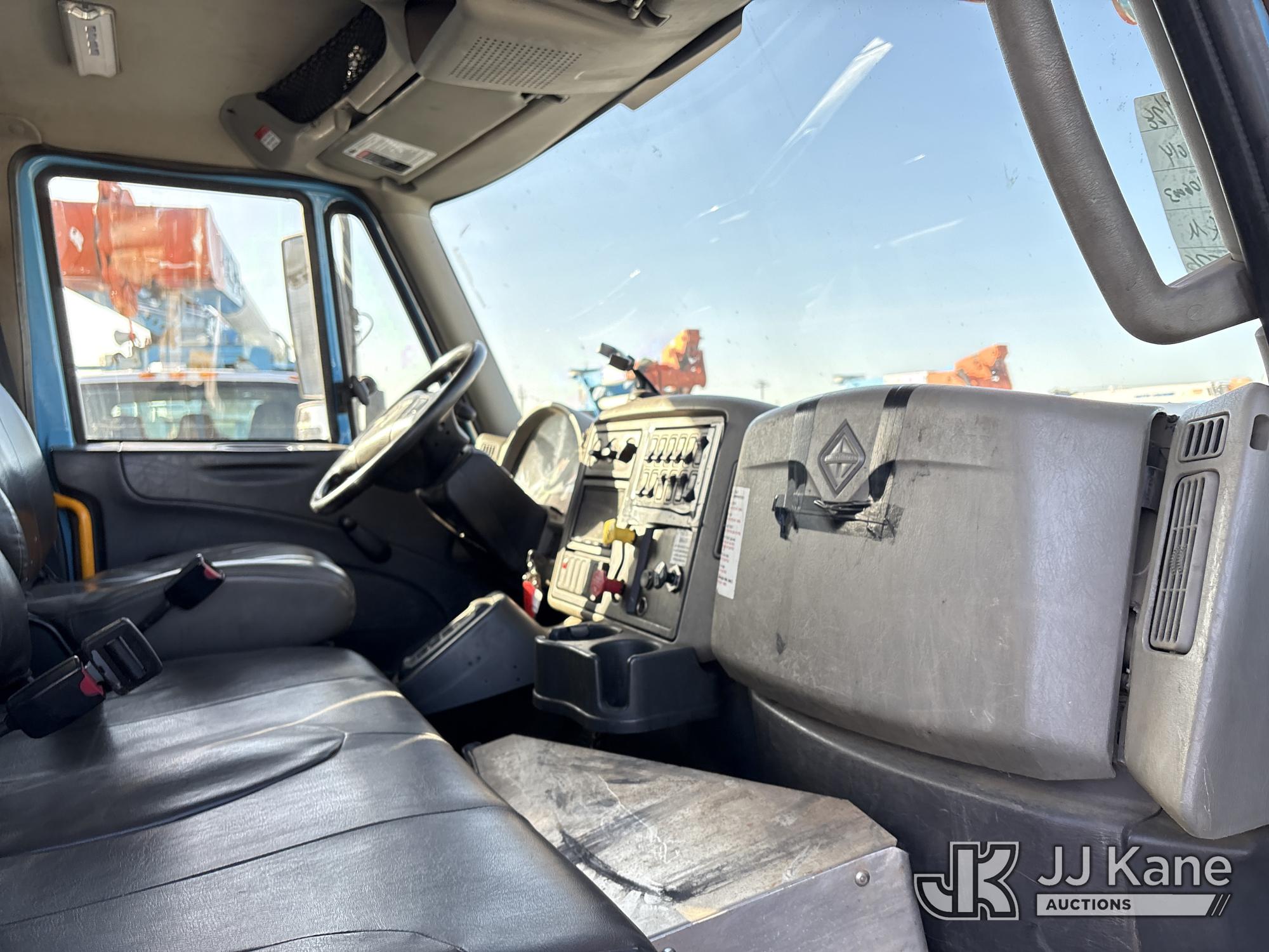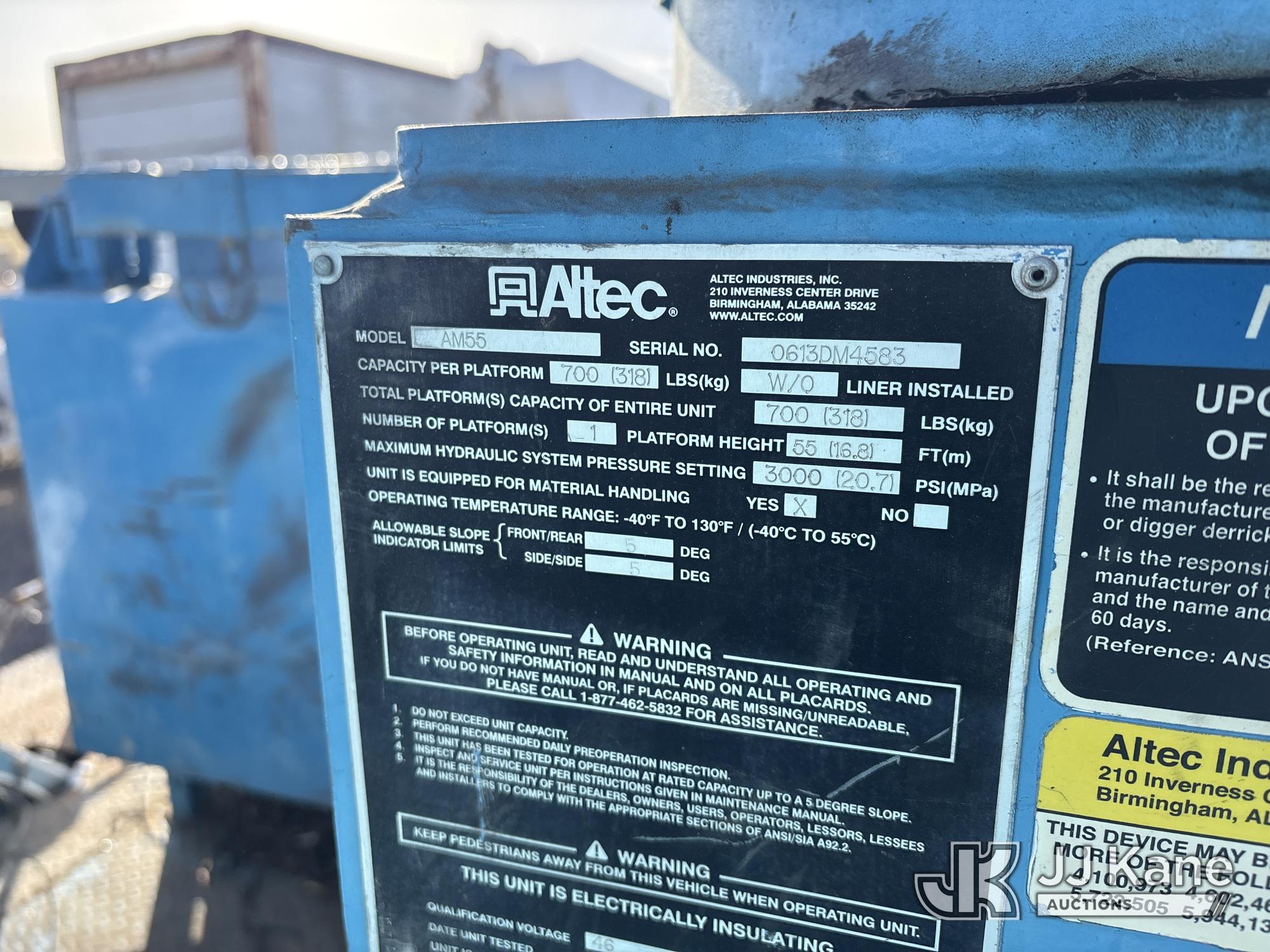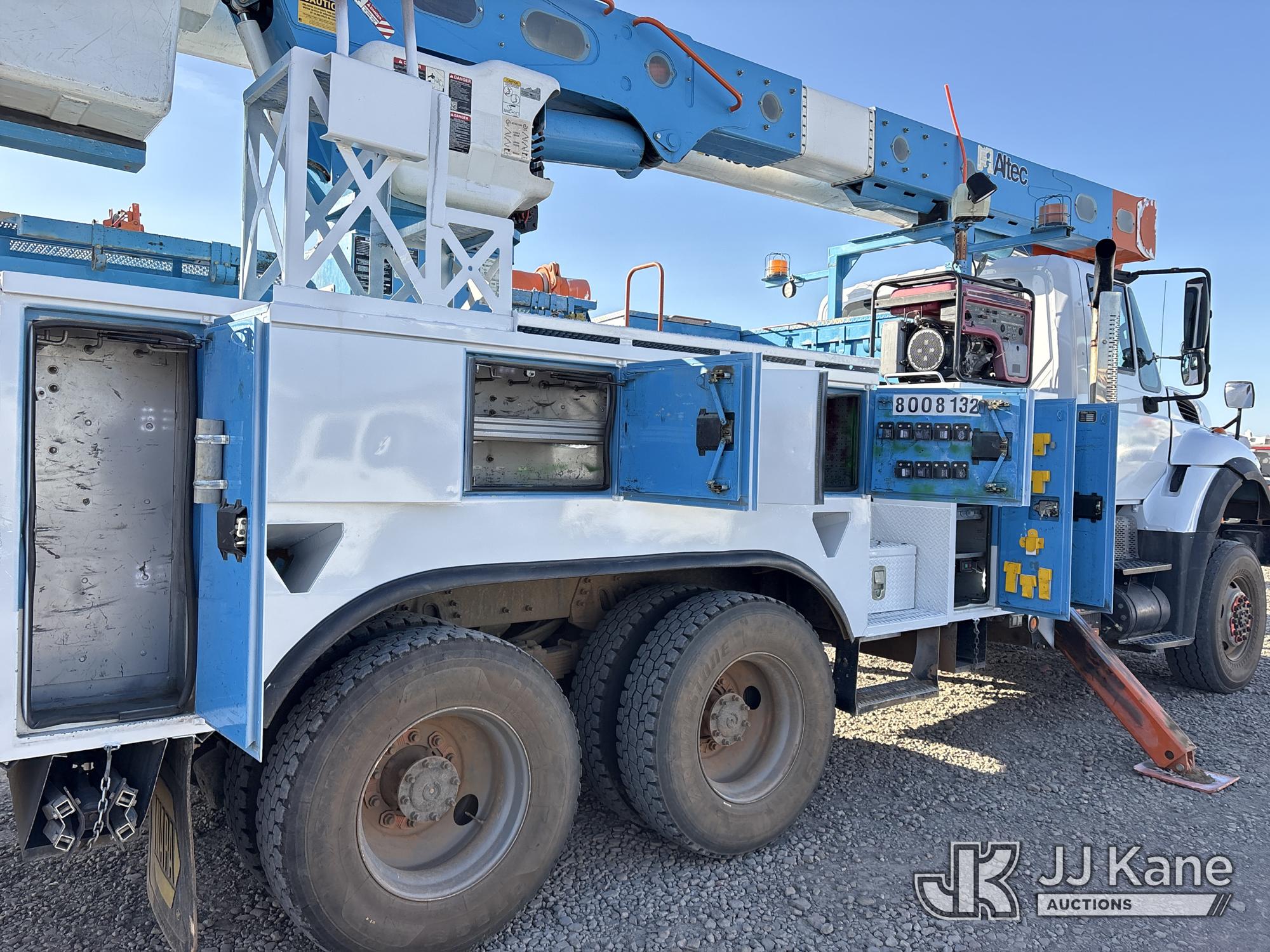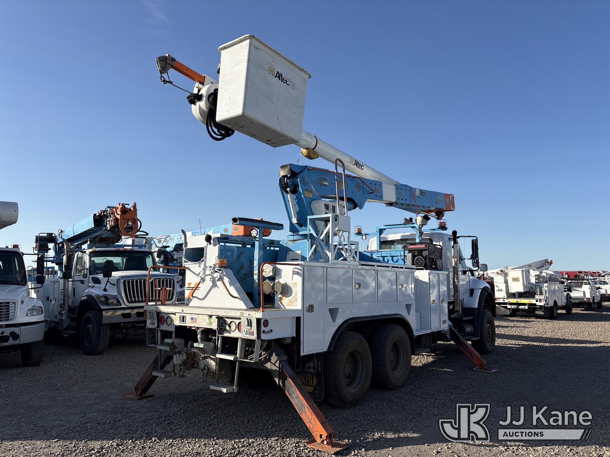 Altec AM55, 60 ft, Articulating & Telescopic Material Handling Bucket Truck s/n 0613DM4583, with two-man bucket & 4 hyd outriggers, mounted behind cab on 2014 International 7500 T/A Utility Truck, s/n 1HTWWAZT2EH765637, 9.3L L6 6X6, DIESEL, Auto, A/C, (106,003 miles) (Runs, Moves & Upper Operates, Check Engine Light On) (Reads 8,318 hours) (Bidding Restricted to Licensed Vehicle Dealers Only), Subject to CARB Regs,CARB non Compliant,Cannot Operate on CA Roads/Highways until Compliant This is a Titled Item*