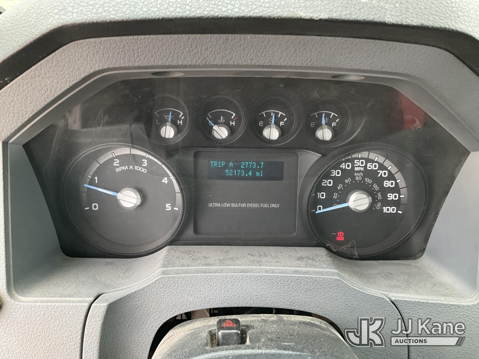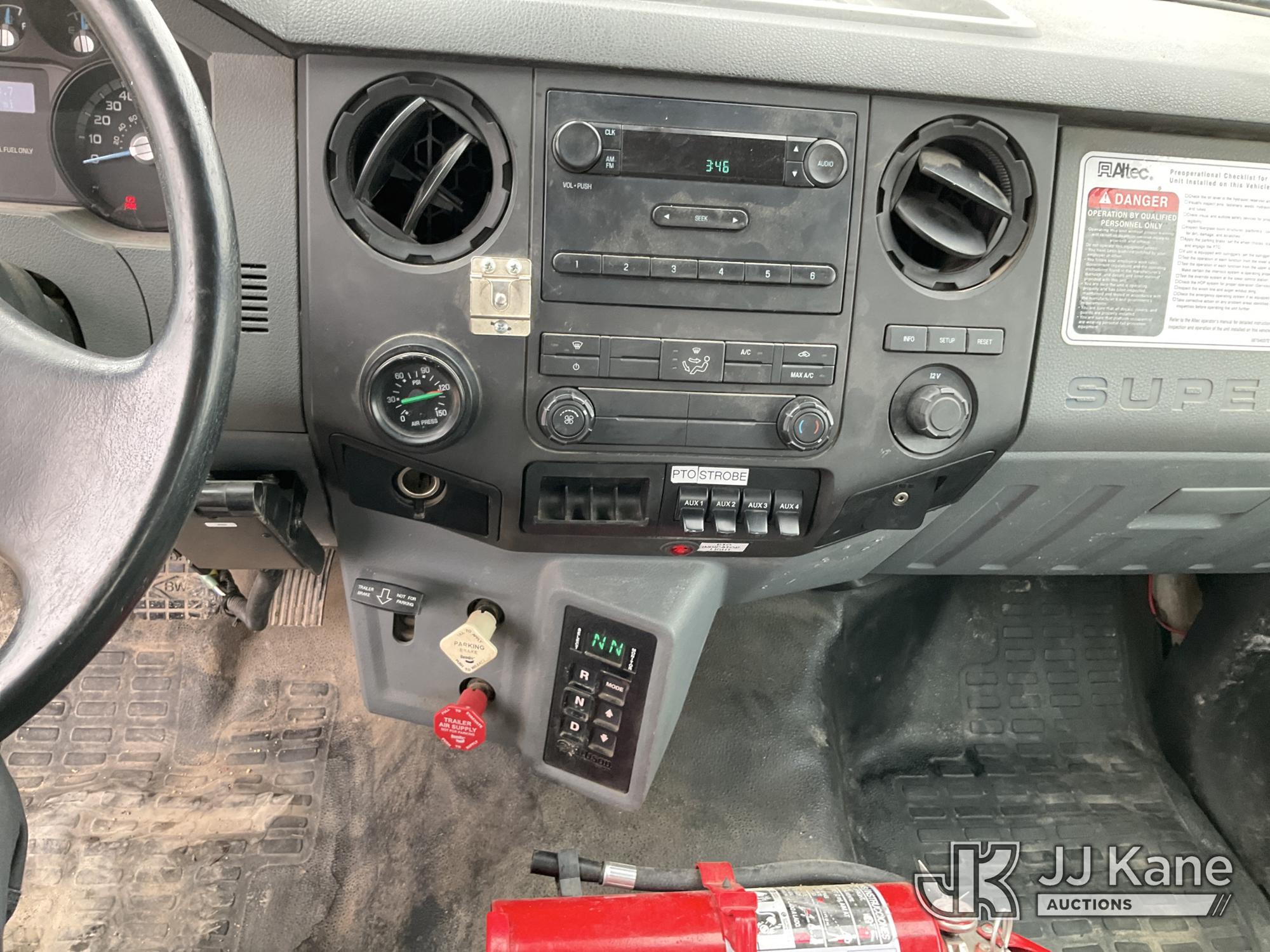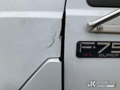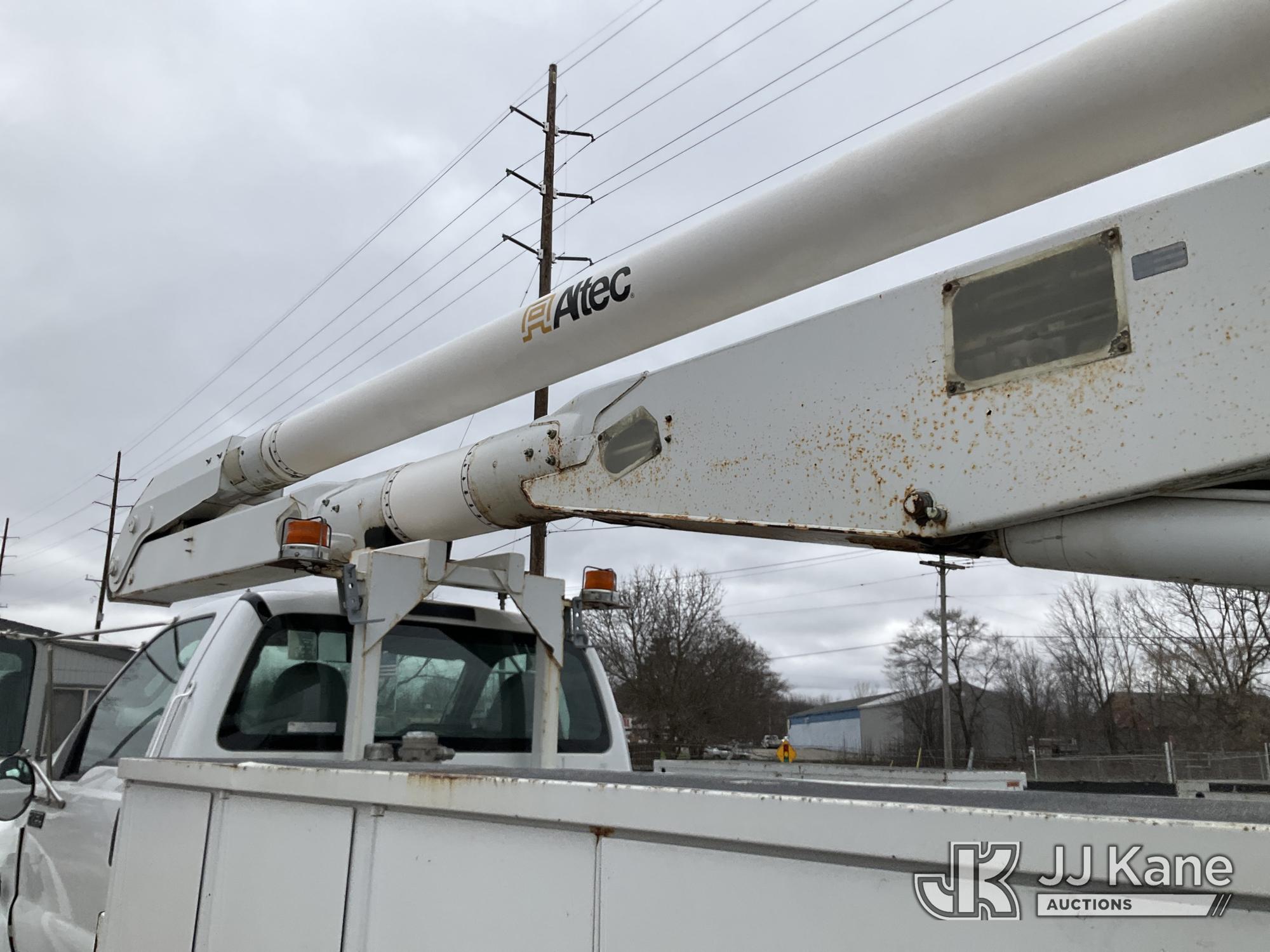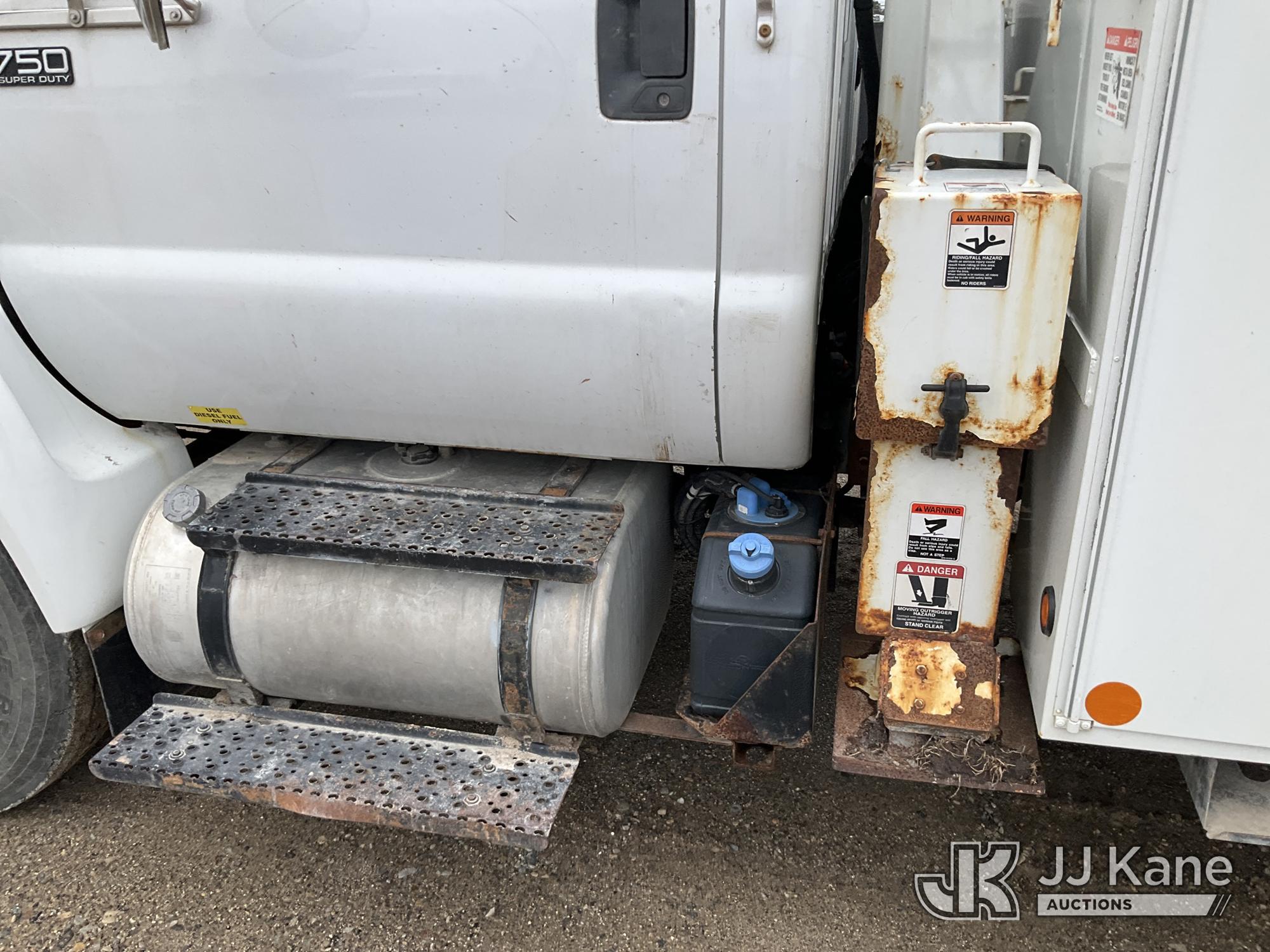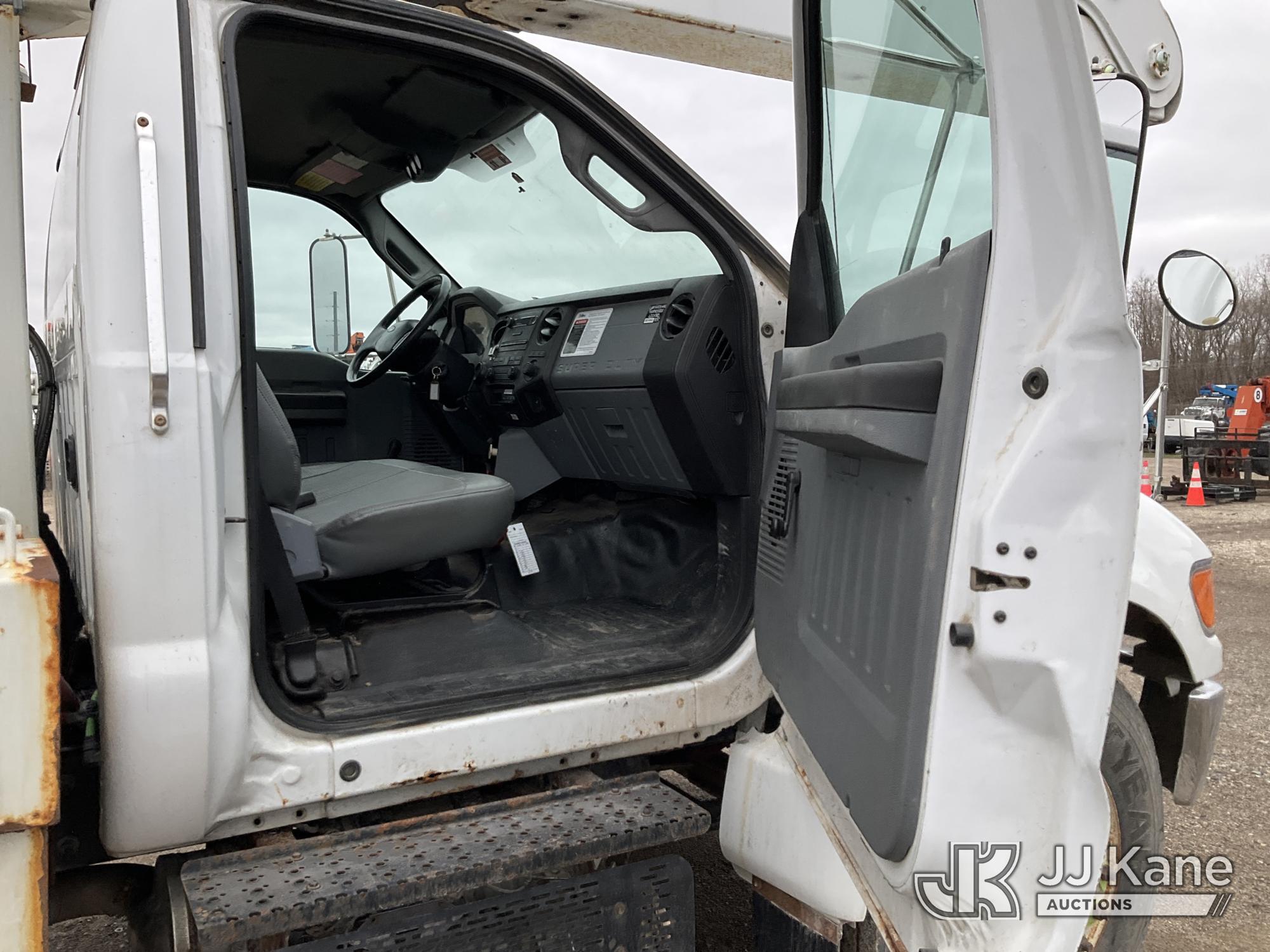 Altec AA755-MH, 60 ft, Articulating Material Handling Bucket Truck s/n 0513BZ7314, with two man bucket, four hydraulic outriggers, jib attachment missing, rear mounted on 2013 Ford F-750 Regular Cab 2WD DRW Utility Truck, 6.7L L6 DIESEL 4X2, Auto, A/C, (52,173 miles) (Runs, Moves & Upper Operates) (Rust) (Reads 5,828 hours) This is a Titled Item*