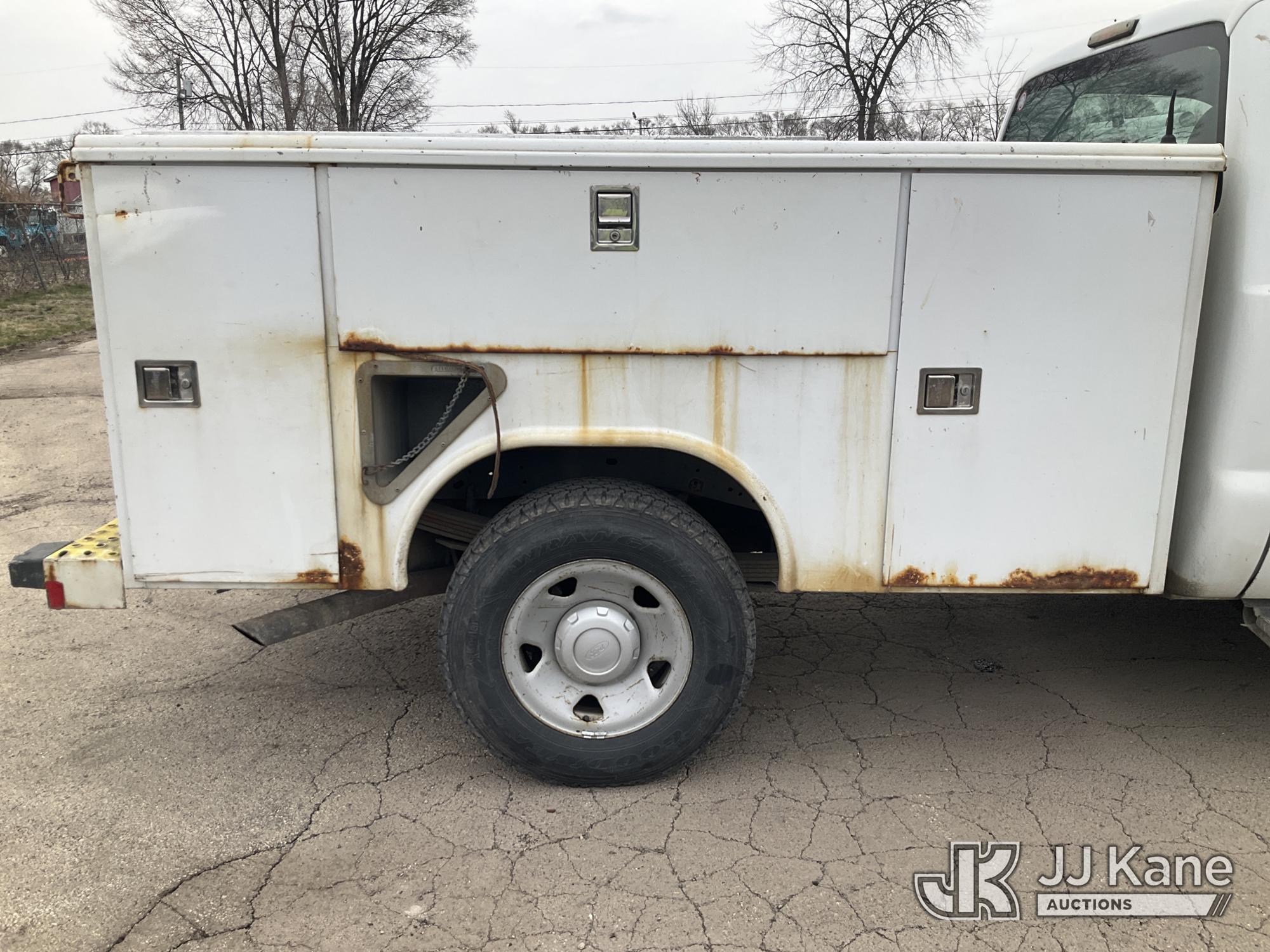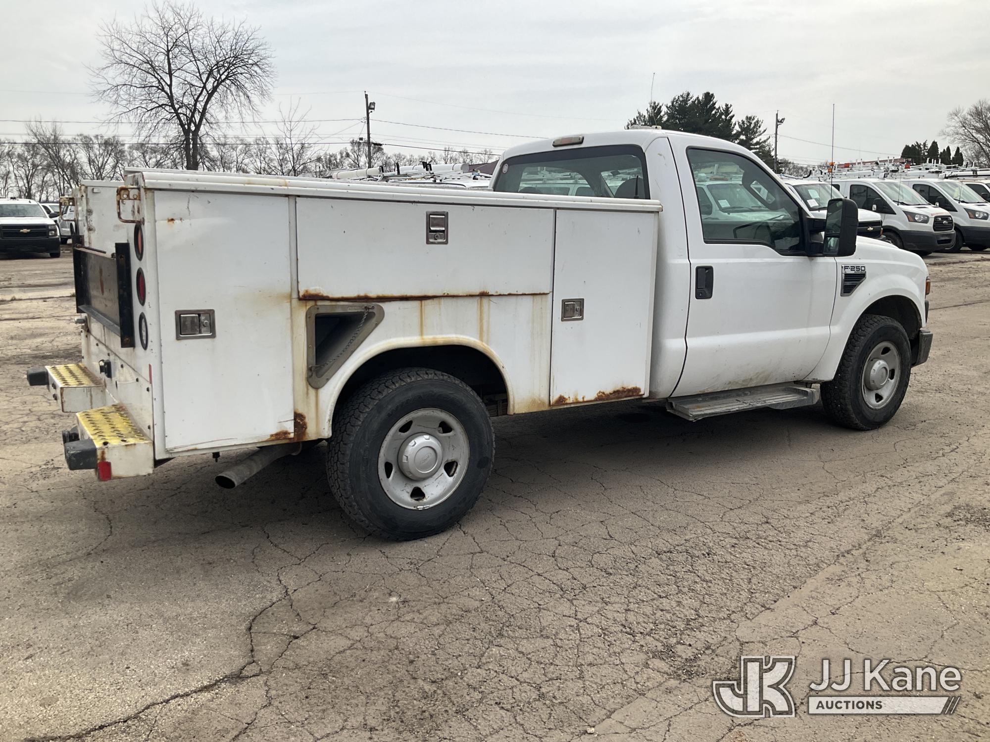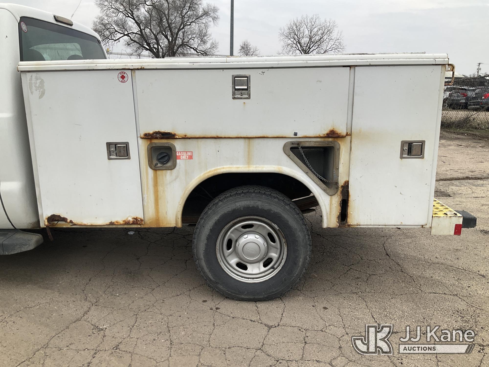 2010 Ford F250 Service Truck, 5.4L V8 SOHC 16V gas, RWD, Auto, A/C, (162,690 miles) (Runs & Moves) (Check Engine Light On, Utility Body Rust Damage, Grill Damaged, Paint Damage) (Reads 14,813 hours) This is a Titled Item*