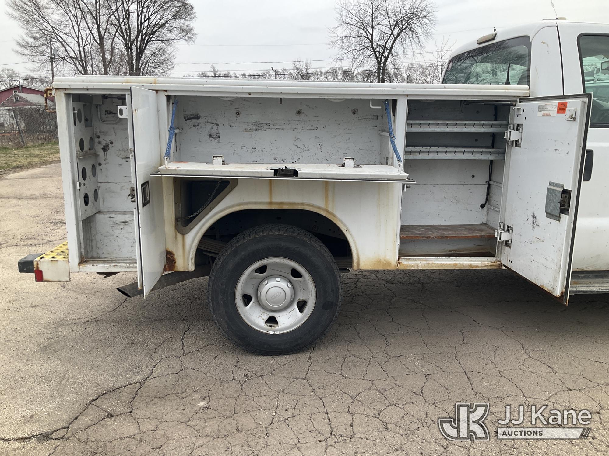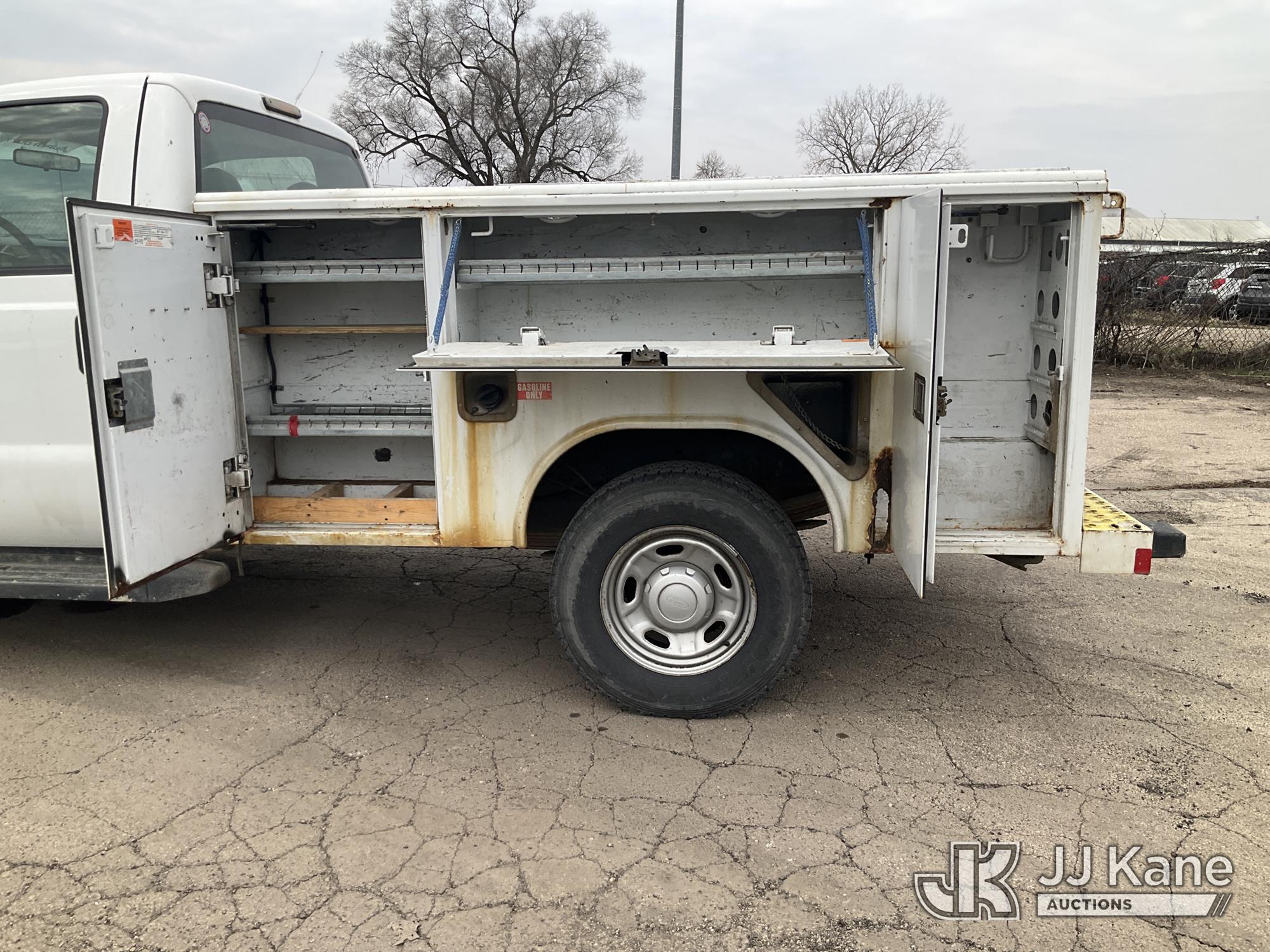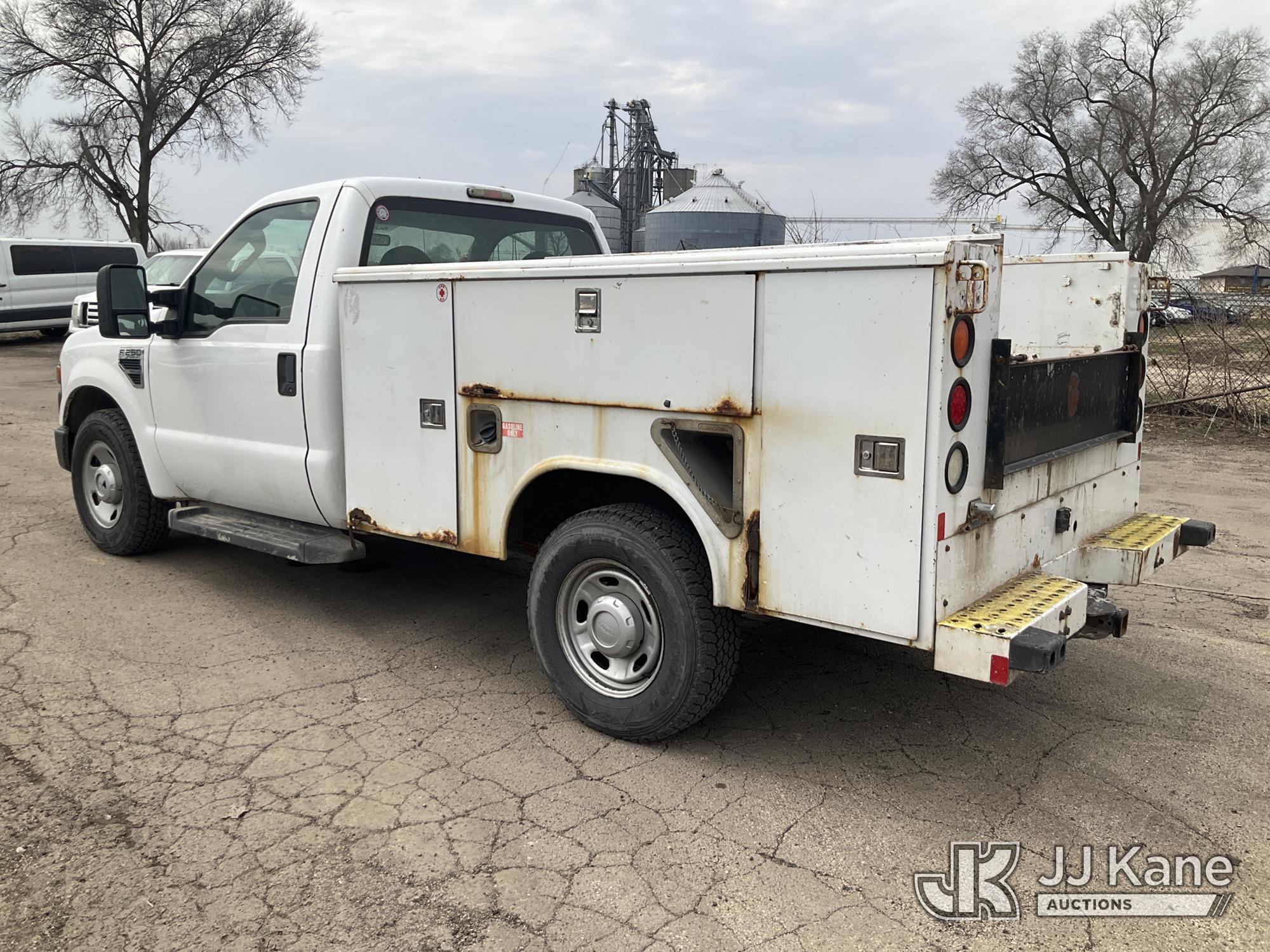 2010 Ford F250 Service Truck, 5.4L V8 SOHC 16V gas, RWD, Auto, A/C, (162,690 miles) (Runs & Moves) (Check Engine Light On, Utility Body Rust Damage, Grill Damaged, Paint Damage) (Reads 14,813 hours) This is a Titled Item*
