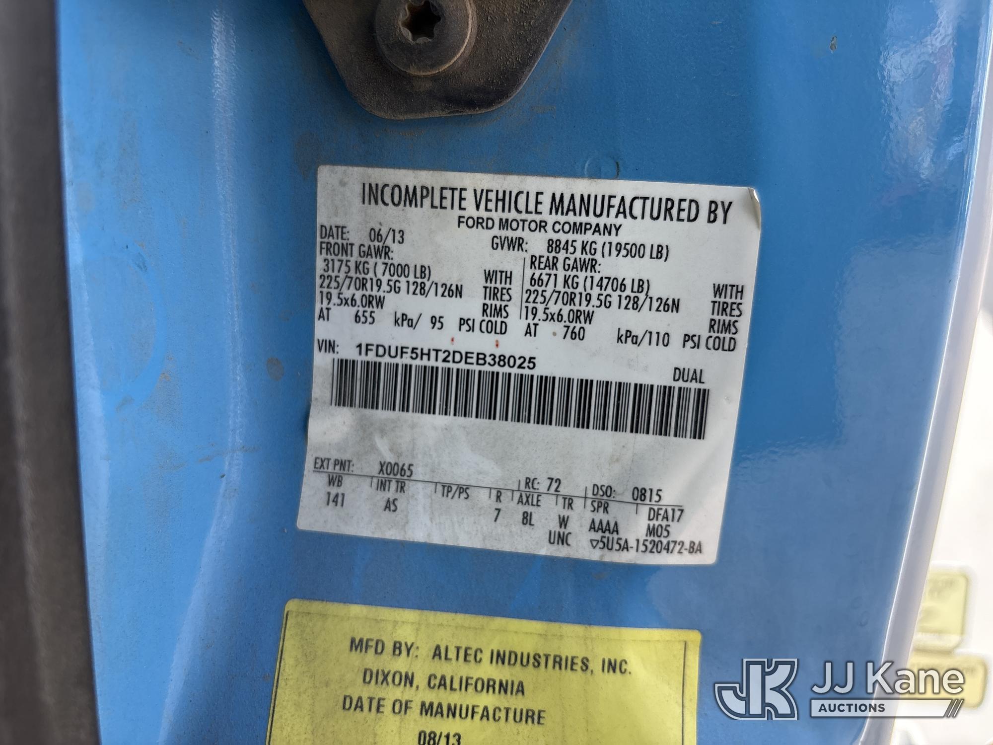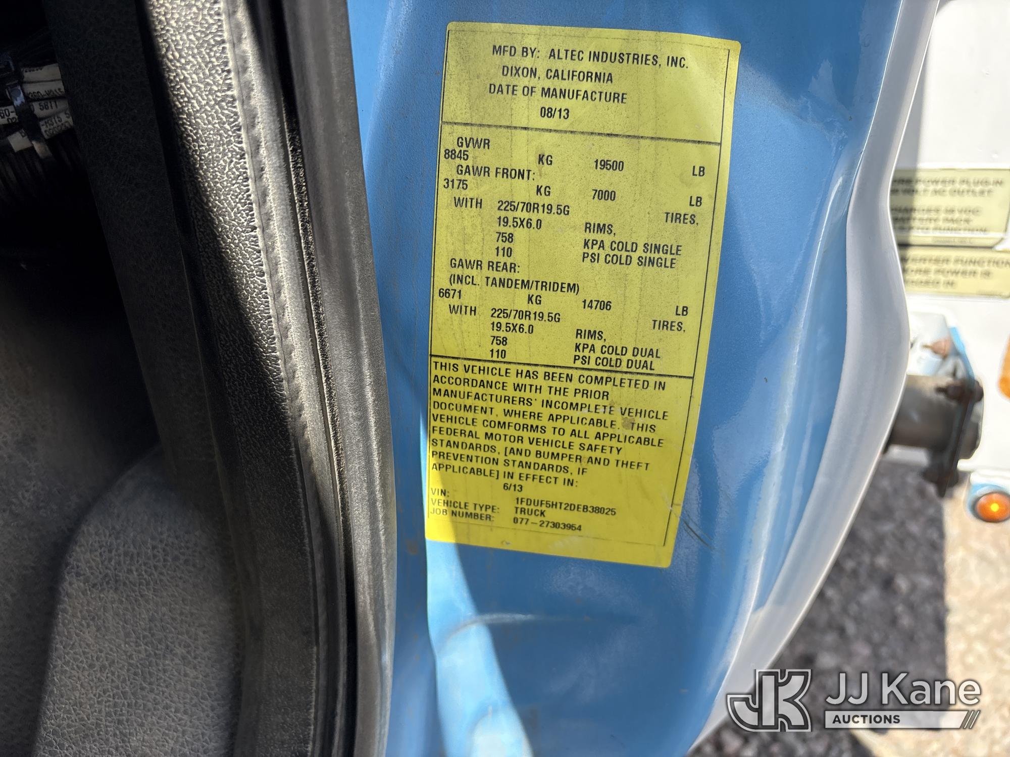 Altec AT37G, 42 ft, Articulating & Telescopic Bucket s/n 0613DE15526, with single-man bucket, mounted behind cab on 2013 Ford F-550 Regular Cab DRW 4WD Service Truck, s/n 1FDUF5HT2DEB38025, 6.7L V8 OHV 16V DIESEL, Auto, A/C, (176,261 miles) (Runs & Moves, Does Not Operate, Immediately Shuts Off When PTO Is Engaged, Low Fuel) (Reads 1,540 hours) May be subject to ARB Regulations This is a Titled Item*