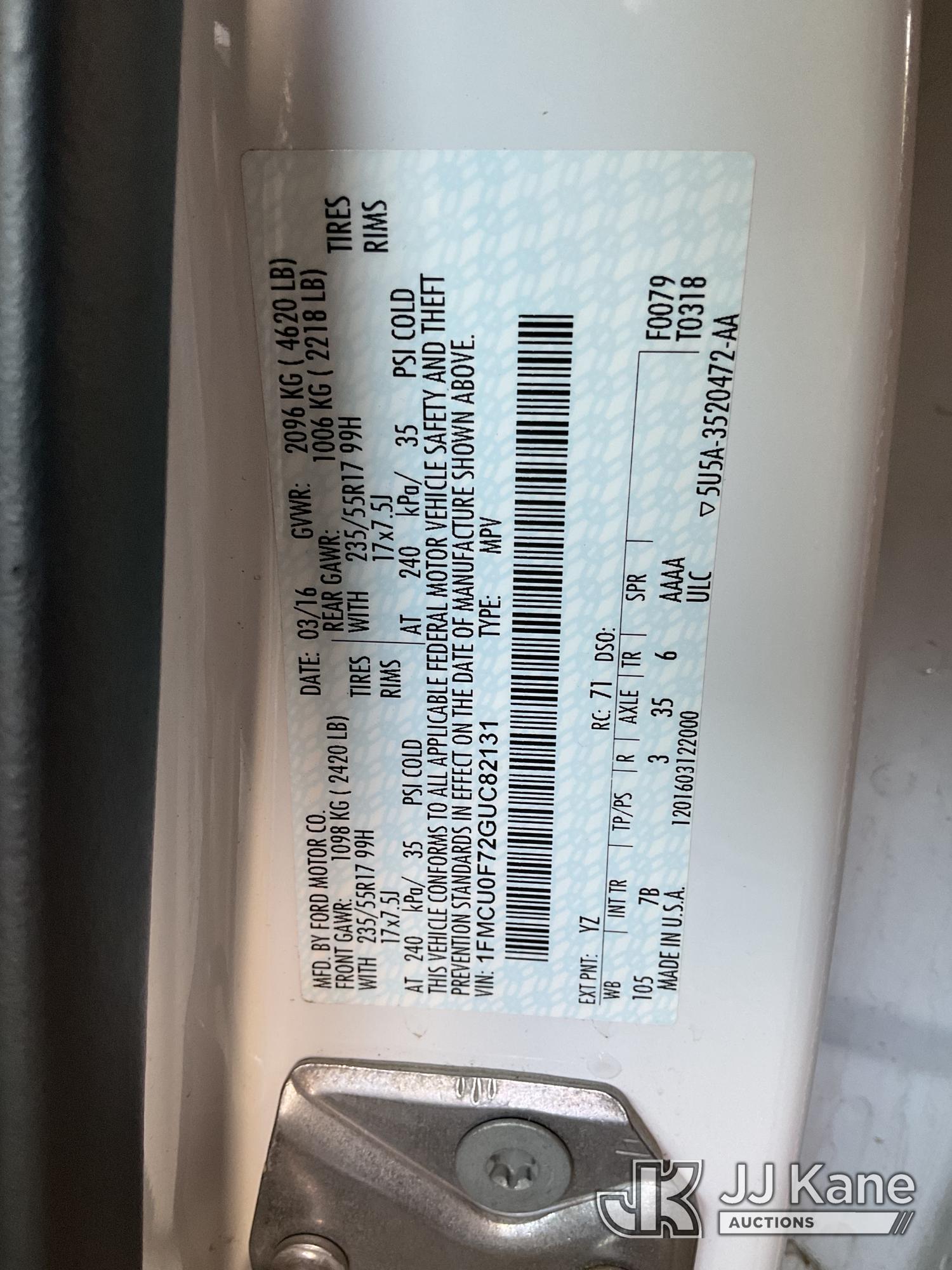 2016 Ford Escape S FWD 4-Door Sport Utility Vehicle, s/n 1FMCU0F72GUC82131, 2.5L L4 DOHC 16V GAS, 6-Speed Automatic, A/C, (140,814 miles) (Runs & Moves, Open Recall, Remedy Not Yet Available) (Bidding Restricted to Licensed Vehicle Dealers Only), This is a Titled Item*