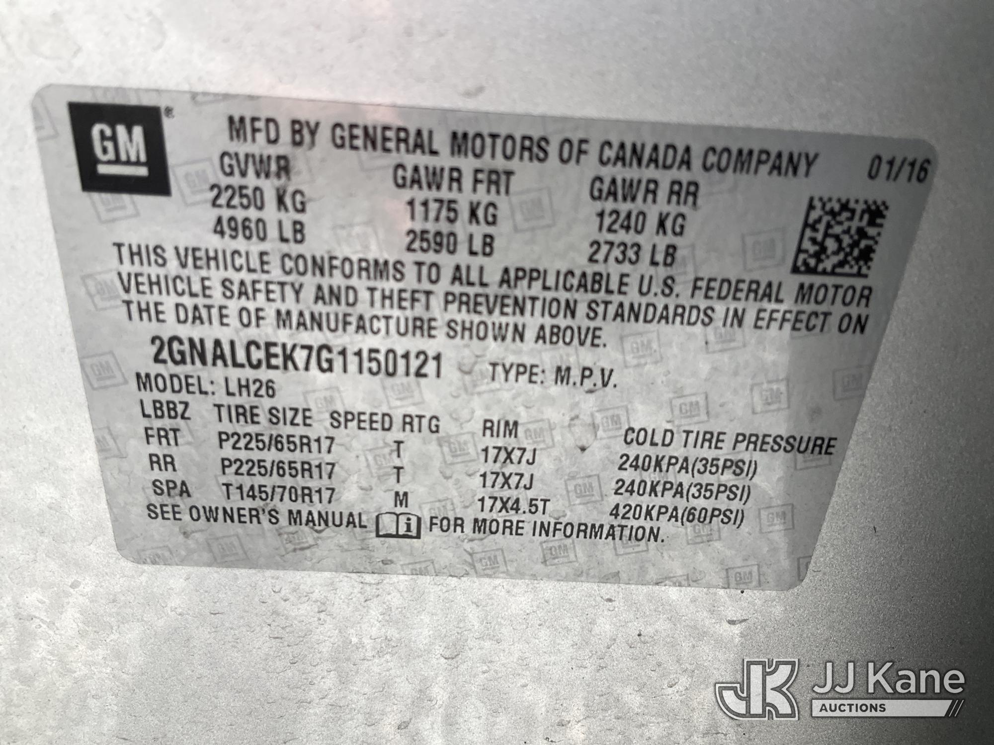 2016 Chevrolet Equinox 4-Door Sport Utility Vehicle, 2.4L L4 DOHC 16V FFV gas, FWD, 6-Speed Automatic, A/C, (133,459 miles) (Runs & Moves) This is a Titled Item*