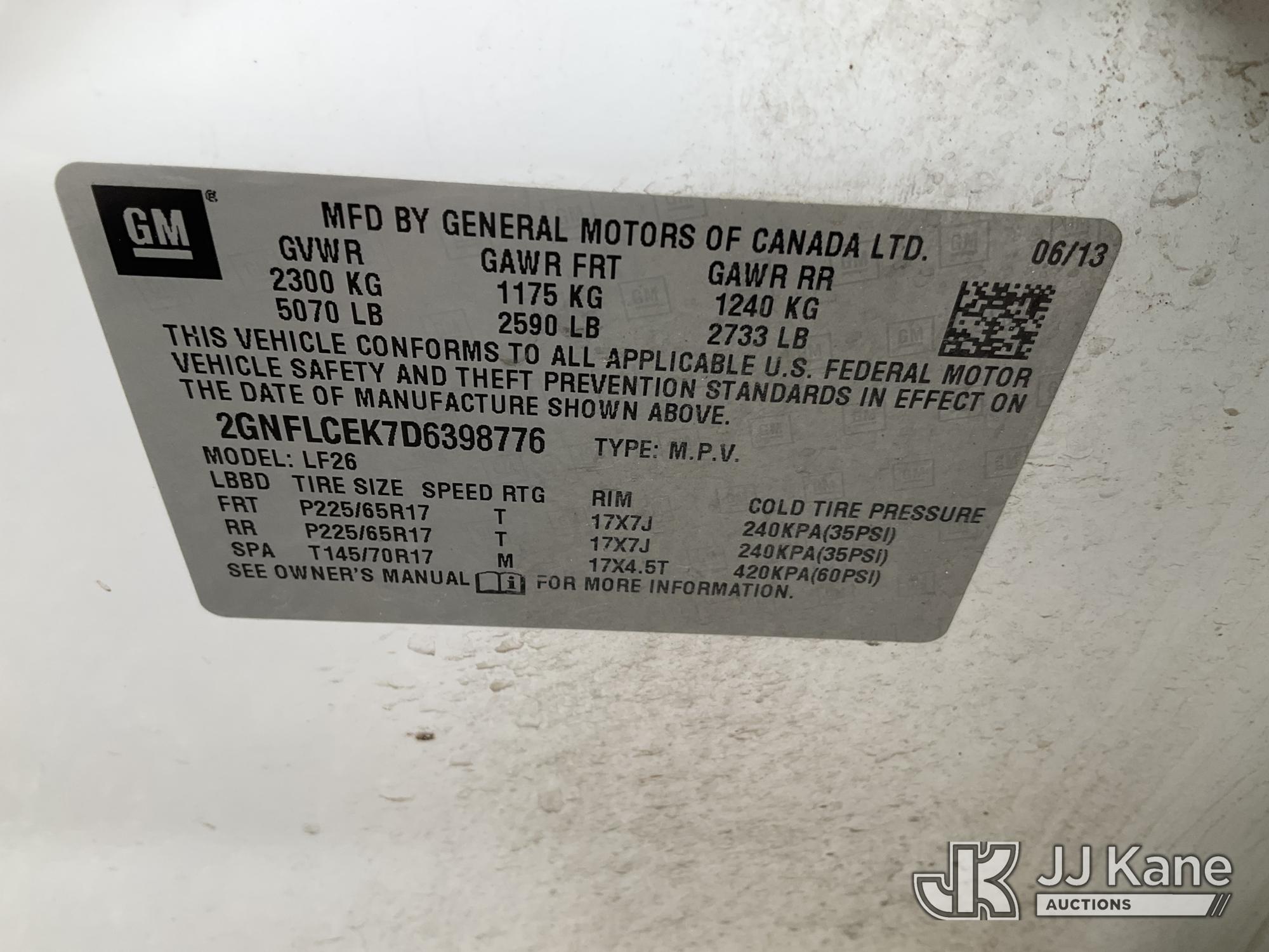 2013 Chevrolet Equinox LS AWD 4-Door Sport Utility Vehicle, s/n 2GNFLCEK7D6398776, 2.4L L4 DOHC 16V GAS, 6-Speed Automatic, A/C, (146,822 miles) (Runs & Moves, Engine Light On, Per Seller Needs Cat, Engine Knocking) (Bidding Restricted to Licensed Vehicle Dealers Only), This is a Titled Item*