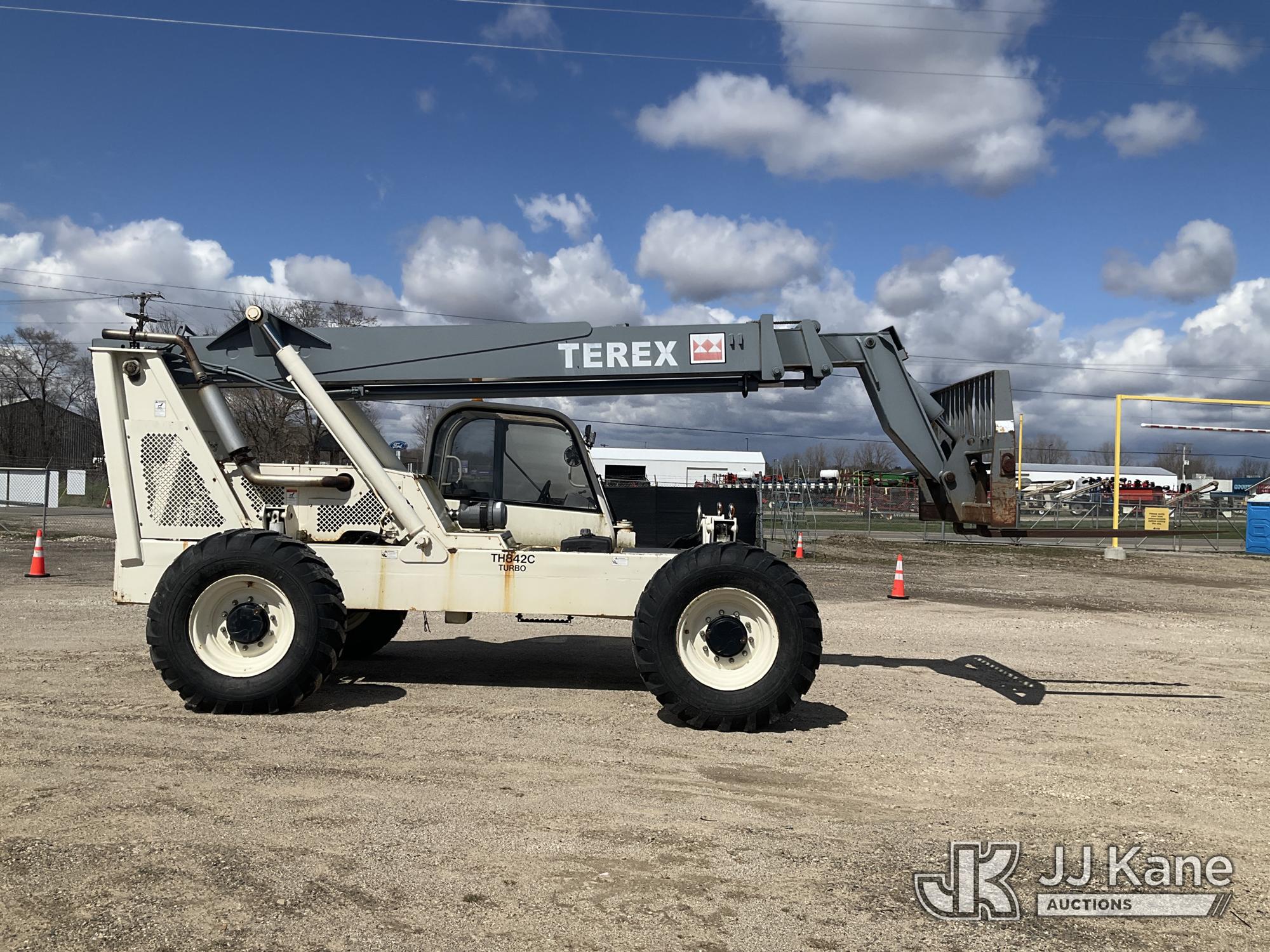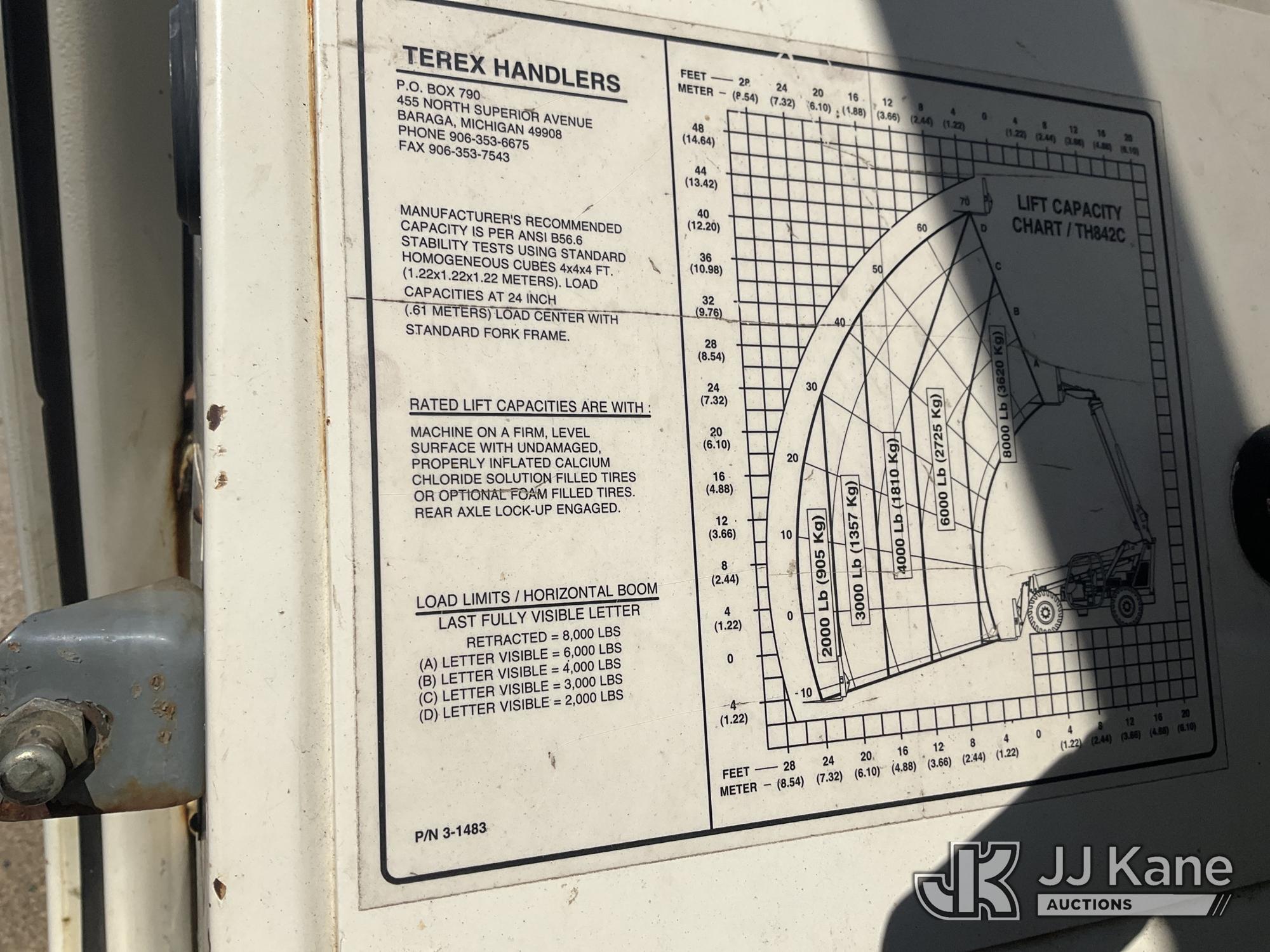 2004 Terex TH842c Rough Terrain Telescopic Boom Forklift, s/n 045195, J.D. diesel, powershift, with 8000# maximum lift capacity, 42 feet maximum height, 72 inch forks, (Runs, Moves, Operates)(Jump To Start) (Reads 3,228 hours)*