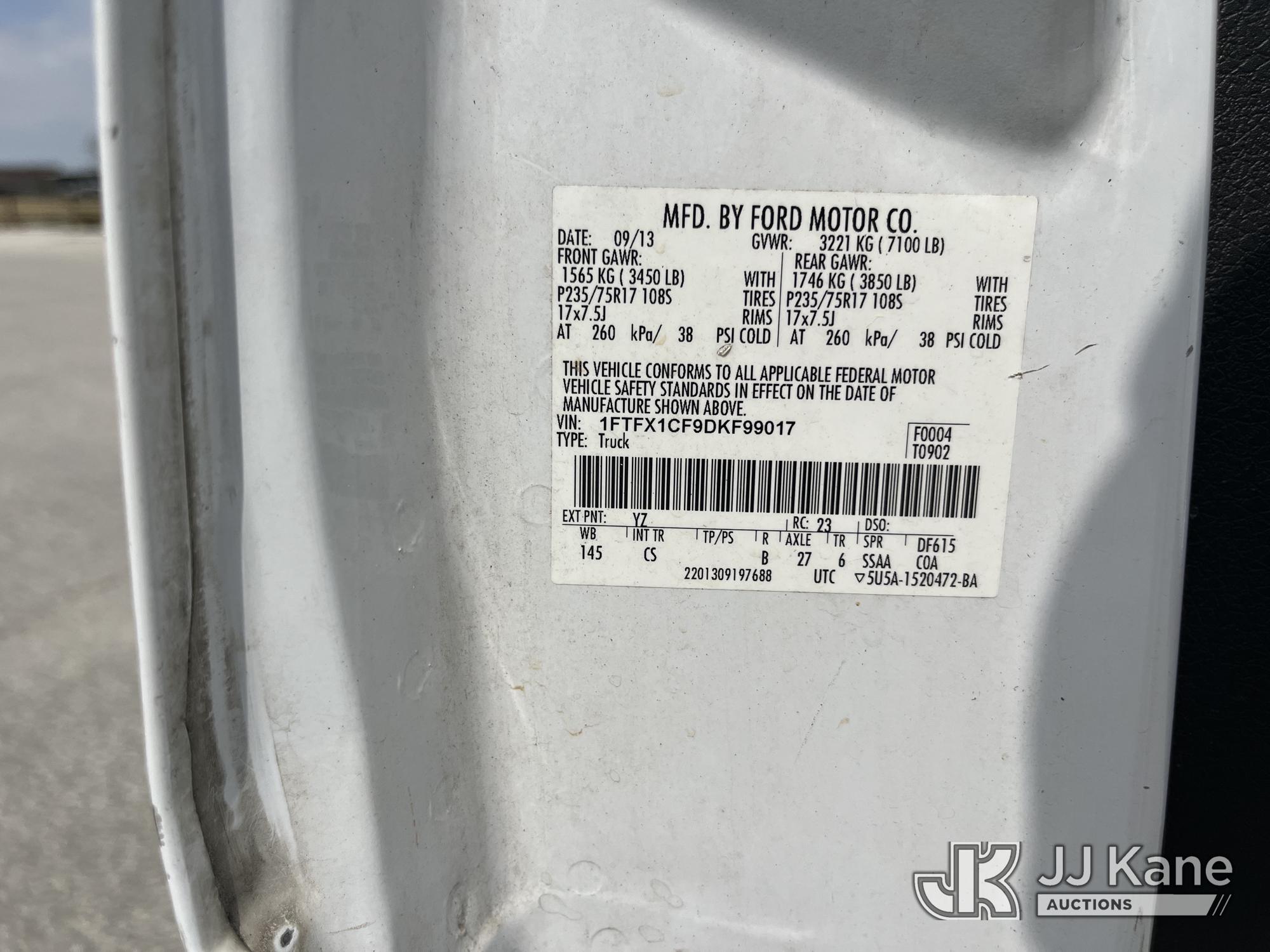 2013 Ford F-150 Extended-Cab Pickup Truck, s/n 1FTFX1CF9DKF99017, 8-cyl gas, RWD, Auto, A/C, with service cap, (178,861 miles) Municipal Owned (Runs, Moves) (Check Engine Light On) This is a Titled Item*