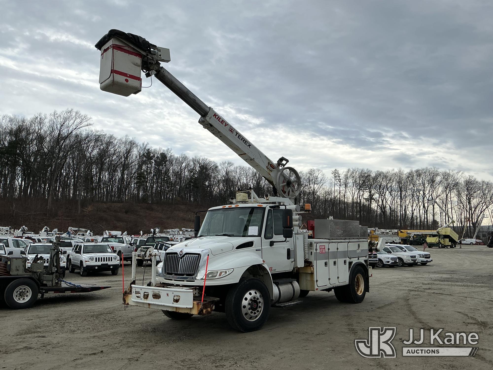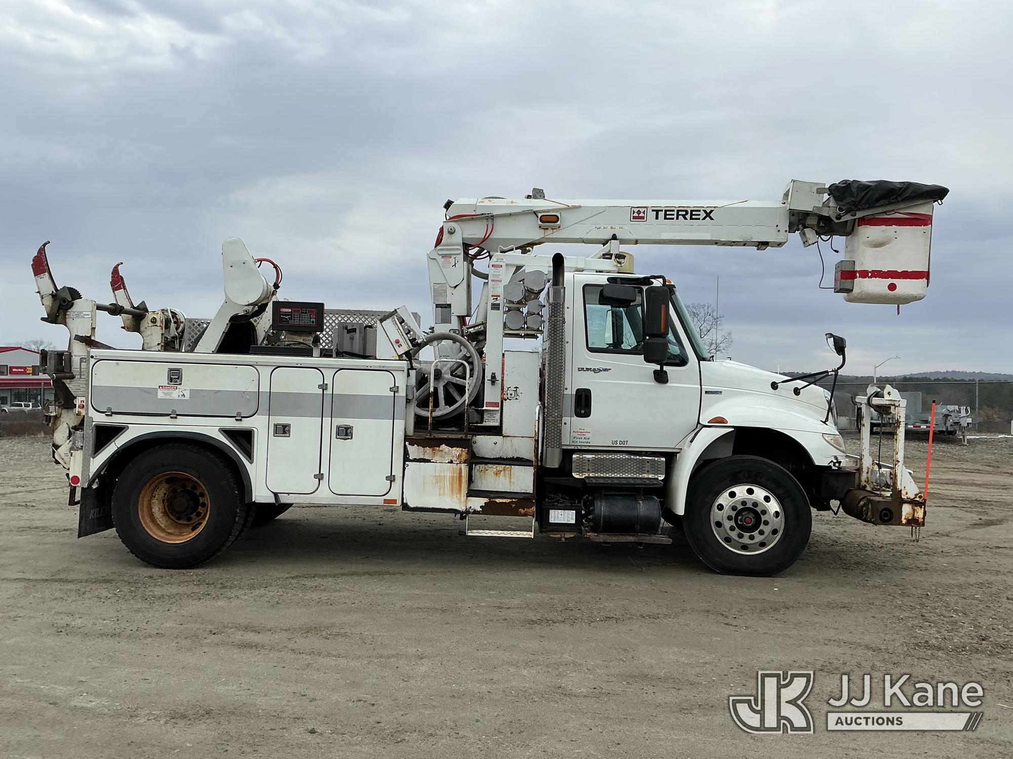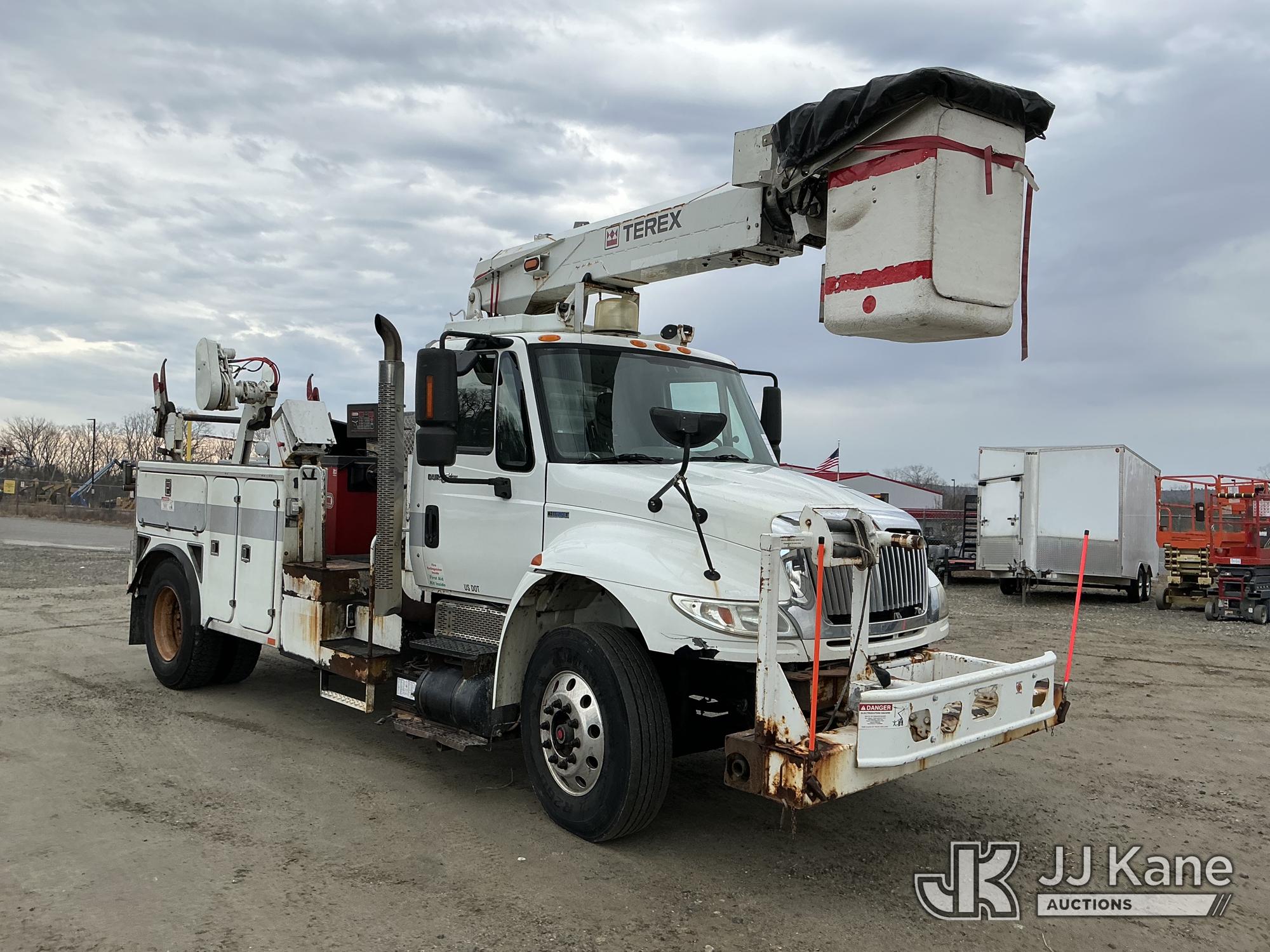 Terex/HiRanger TCP40, 45 ft, Telescopic Cable Placing Bucket Truck s/n 2101041711, with single-man basket, mounted behind cab on 2011 International 4400 Utility Truck, MaxxForce 7.6L 4X2, diesel, Auto, A/C, with hyd reel carrier, (49,617 miles) (Runs, Moves & Upper Operates) (Reads 9,426 hours) This is a Titled Item*