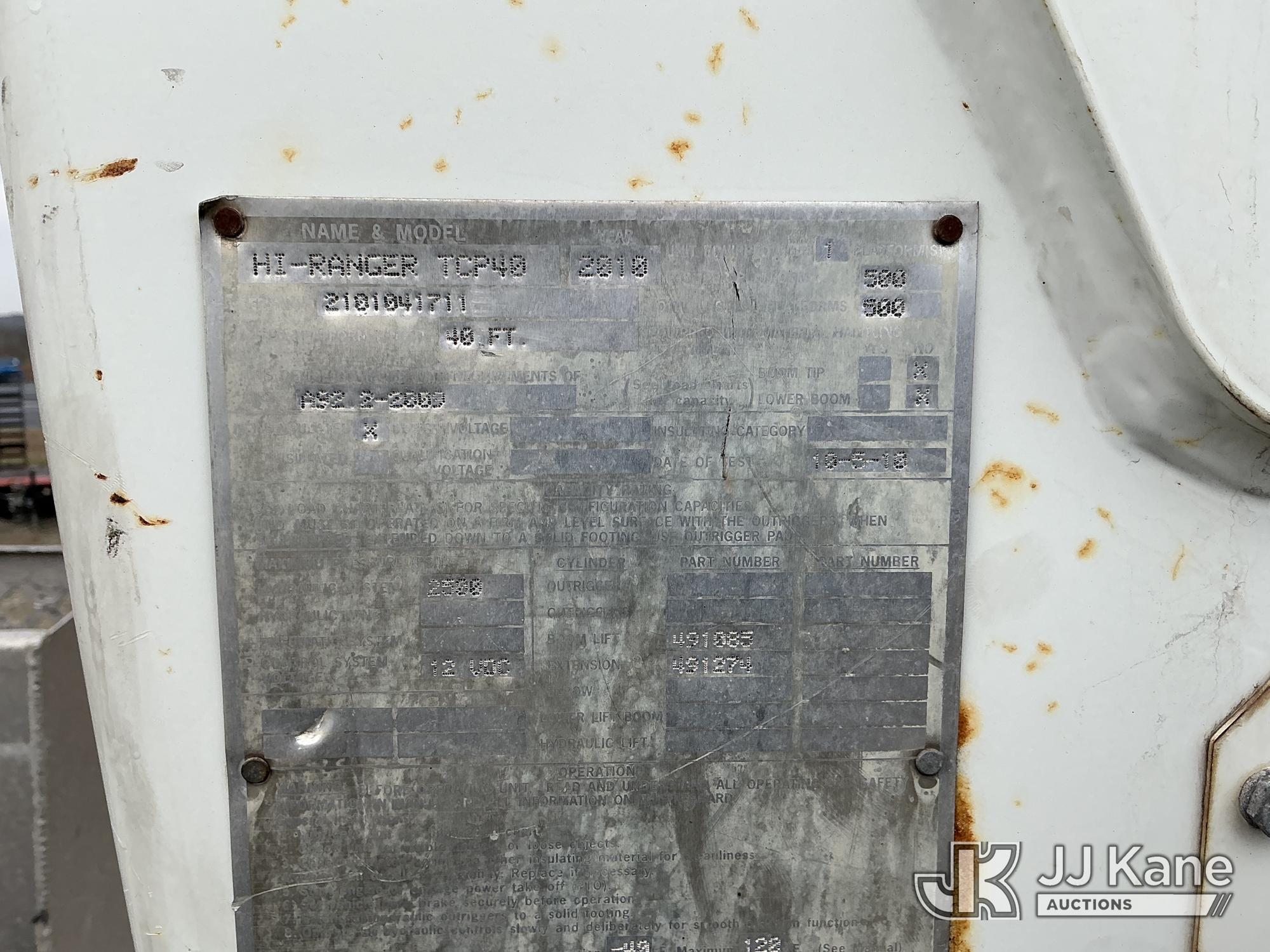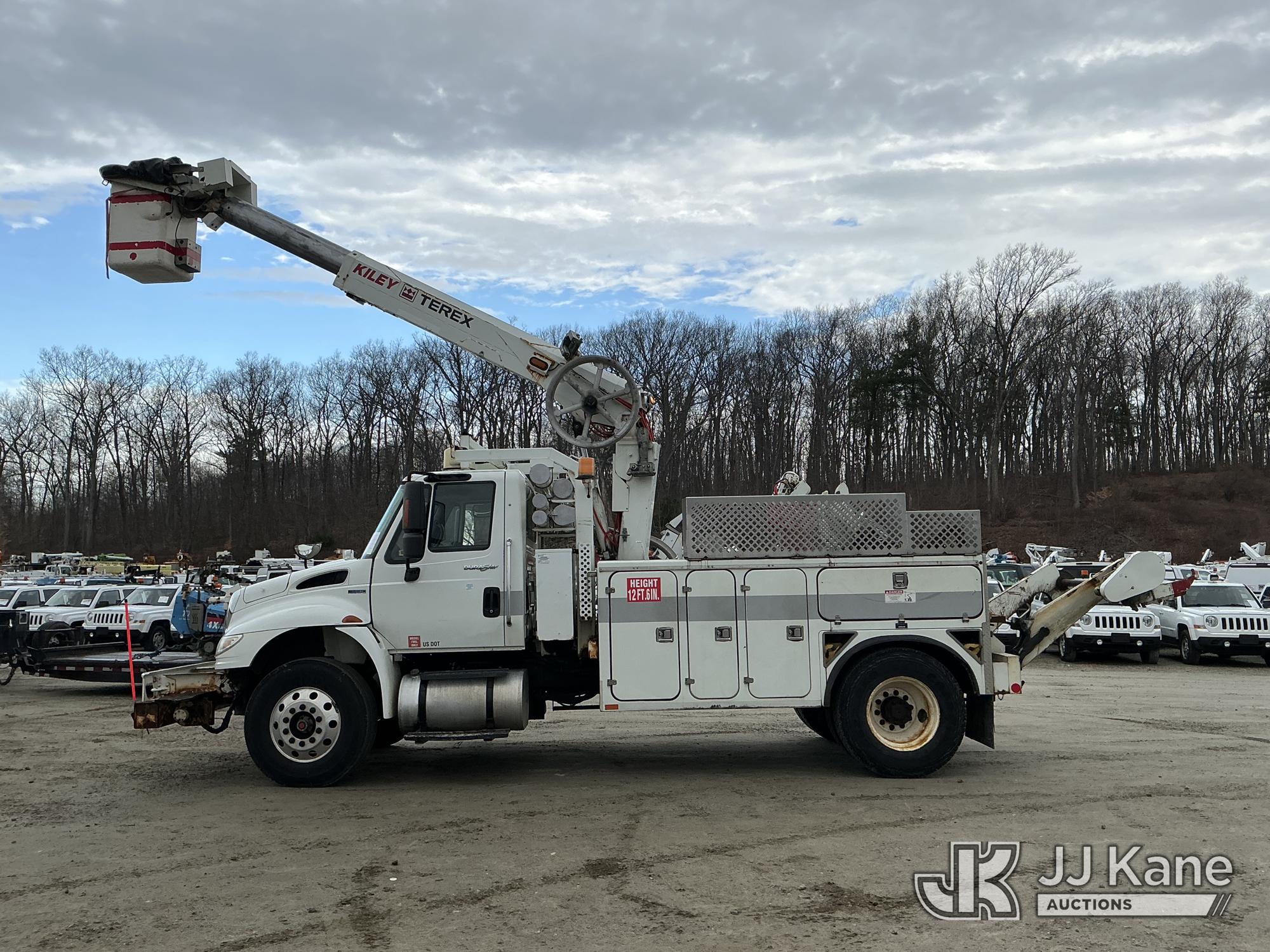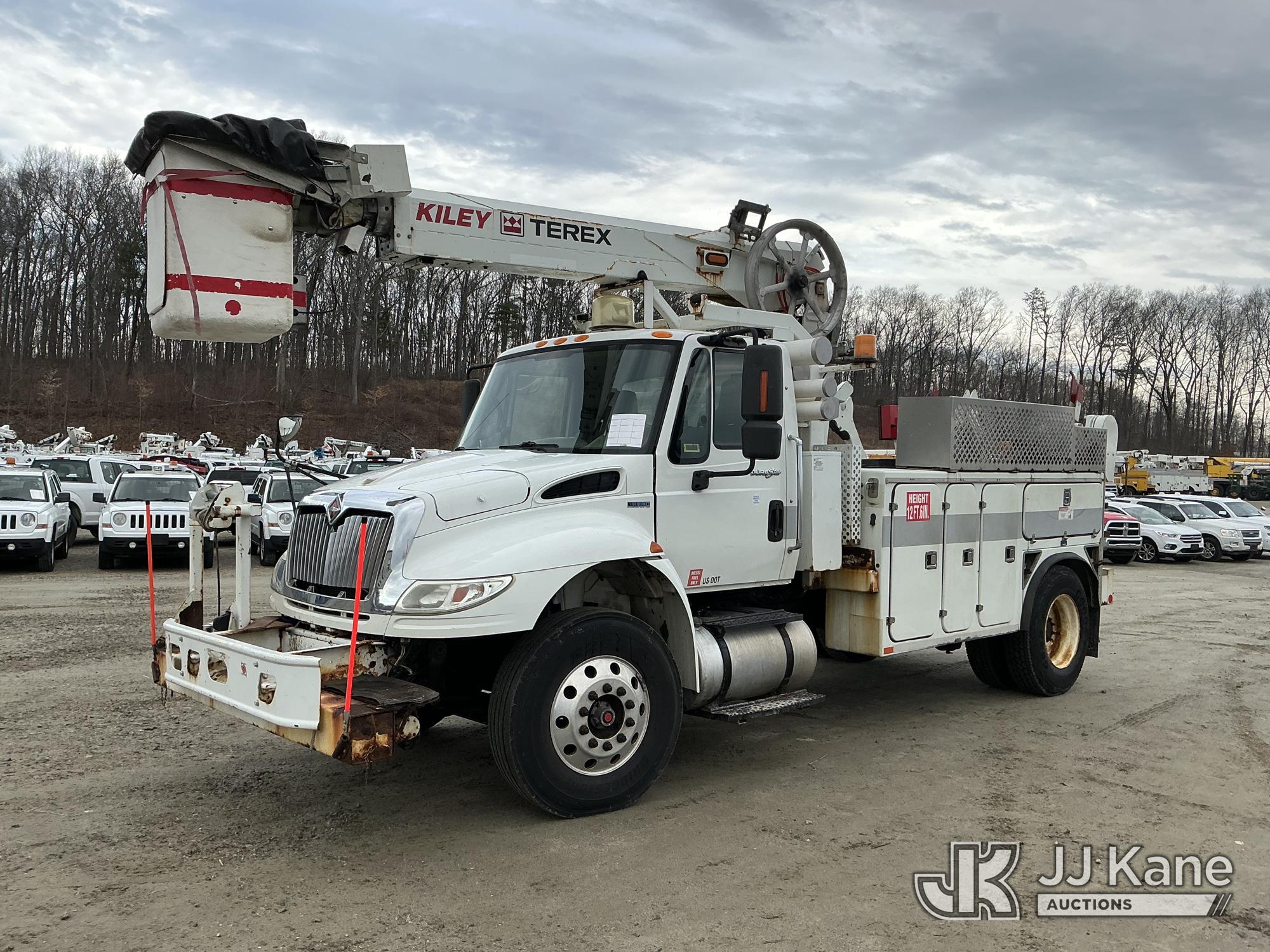 Terex/HiRanger TCP40, 45 ft, Telescopic Cable Placing Bucket Truck s/n 2101041711, with single-man basket, mounted behind cab on 2011 International 4400 Utility Truck, MaxxForce 7.6L 4X2, diesel, Auto, A/C, with hyd reel carrier, (49,617 miles) (Runs, Moves & Upper Operates) (Reads 9,426 hours) This is a Titled Item*