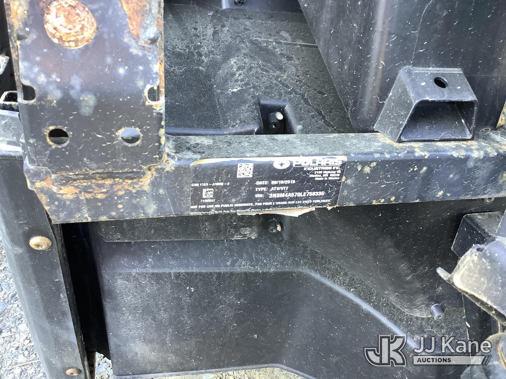 2020 Polaris Ranger All-Terrain Vehicle, s/n 3NSM4A570LE758335, 1-cyl Gas, Auto, (5,863 miles) (Runs Rough, Shifter Stuck In Park) (Removal is by Appointment Only, Buyer MUST make a appointment prior to picking up, Buyer/Transporter Must have PAID IN FULL RELEASE. No onsite assistance available, Please Come prepared.)*