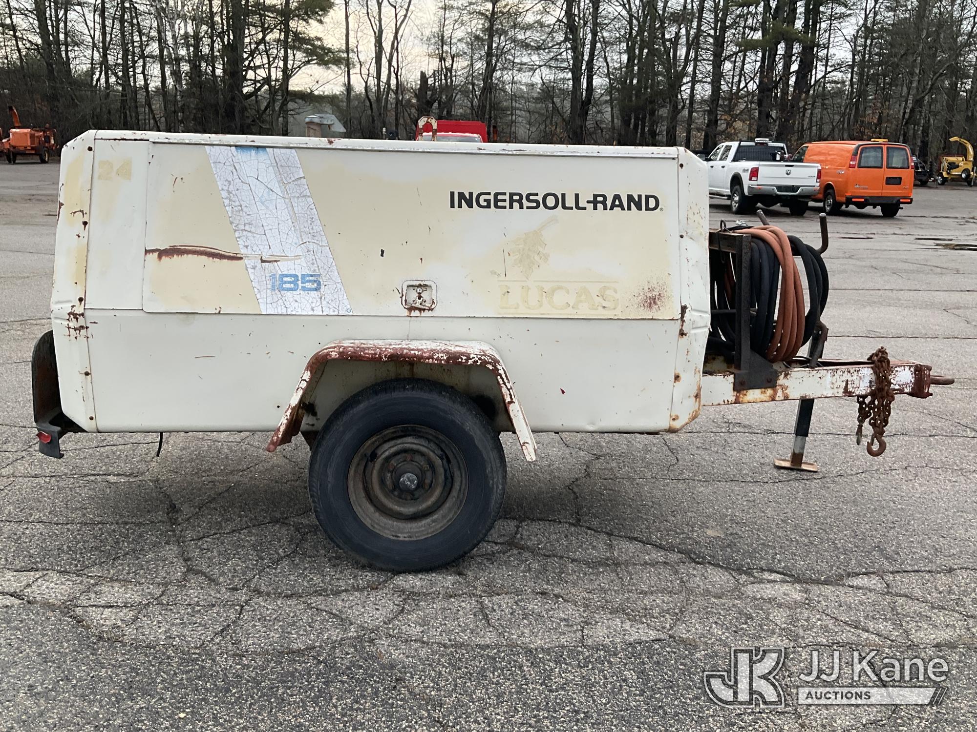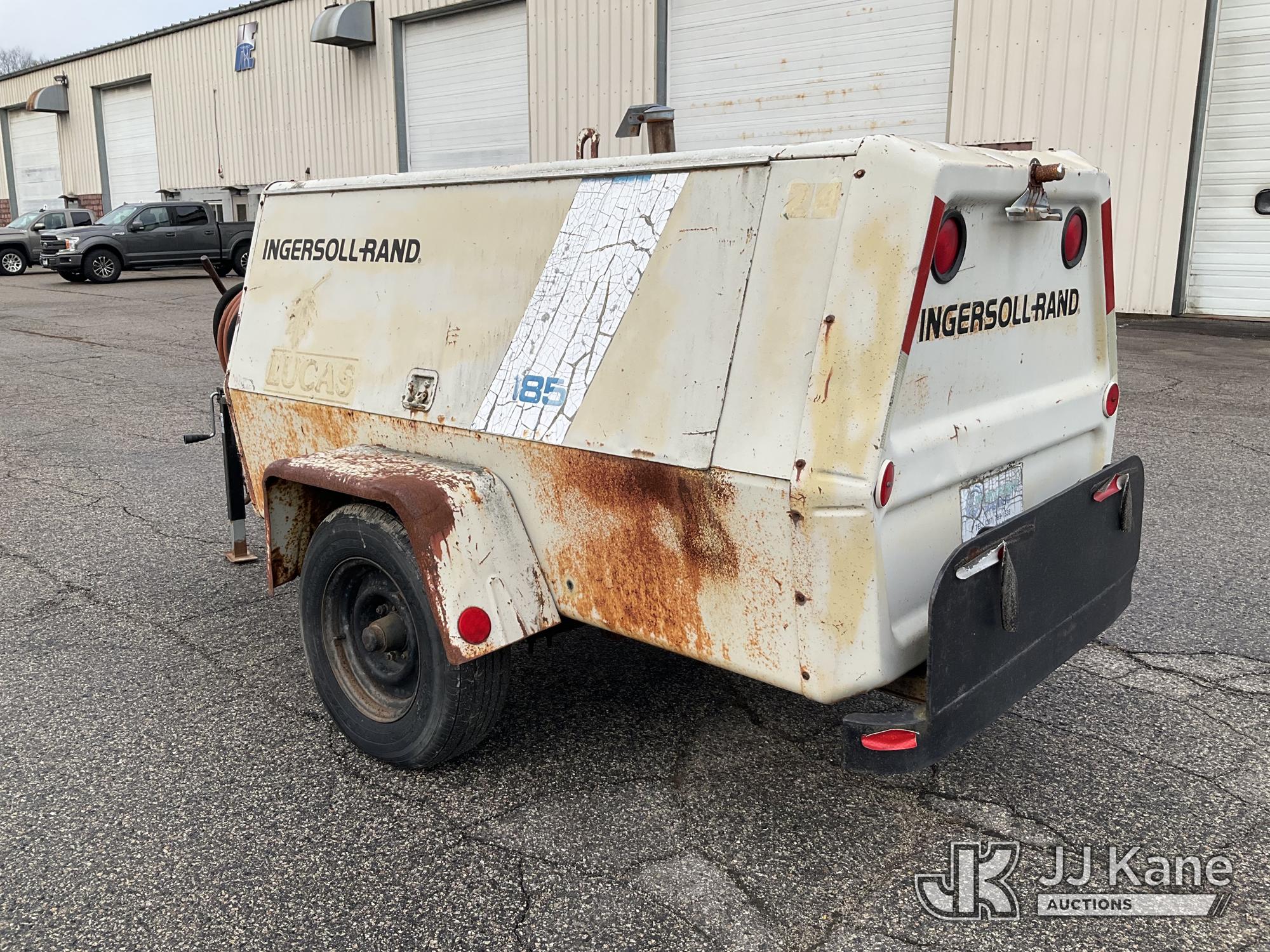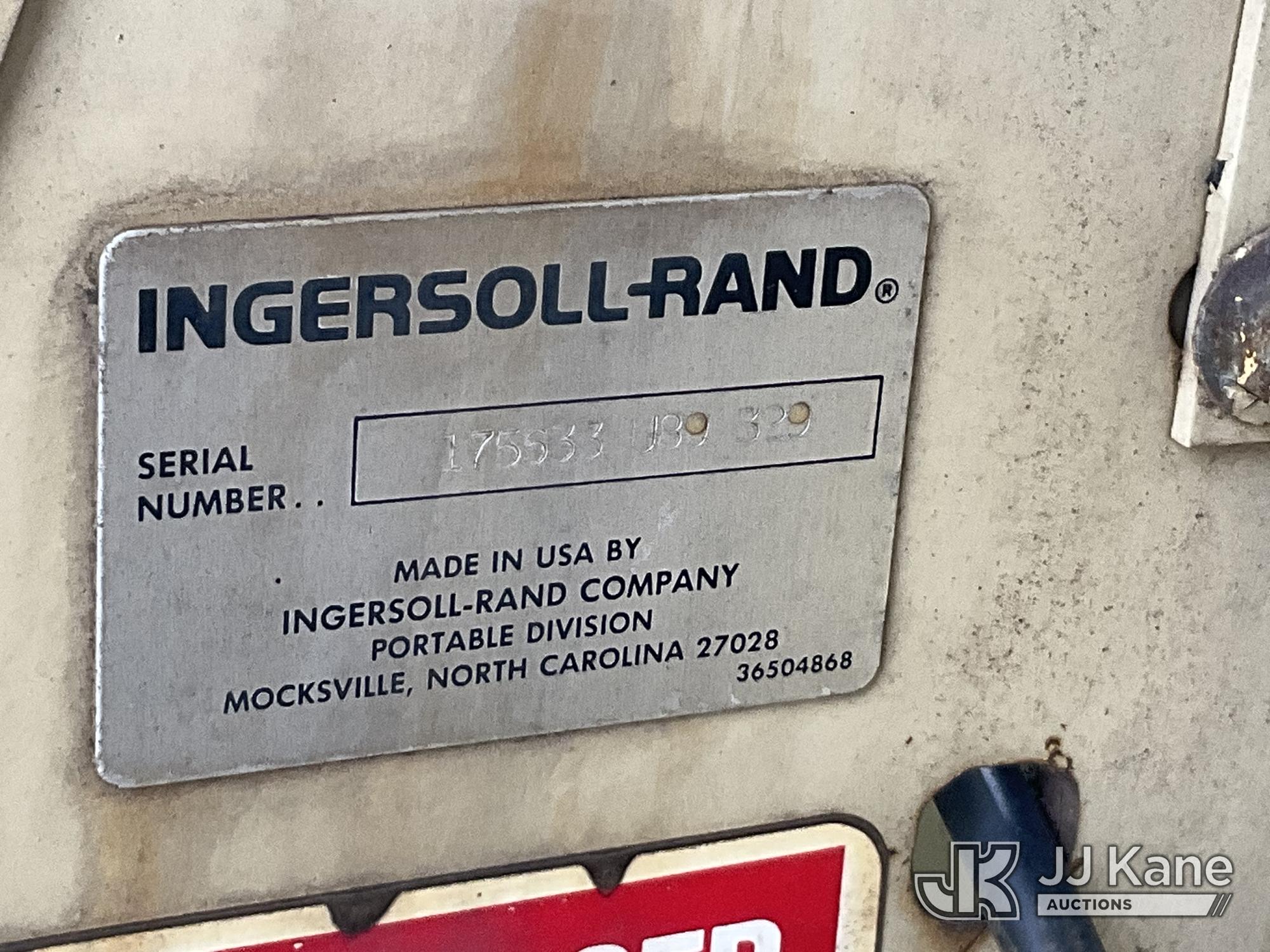 1989 Ingersoll Rand P185WJD 185 cfm Portable Air Compressor, s/n 175633 U89 329, J.D. diesel, with Misc Air Tools & Bits, Trailer Mounted (No Title) (Runs, Jump to Start, Unable to Read Hour Meter) (Removal is by Appointment Only, Buyer MUST make a appointment prior to picking up, Buyer/Transporter Must have PAID IN FULL RELEASE. No onsite assistance available, Please Come prepared.)*