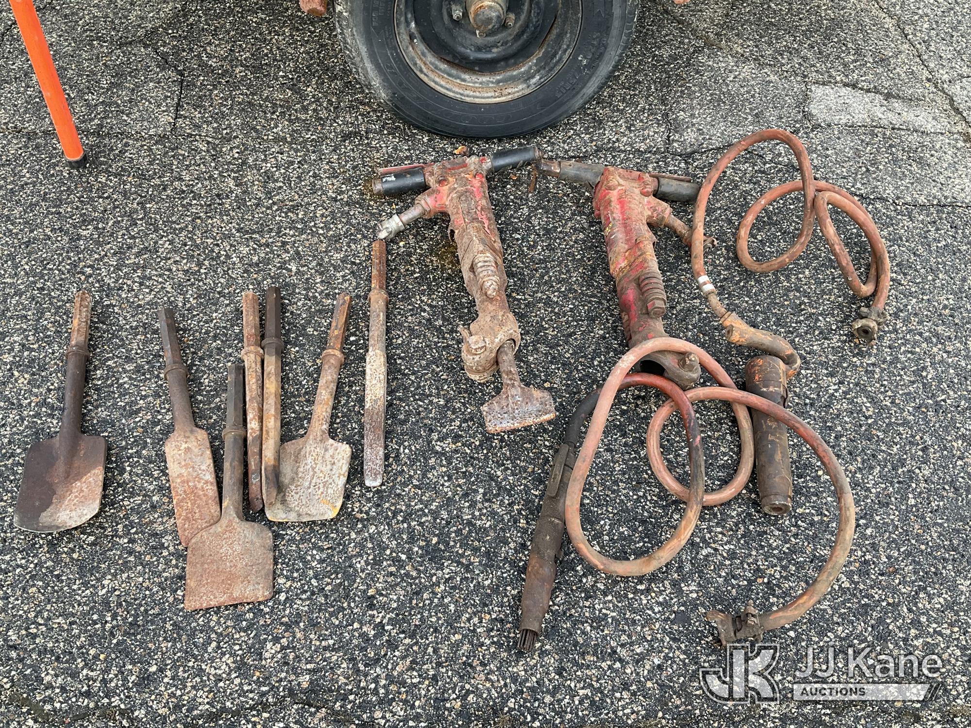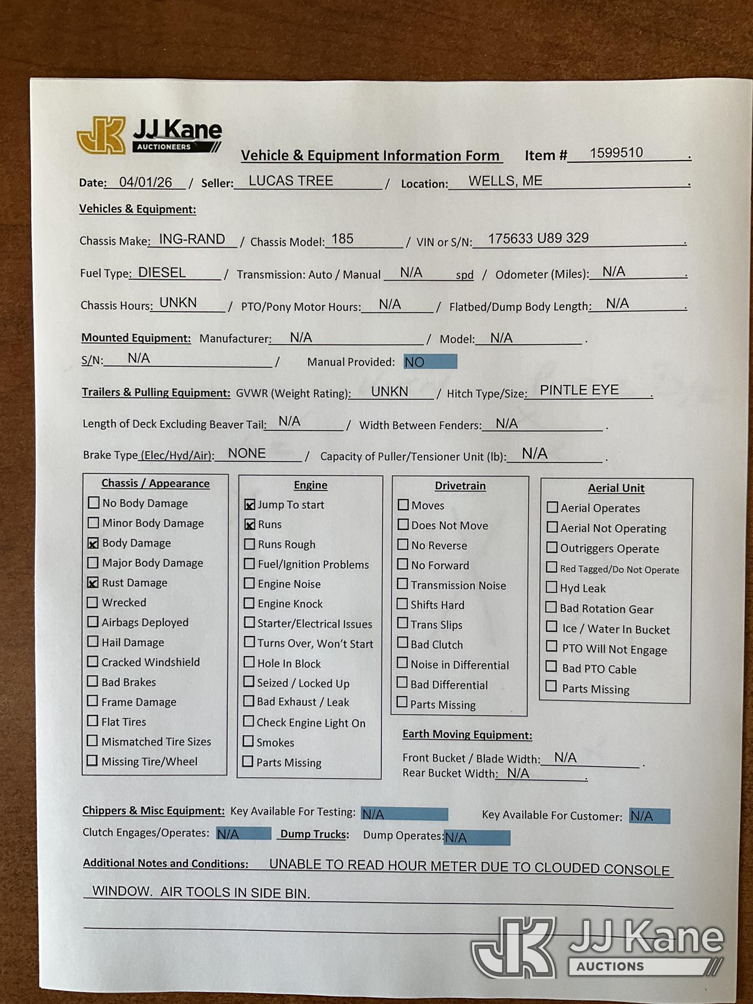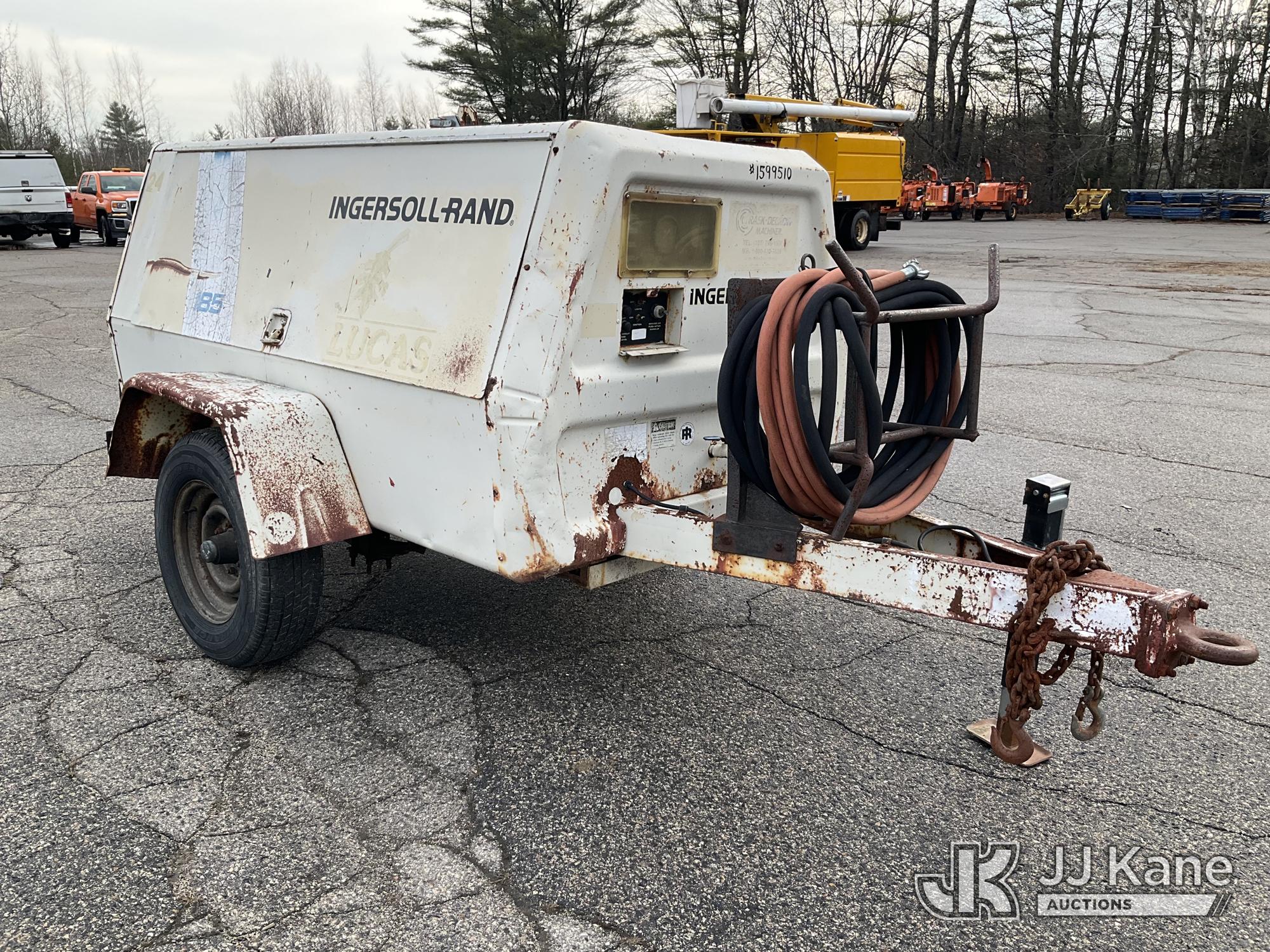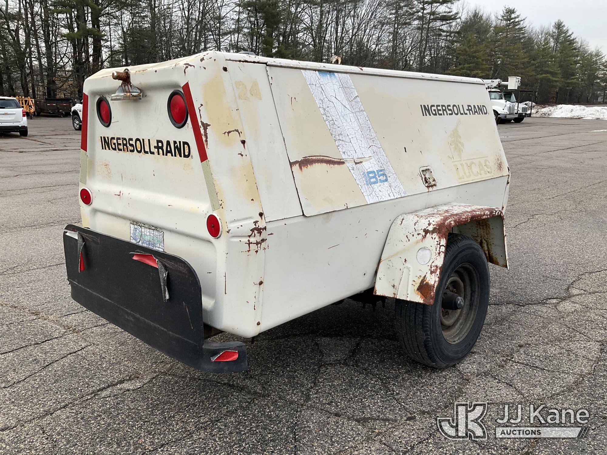 1989 Ingersoll Rand P185WJD 185 cfm Portable Air Compressor, s/n 175633 U89 329, J.D. diesel, with Misc Air Tools & Bits, Trailer Mounted (No Title) (Runs, Jump to Start, Unable to Read Hour Meter) (Removal is by Appointment Only, Buyer MUST make a appointment prior to picking up, Buyer/Transporter Must have PAID IN FULL RELEASE. No onsite assistance available, Please Come prepared.)*
